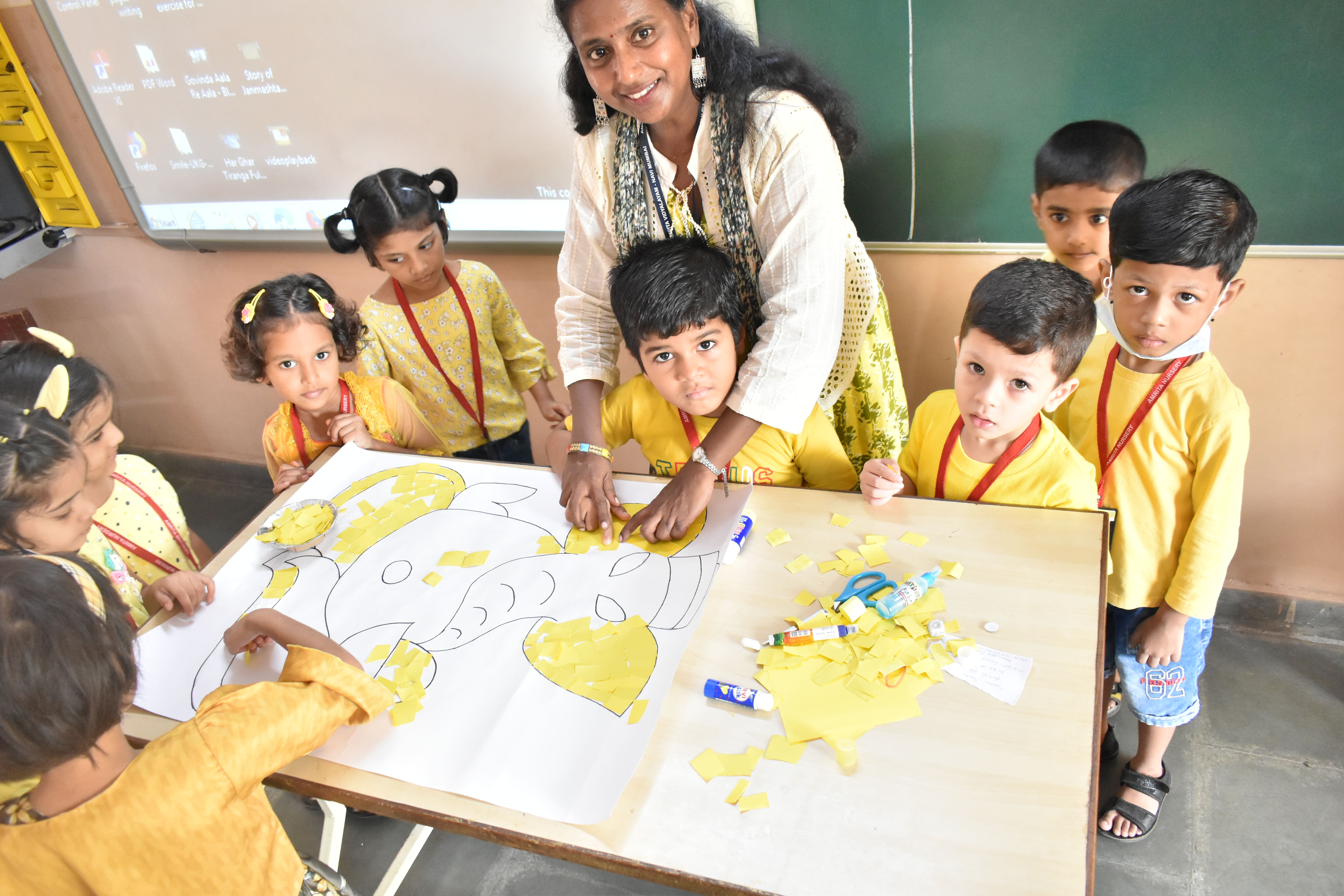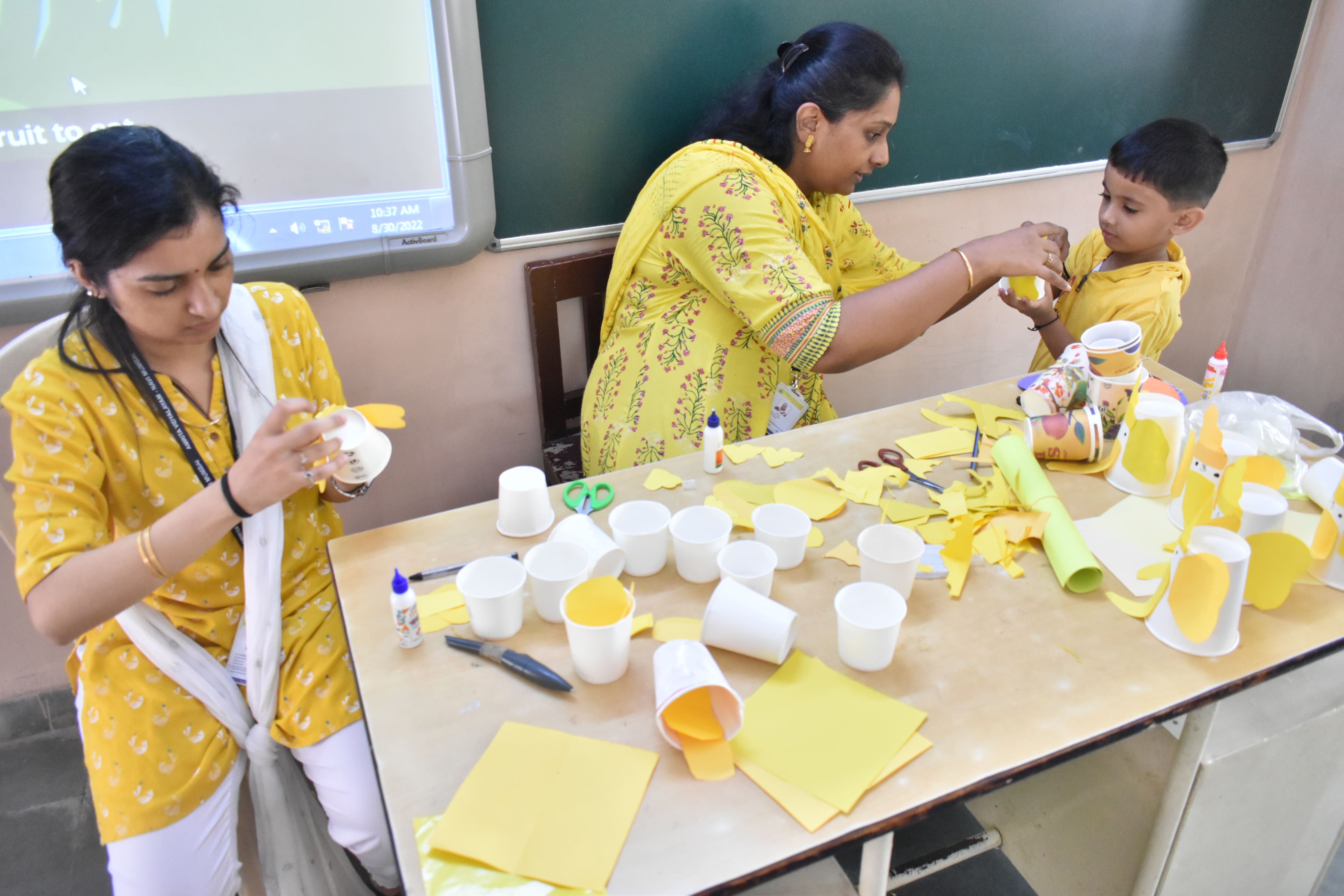 1) Jr.kg – making of ‘Ganesha’ from paper cups using yellow origami paper
