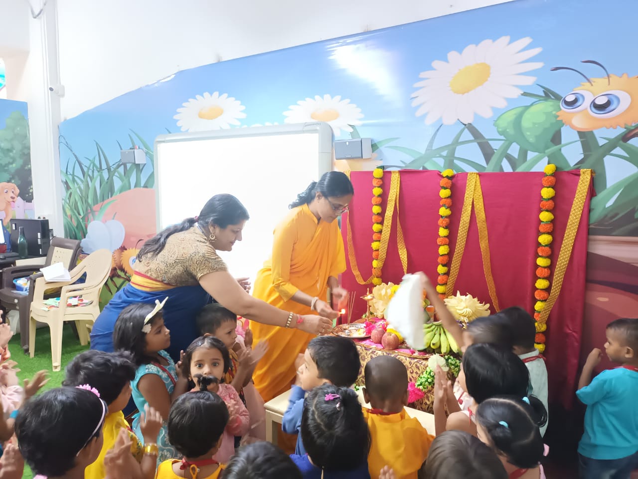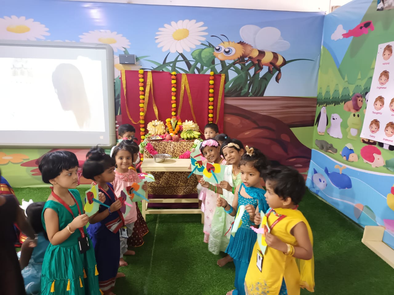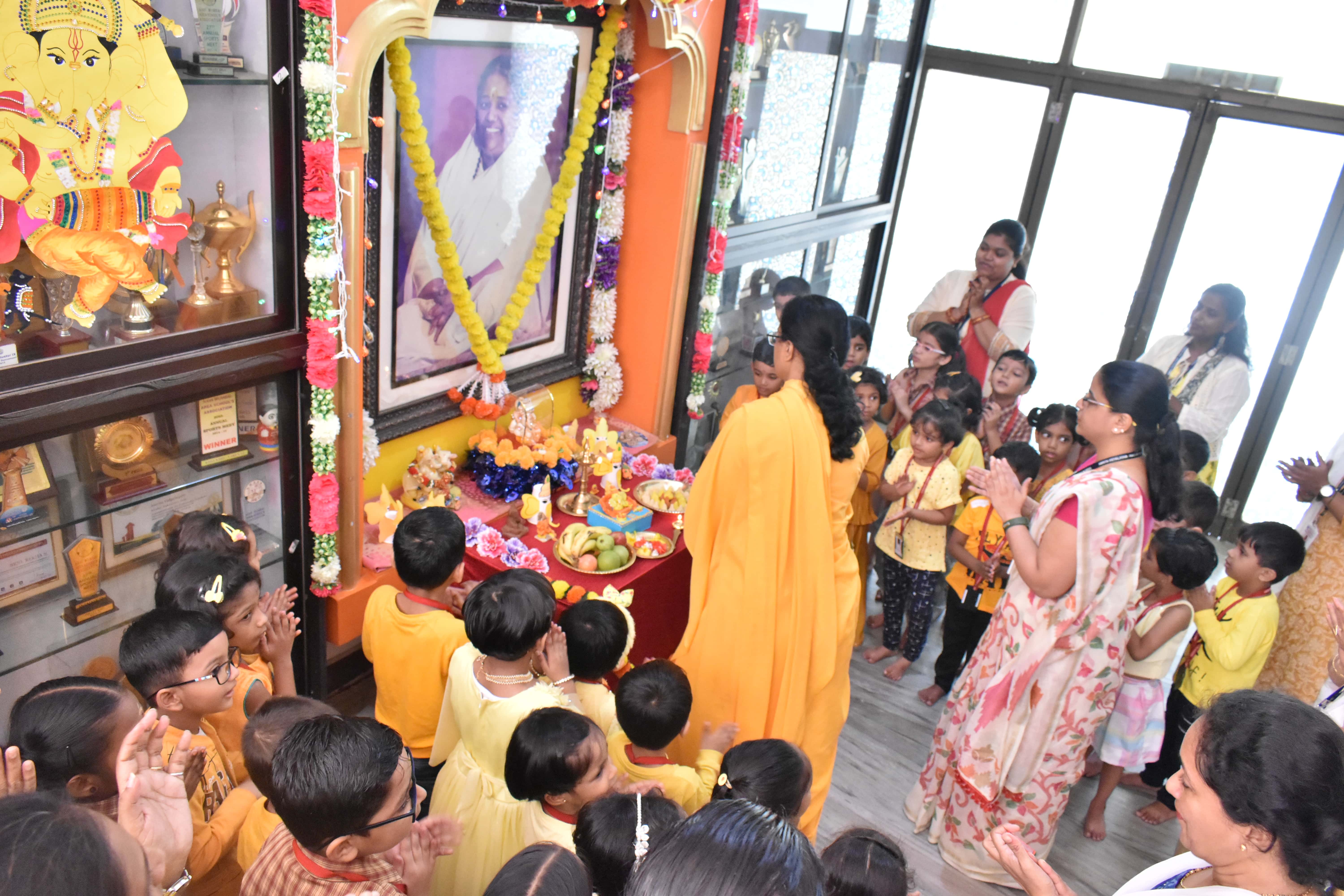Celebration started with Ganesh Aarti was done by Sharanyamrita Chaitanaya ma’am. Various class activities were conducted for pre- primary classes.
