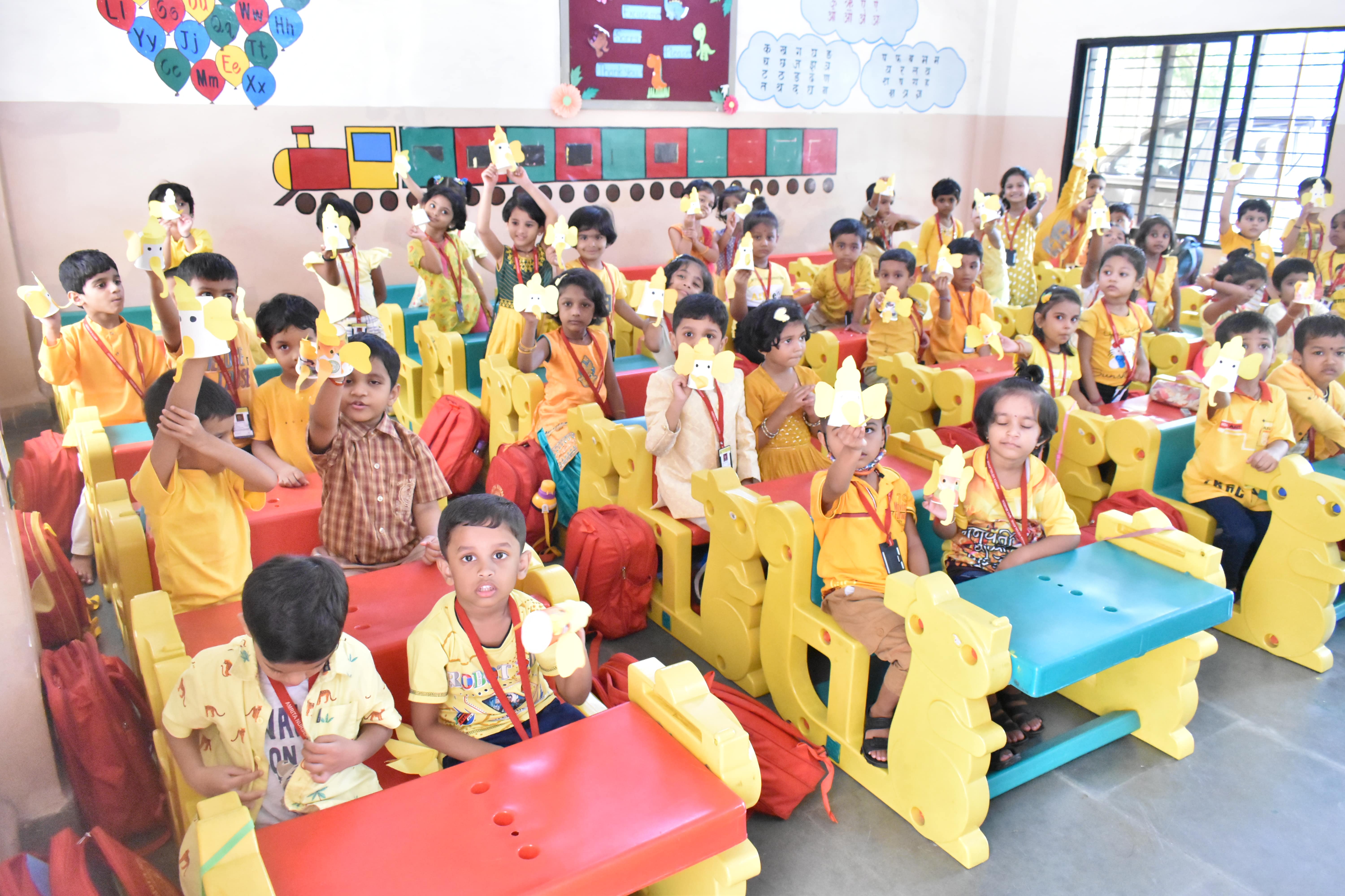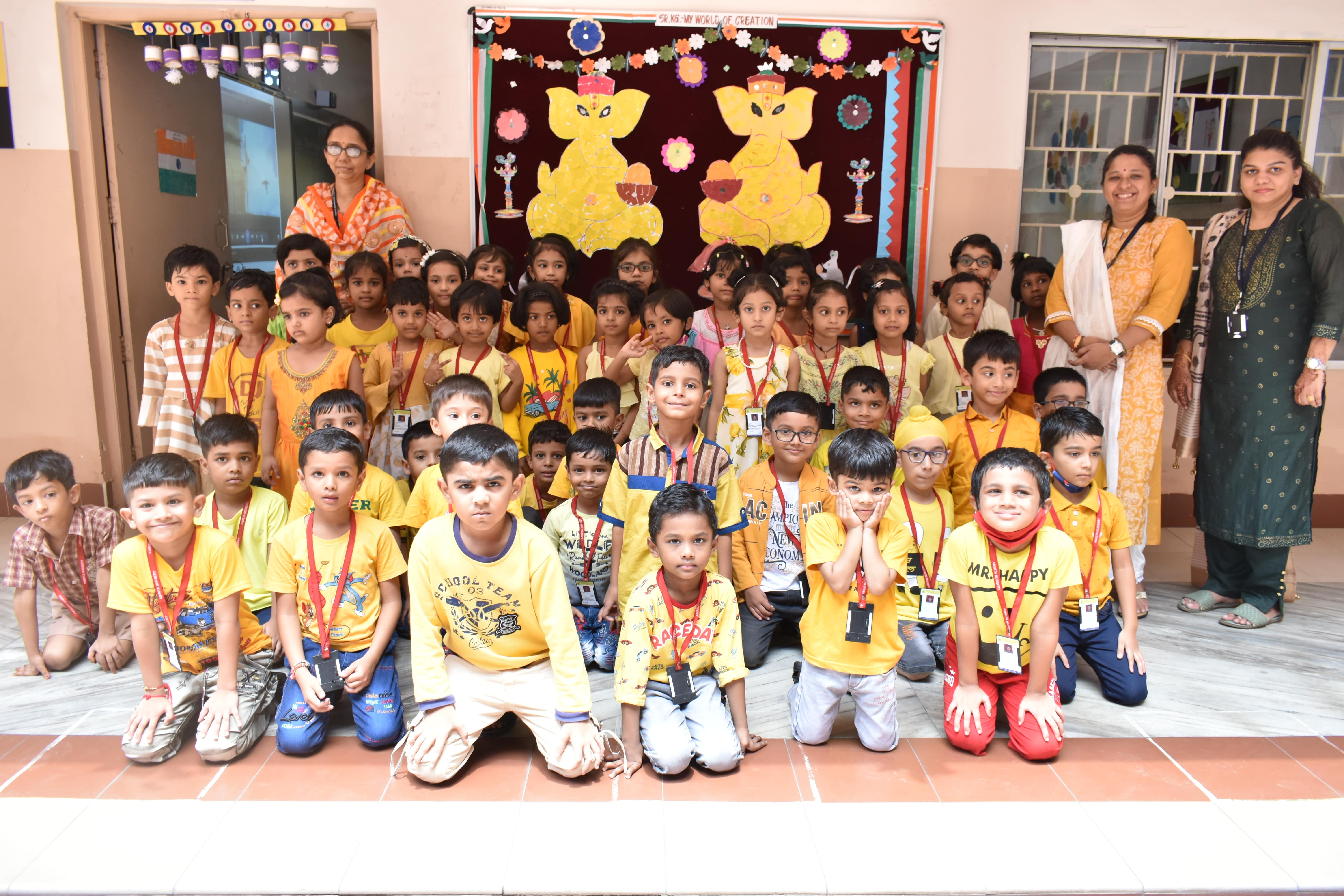 Teacher’s explained about importance of Ganesh Chaturti in form of story. Students of Jr.kg & Sr.kg donned Yellow colour attire to pep up the celebration mood and to celebrate the Yellow Day.