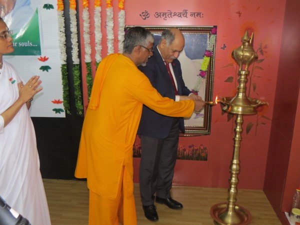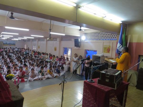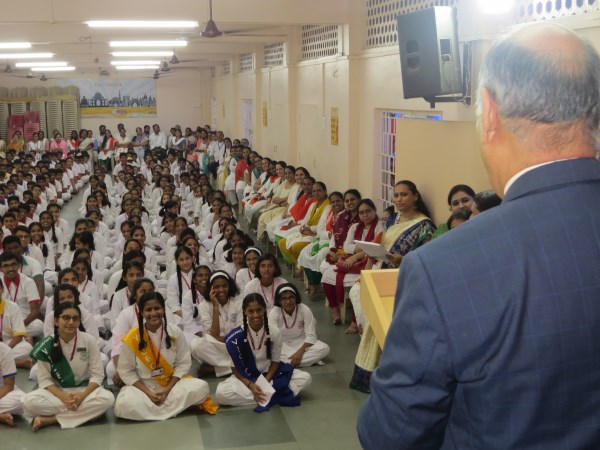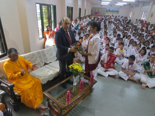 Along with Br. Avyayamrita Chaitanya, the distinguished guest for the morning was Brigadier Sushil Bhasin, who has served the Indian Army for 34 years. After stepping out of the Army , he harnessed his training experience to pursue his passion for training and co-founded Empower Camps. It is this passion which has seen him conduct around 600 corporate training programmes to this day on leadership skills, decision making, communication, collaboration, trust and other behavioral issues in various sectors such as Financial, Automobile, Hospitality and IT companies and.
