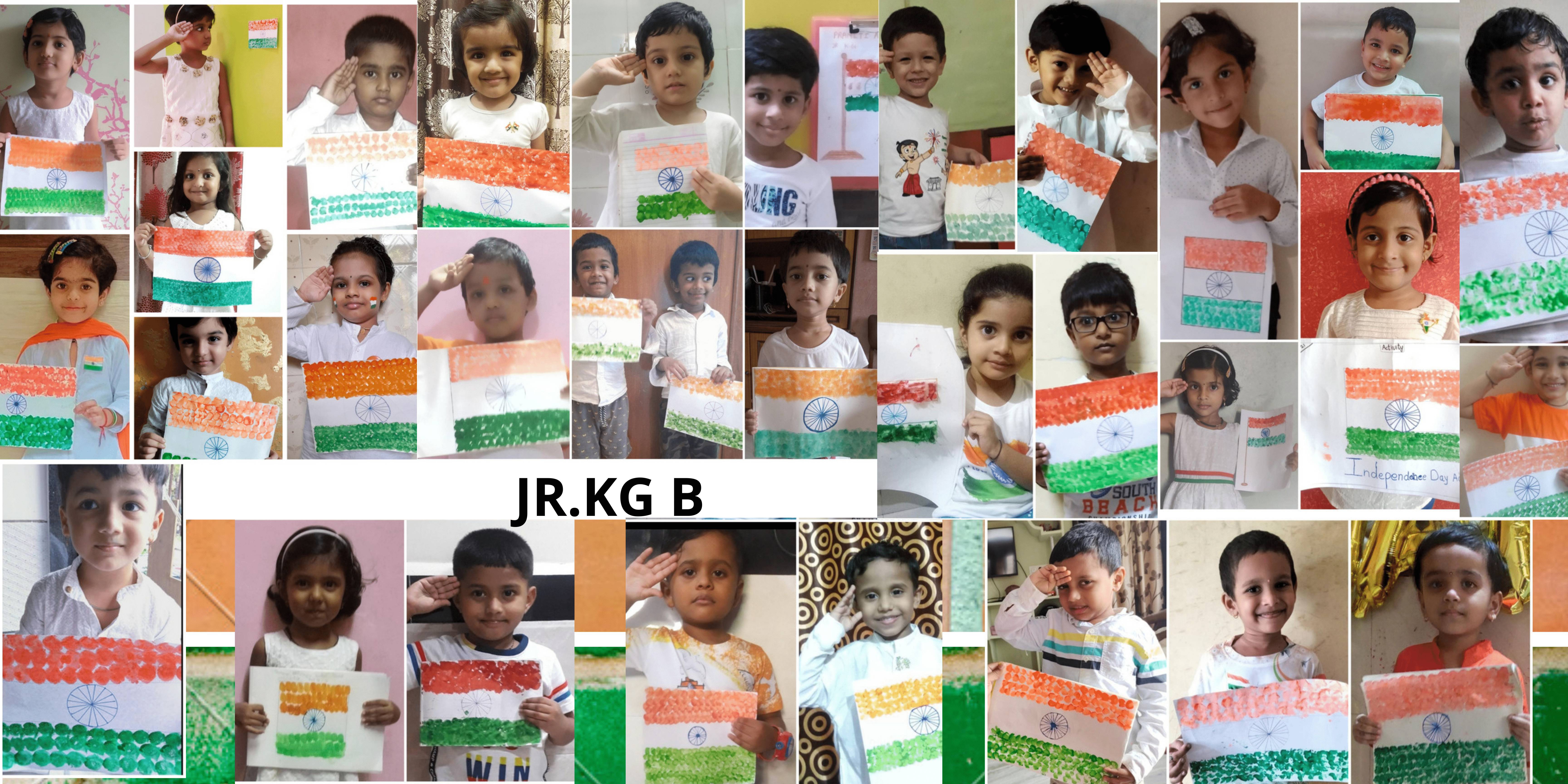 Jr.Kg students dressed in traditional attire, were thrilled about the patriotic video (shown by teachers) to mark the importance of this historic day.