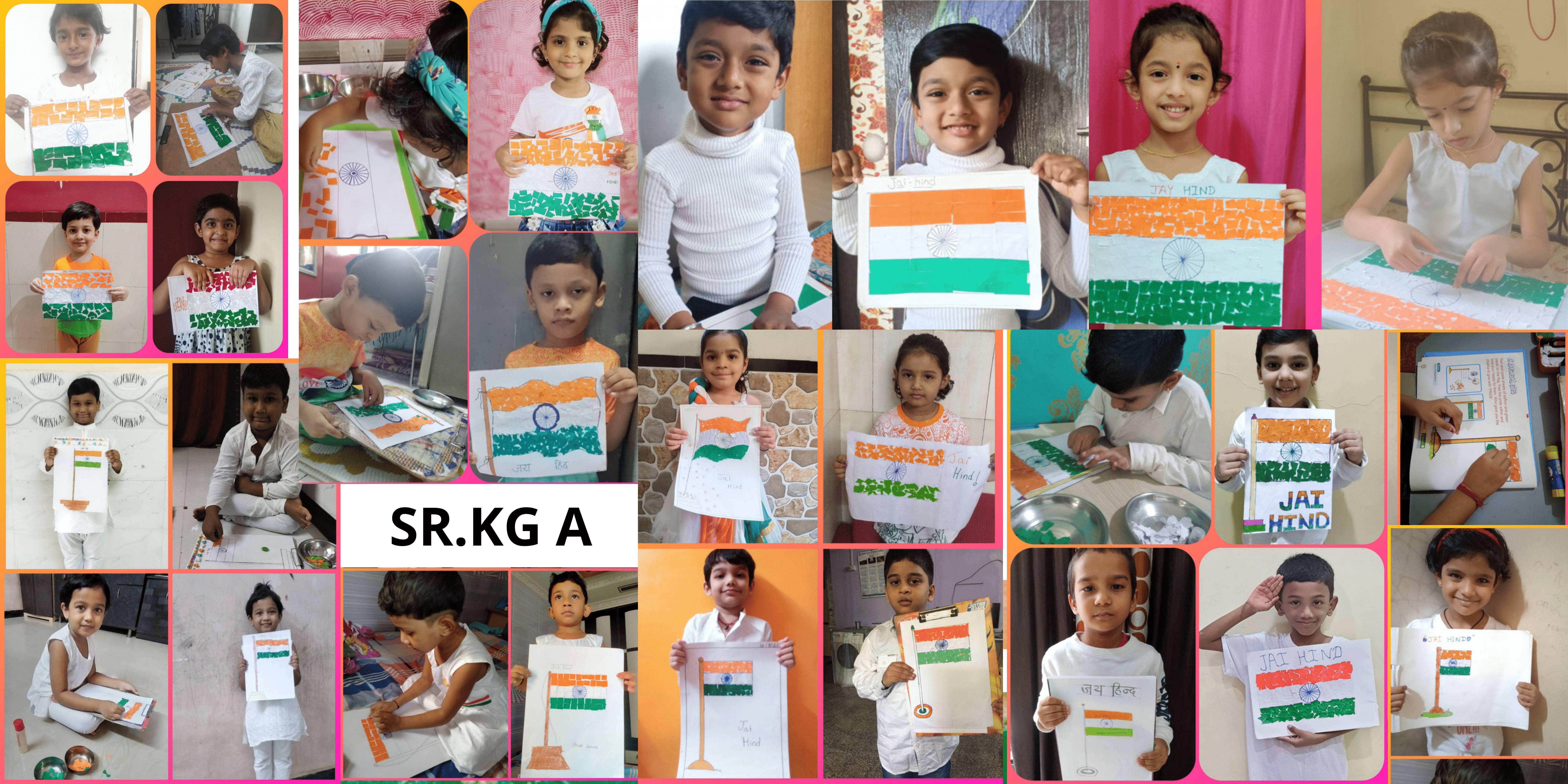 Indian flag and the tricolors were then introduced to them, giving a brief idea of their importance.They decorated the National Flag with appropriate colors by the TEAR-N-PASTE technique.
