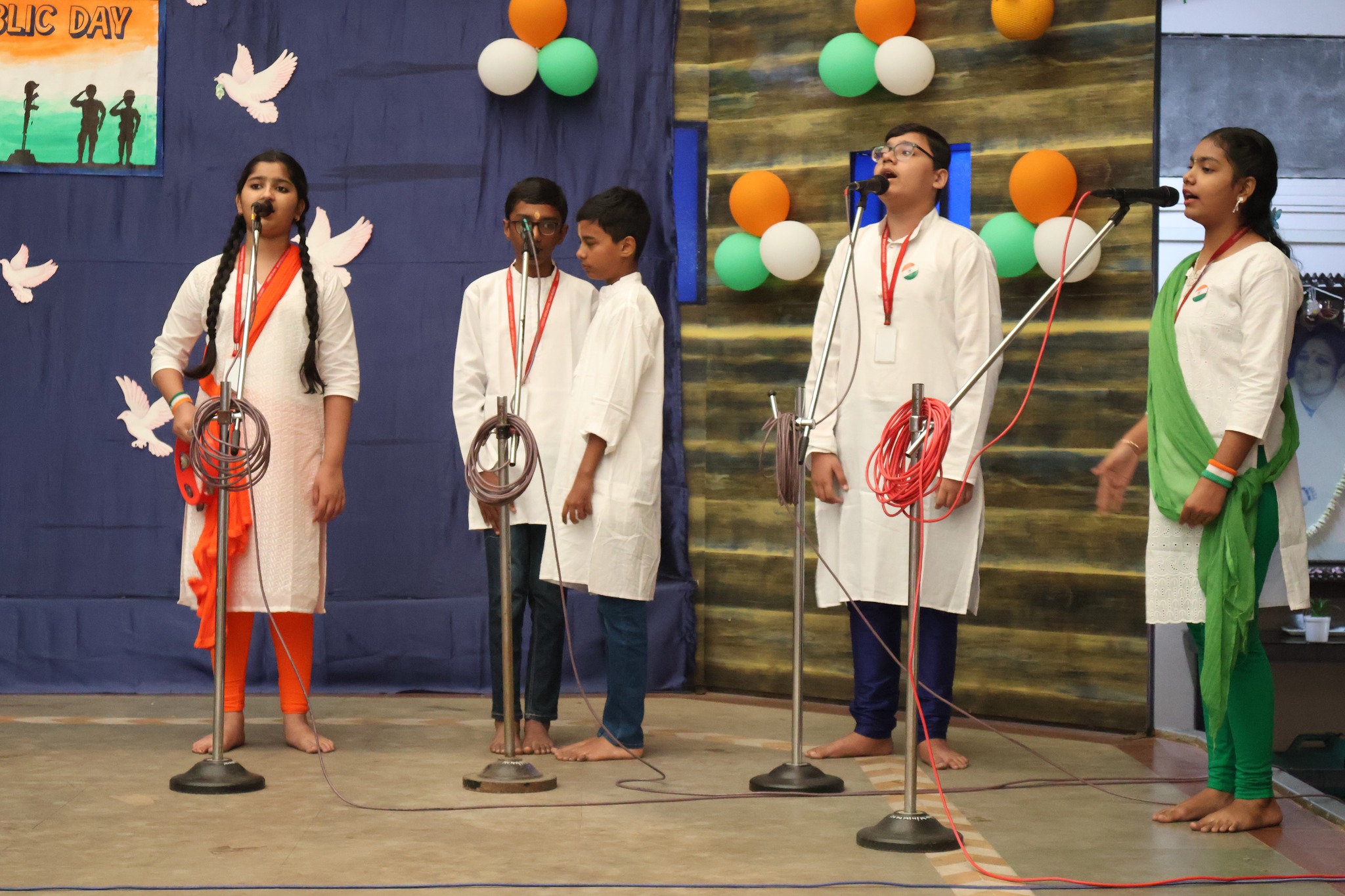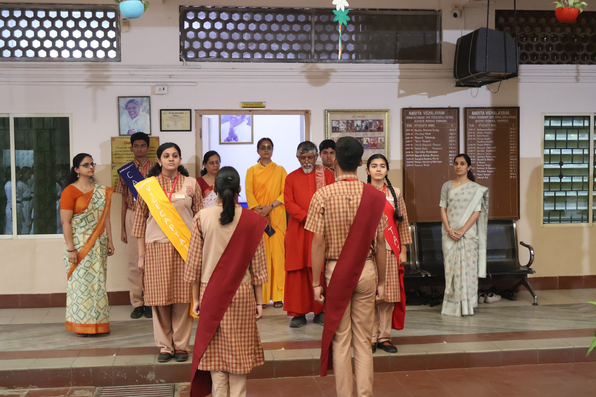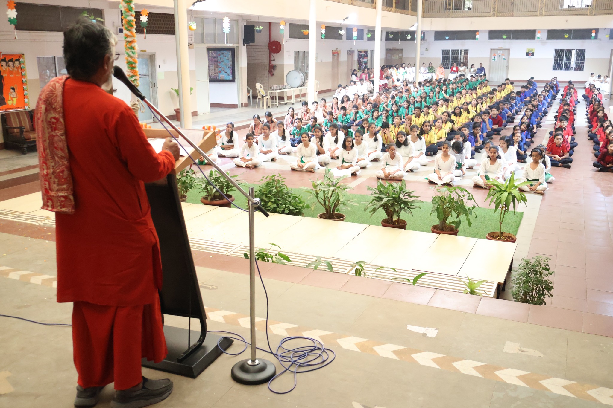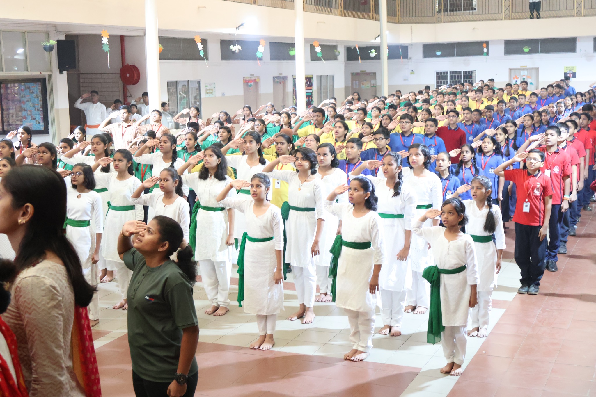 26th January is a day of national rejoice and is celebrated with zeal and spirit throughout the Country. 75th Republic day was celebrated with great enthusiasm in the school. The school atrium was decorated with handmade posters, balloons, wall hangings and tricolour pigeons symbolising peace and harmony. Bri. Avyayamritananda Puri, InCharge of Mata Amritanandamayi Math, Nerul graced the occasion and unfurled the National flag. He blessed the students with his words of wisdom. He narrated the incidents of humanity and compassion which has made the culture of India so distinct and popular. Administrator Brni. Sharanyamrita Chitanyaji addressed the students. She started with a melodious rendition of the famous Bhajan – Raghupati Raghav Rajaram. She explained how habits turns into character if we consistently follow some practice. She explained how we can contribute to the nation positively. Student Ayush Chavan of class 9 expressed his views about the independence struggle and our role and responsibility as citizens of India. Winners of Annual Science Exhibition- Vijana Sarathi were given away the certificates. No celebration is complete without song and dance. School choir team presented a melodious patriotic song. Students of class 7 and 8 presented an energetic Lezim dance to the rhythmic beat of drums. Program ended with the thanksgiving to the students, teachers and all invited guests for their contribution, cooperation and efforts to make the event successful.