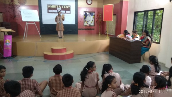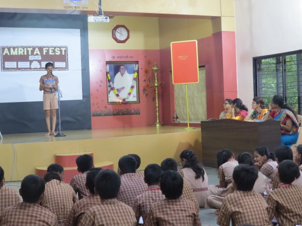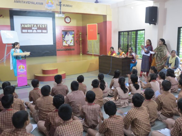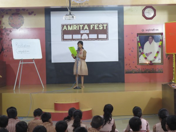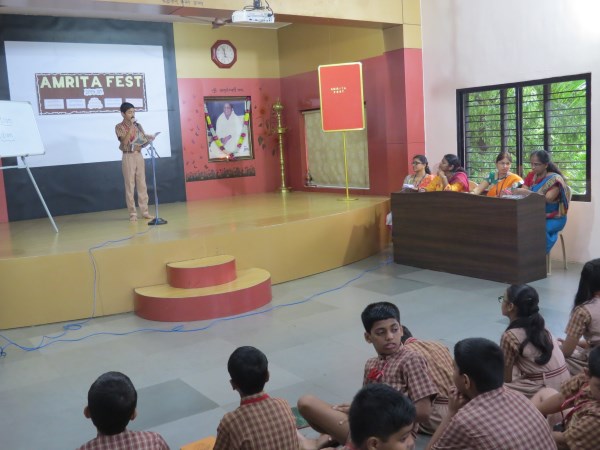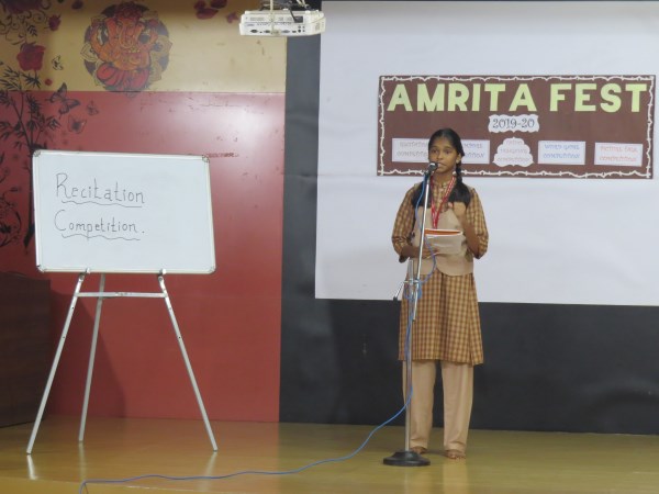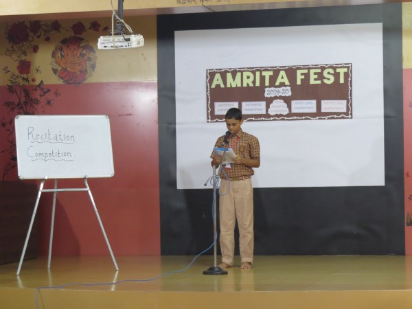 Poetry is an art and it was a treat to the ears when students of classes 6th to 8th recited poems in English, Hindi and Marathi in the Recitation competition. Many new poems were also recited which focused on the changing scenario of the busy world and the young students recited it with a lot of depth.