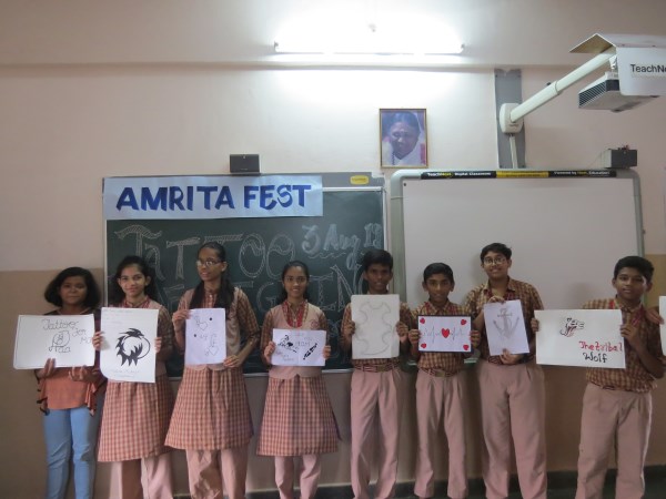 Students from classes 9th to 12th participated in Tatoo designing on paper competition and the parameters set for judging was originality, theme, colour blending and meaning.