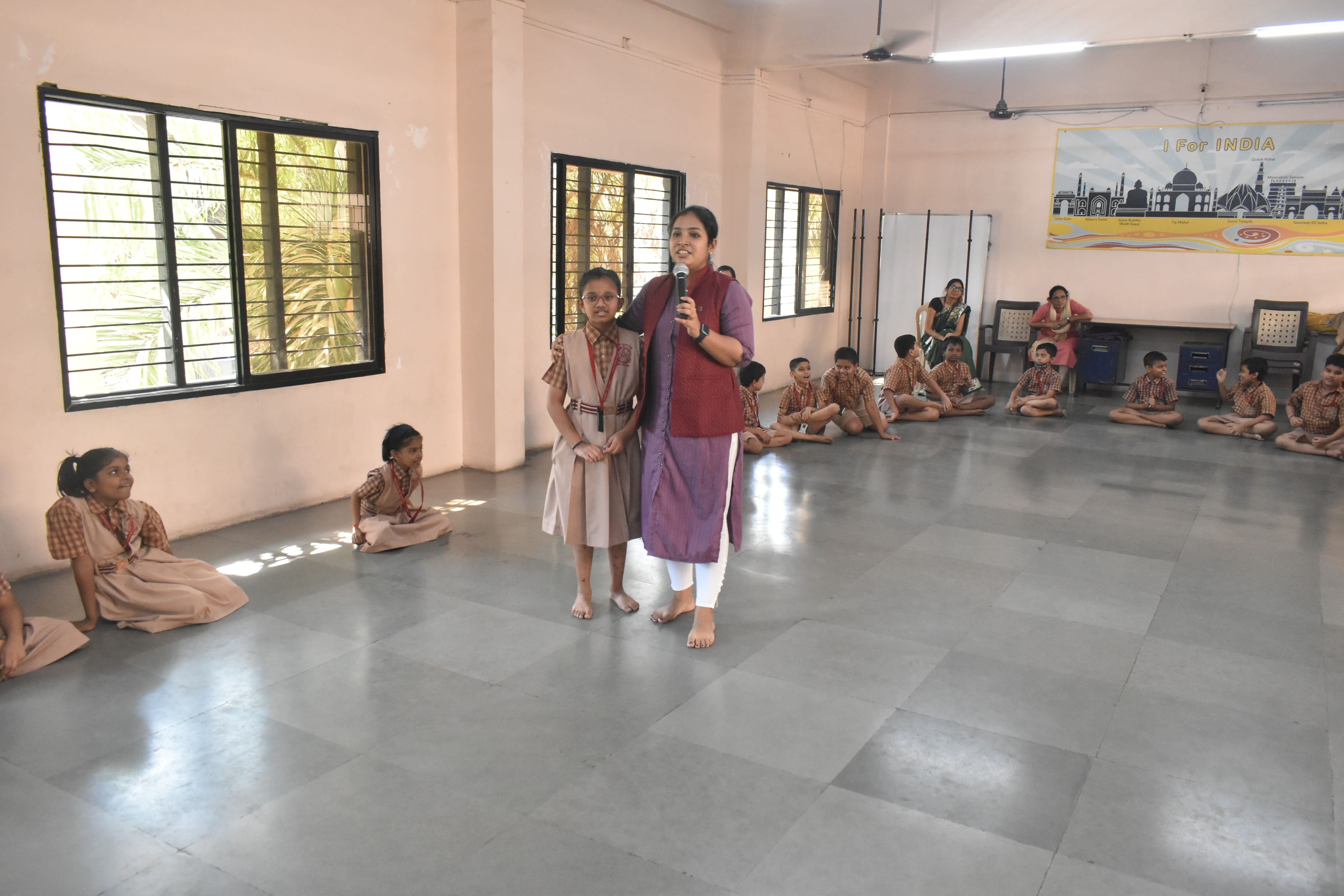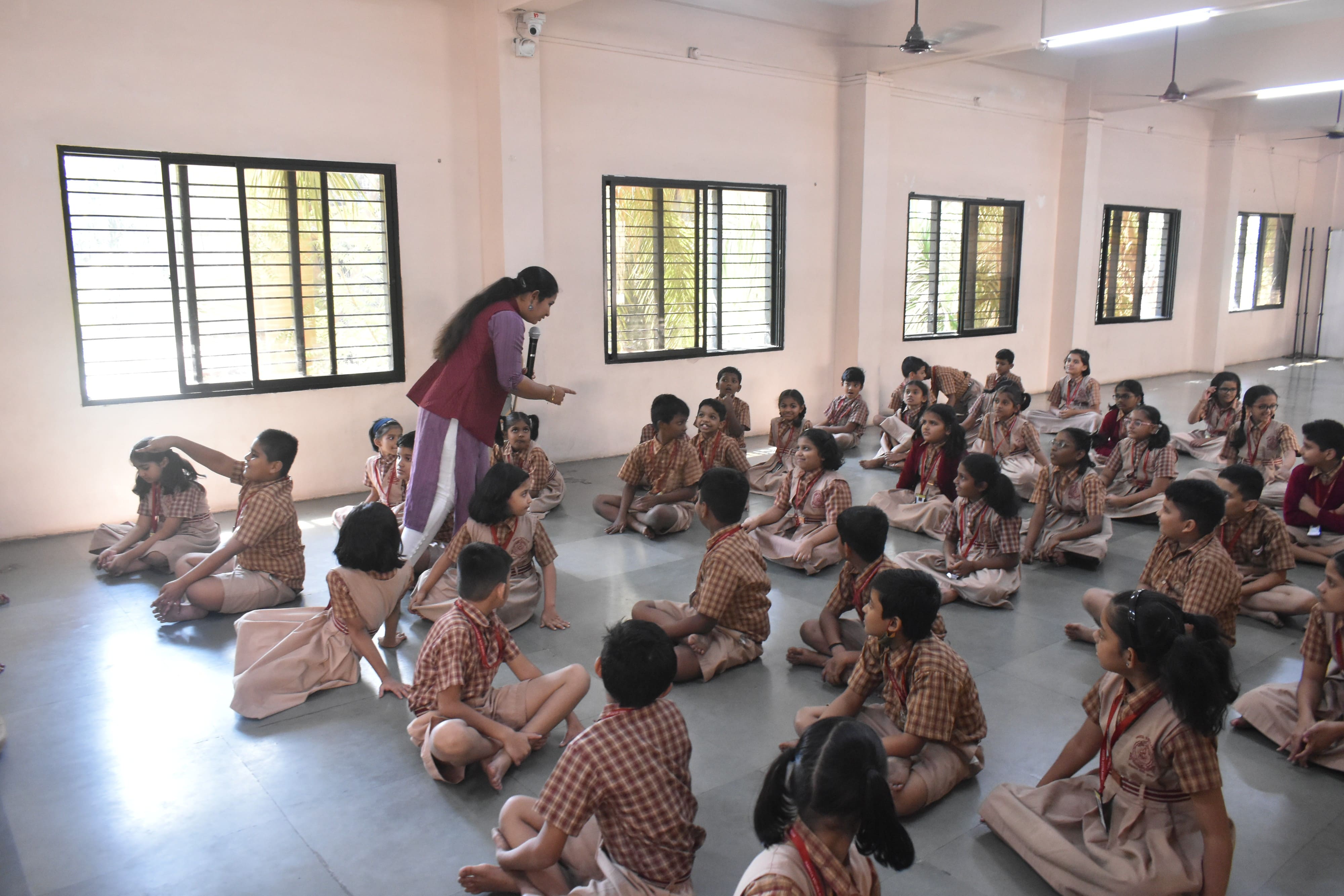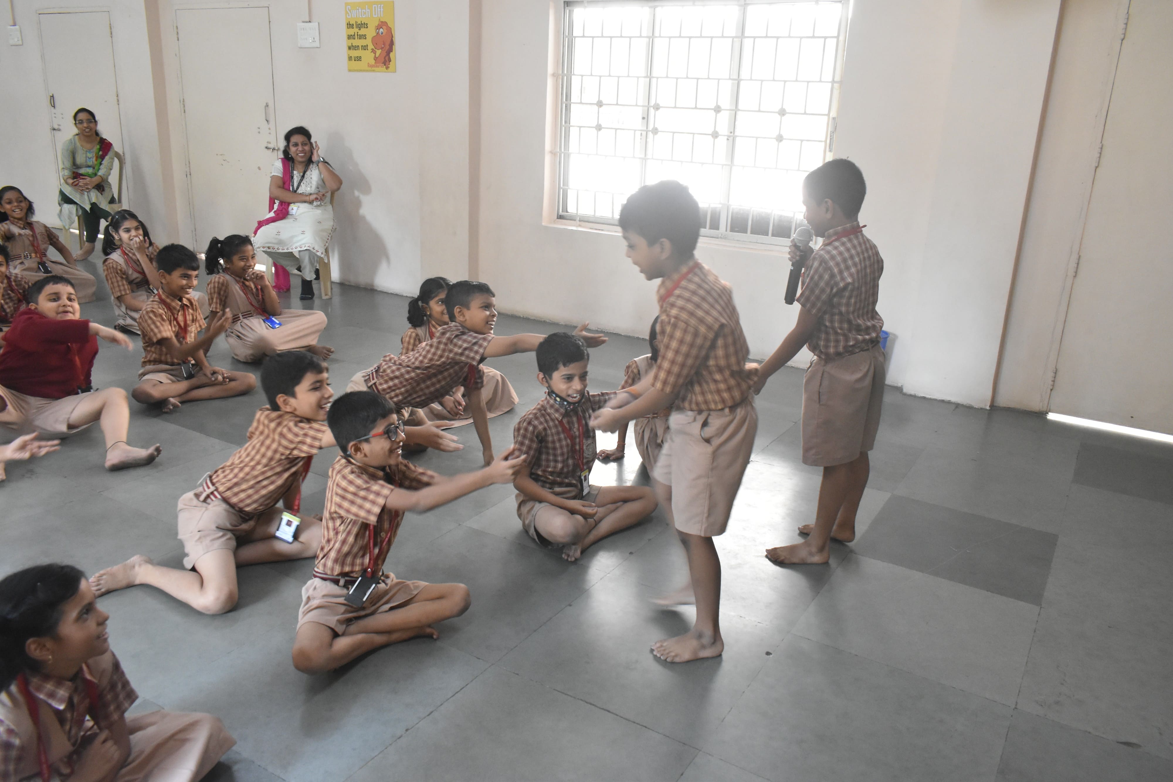 The session started with a fun game of “opposites”, in which the students will do the opposite of what the team member says, for e.g. if the team member says ‘Sit’, then the students have to ‘Stand’. Students enjoyed the game and tried to concentrate on their actions.