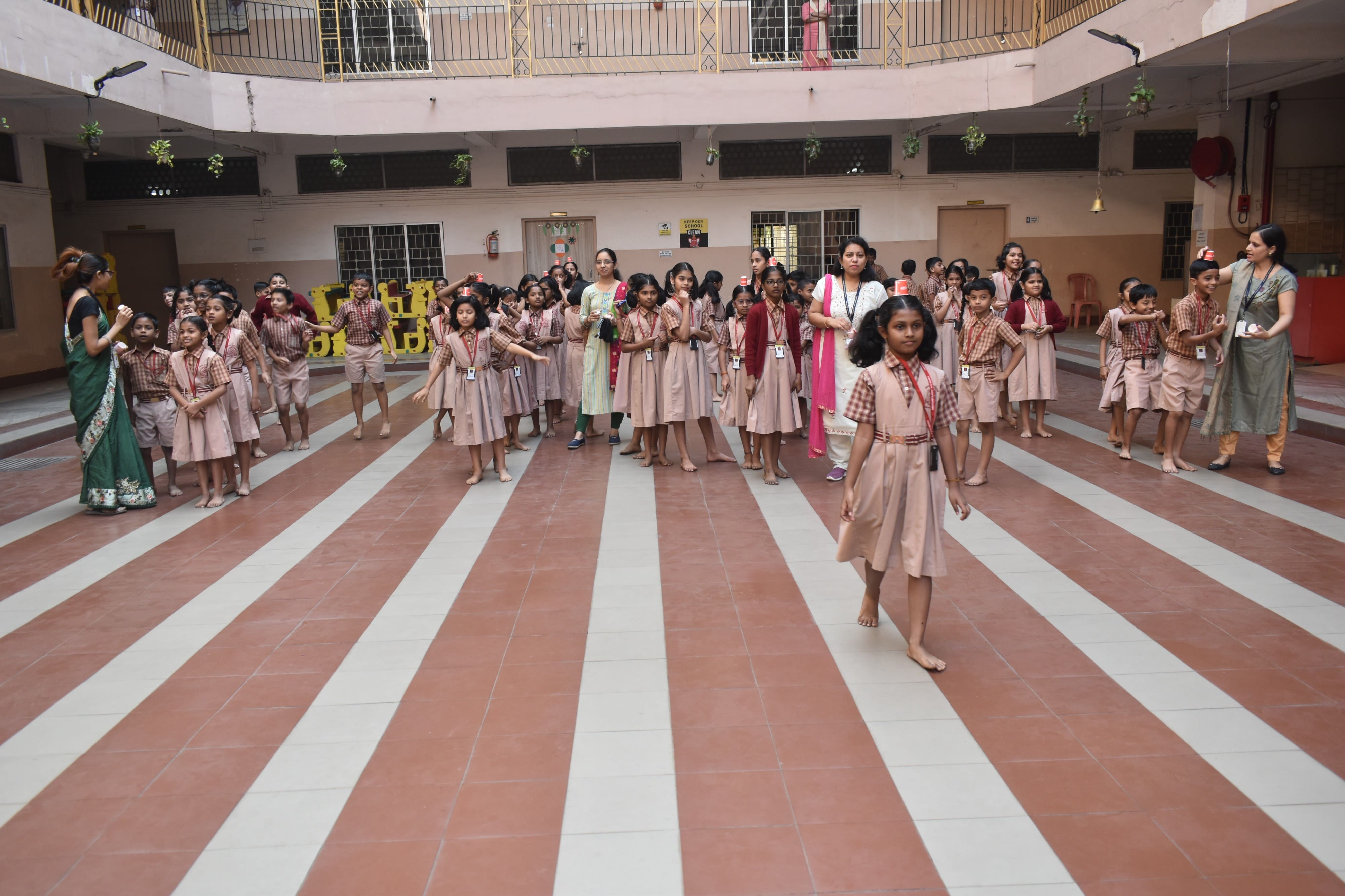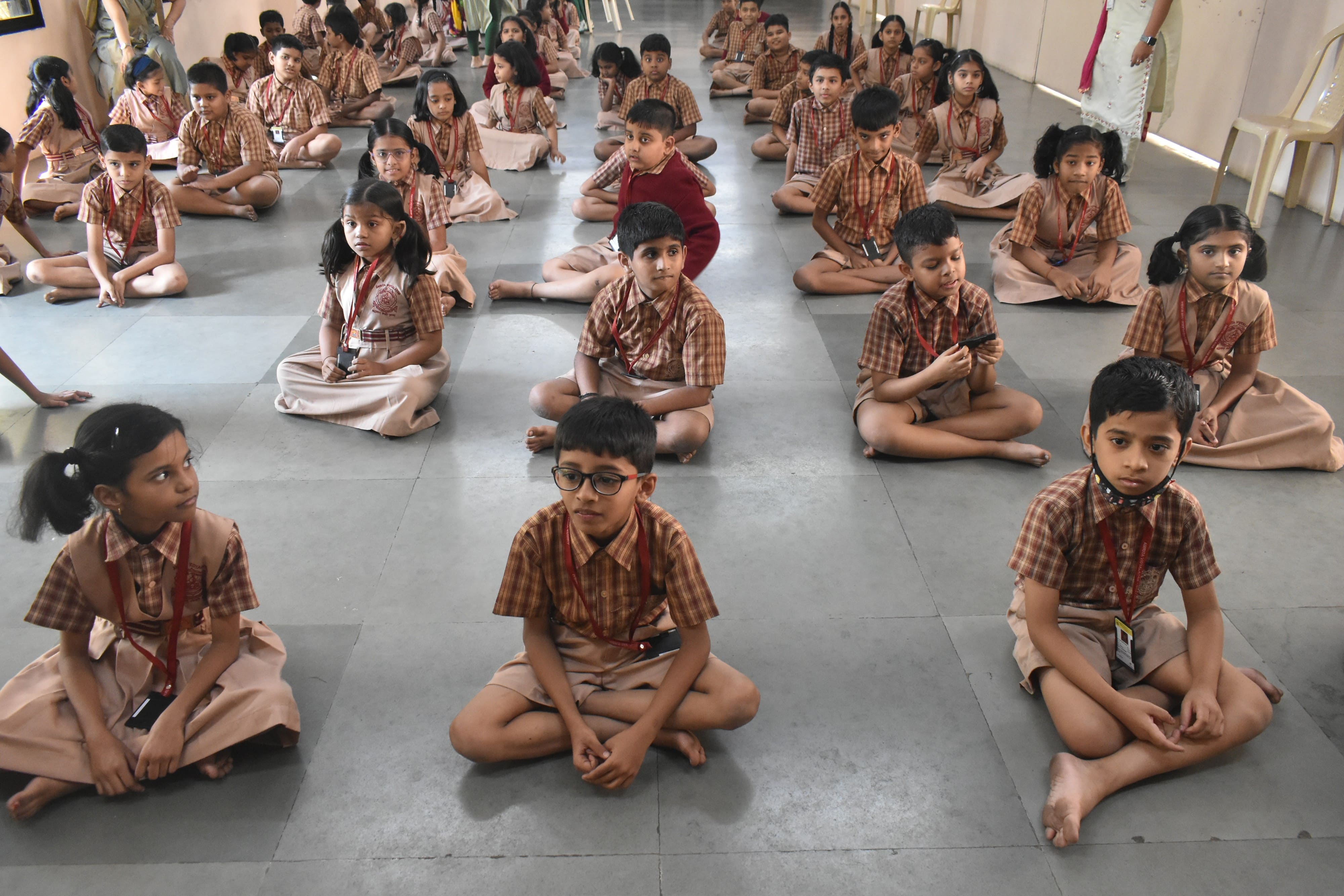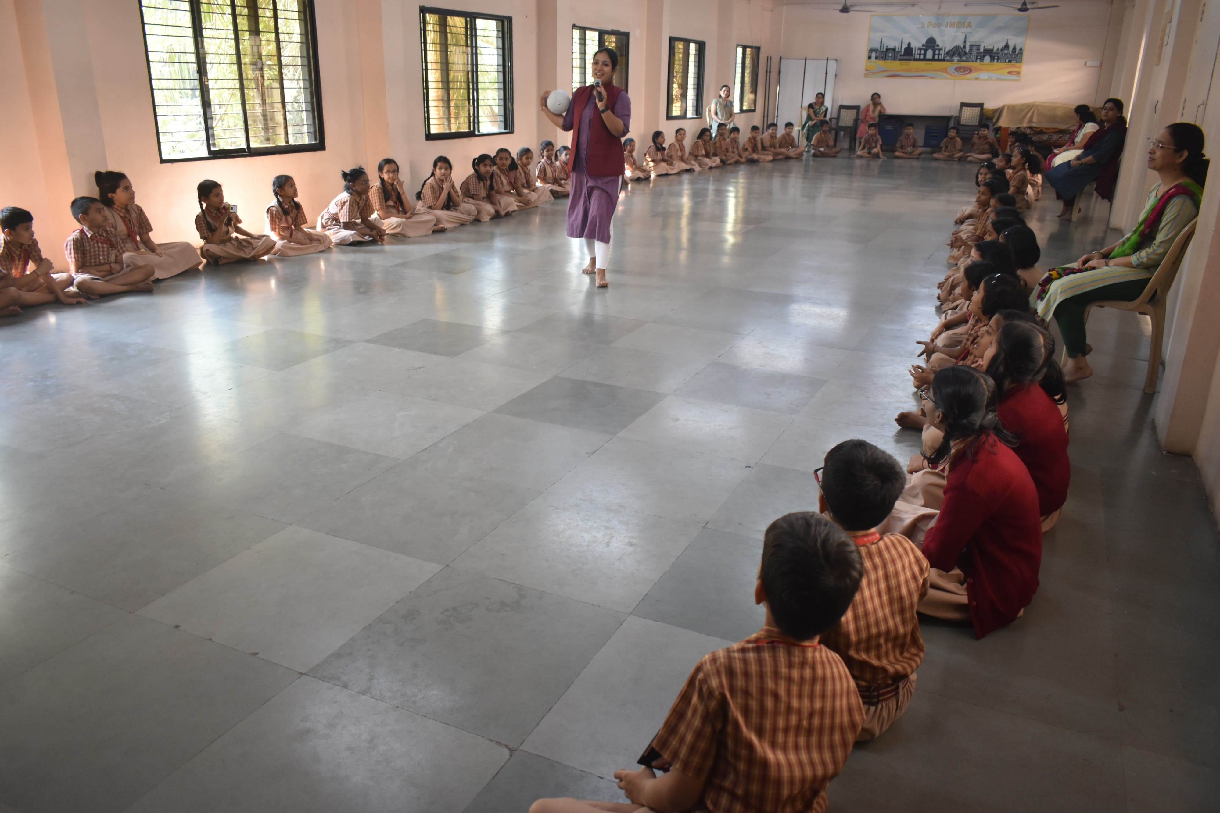 The session started with a fun game of “opposites”, in which the students will do the opposite of what the team member says, for e.g. if the team member says ‘Sit’, then the students have to ‘Stand’. Students enjoyed the game and tried to concentrate on their actions.