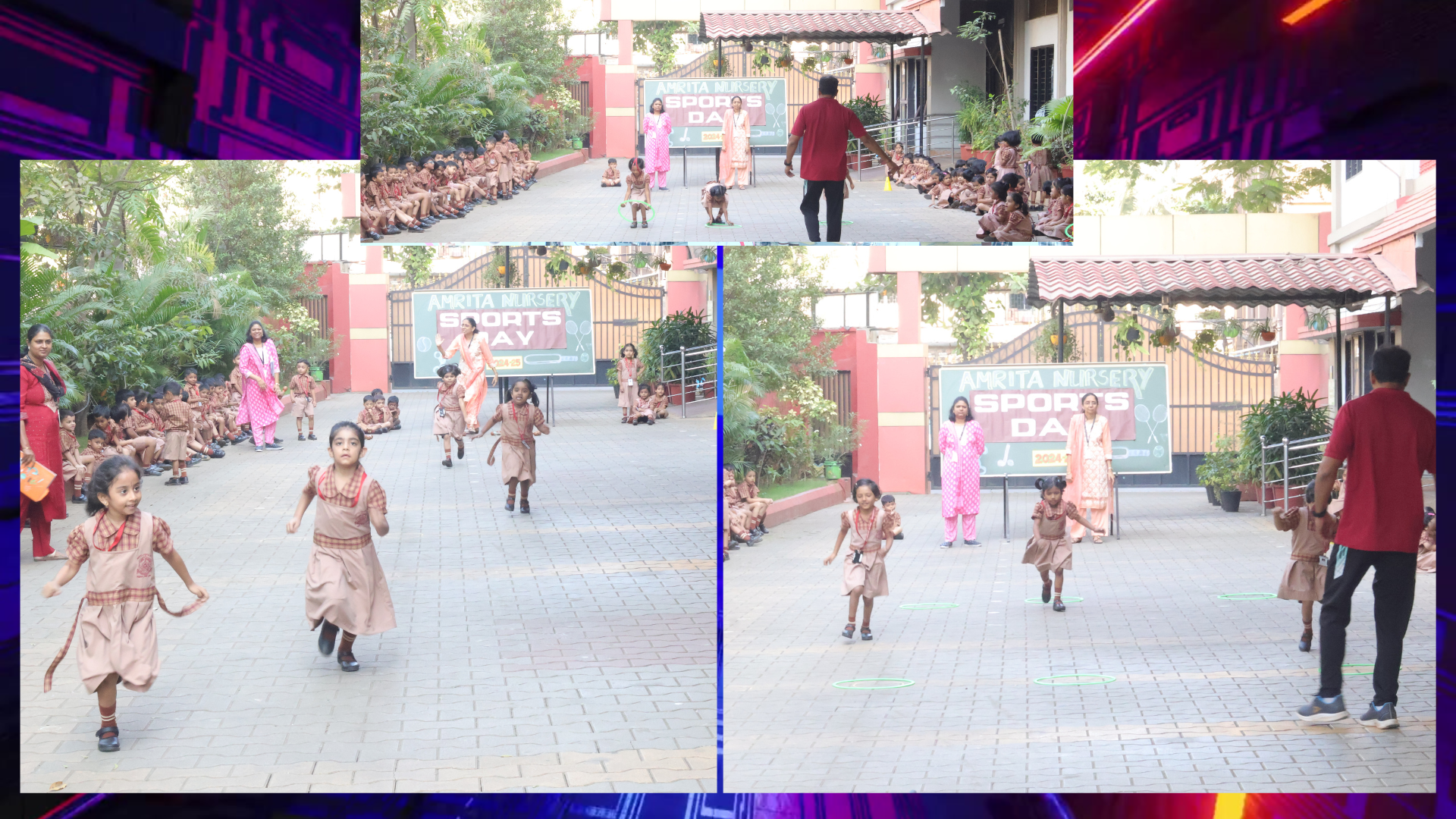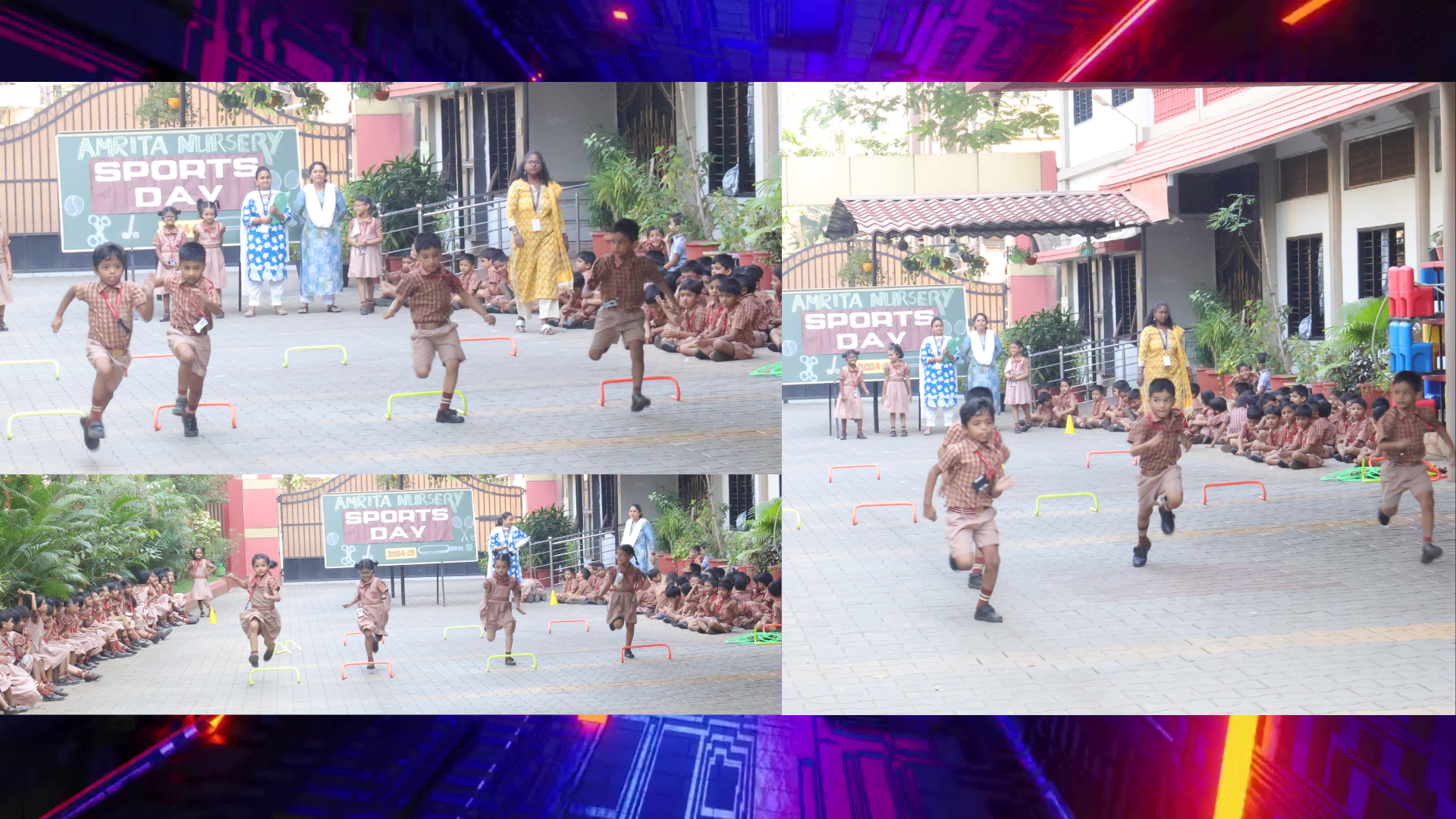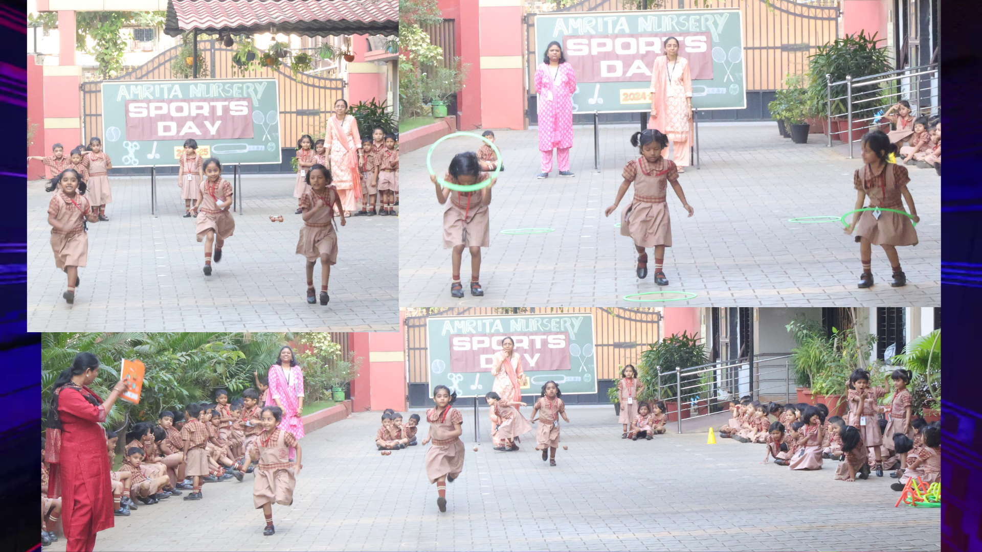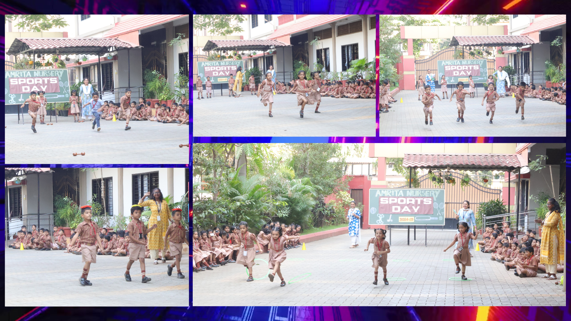 In every student’s life, the PT lectures are their favorite and dearest time of the entire day. Amrita Nursery ensures to inculcate physical activities that not only enhances a child’s fitness but also aids their mental well-being and boosts their energy. Sports Day was celebrated with much zest and enthusiasm by the finalists and their peers. Nursery students enjoyed sports like Running Race, Threading the Beads, Frog Jump, Hula Hoop, Balancing the Beam while the Jr.Kg and Sr.Kg students loved every bit of sports like Collecting the Blocks, Hurdle Race, Beam Balancing, Hula Hoop and Running Race.