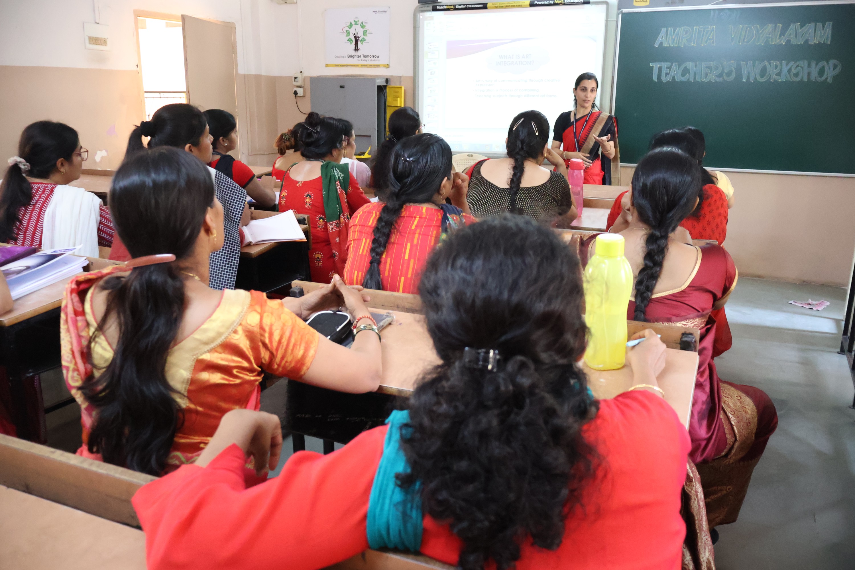 The workshop was conducted by Academic Incharge Prajna Arun for the teachers of 1st to 5th standard. The program aimed to equip educators with the necessary skills and strategies to incorporate art into various academic disciplines, stimulating creativity, critical thinking, and interdisciplinary connections among students.