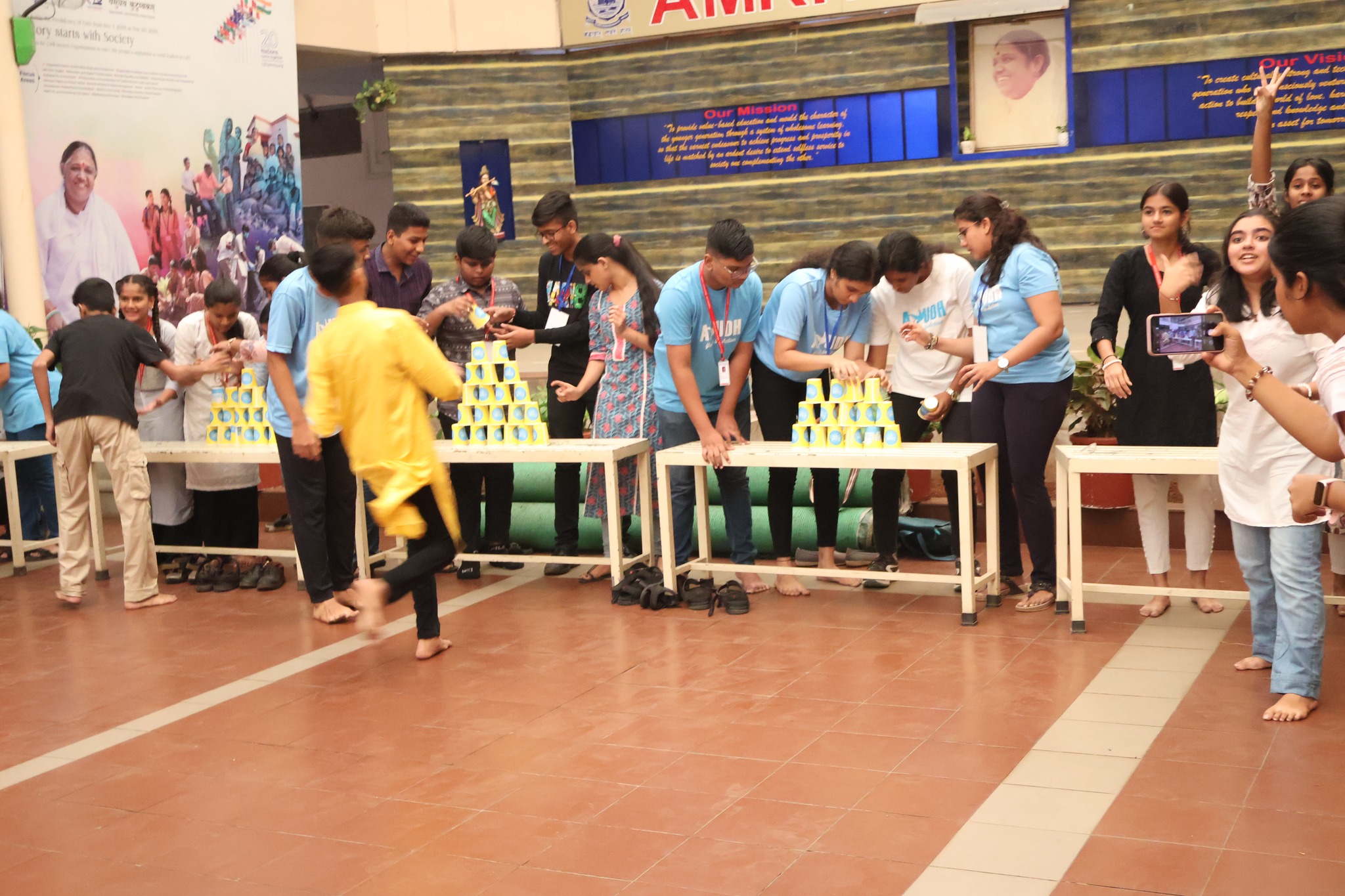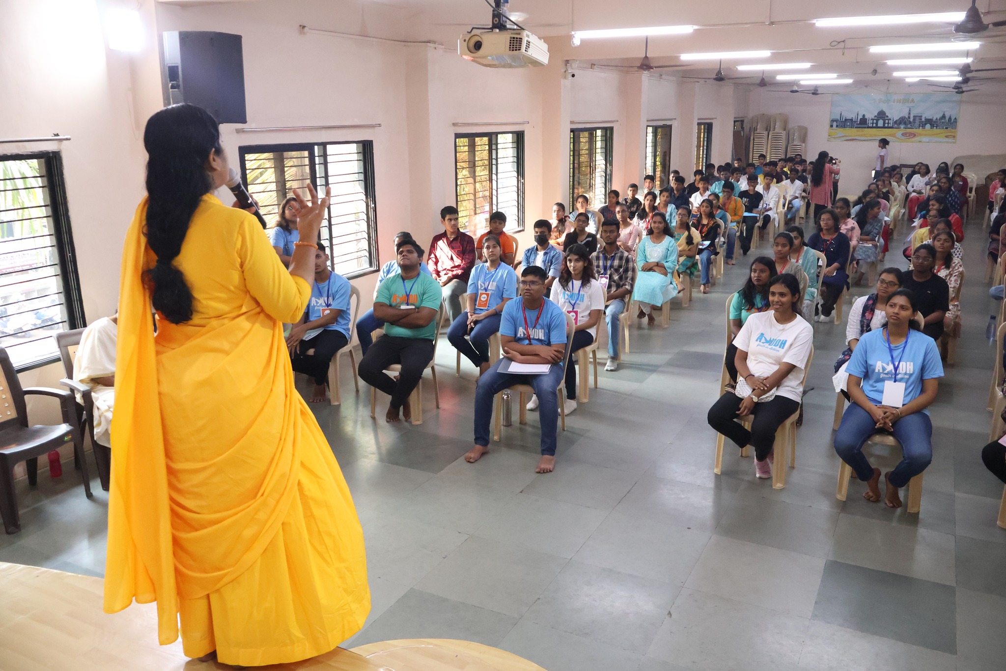 On November 3rd, a session was conducted only for the registered students. Brni. Sharanyamrita ji motivated the students through her thought provoking talk and the Ayudh team continued with the activities and games to understand the strengths and capabilities of the registered students. Swamiji, also addressed the students by giving a spiritual talk after a brief break.