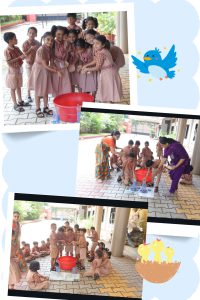 “Amrita Vidyalayam is undertaking the BHUTAYAGNAM PROJECT.” – a thoughtful bird-feeding initiative aimed at instilling values of kindness, care, and environmental responsibility in young minds. Under this project, students from Nursery to Class 2 receive a spoonful of Bajra every Tuesday and personally fill the bird feeders placed around the school campus.