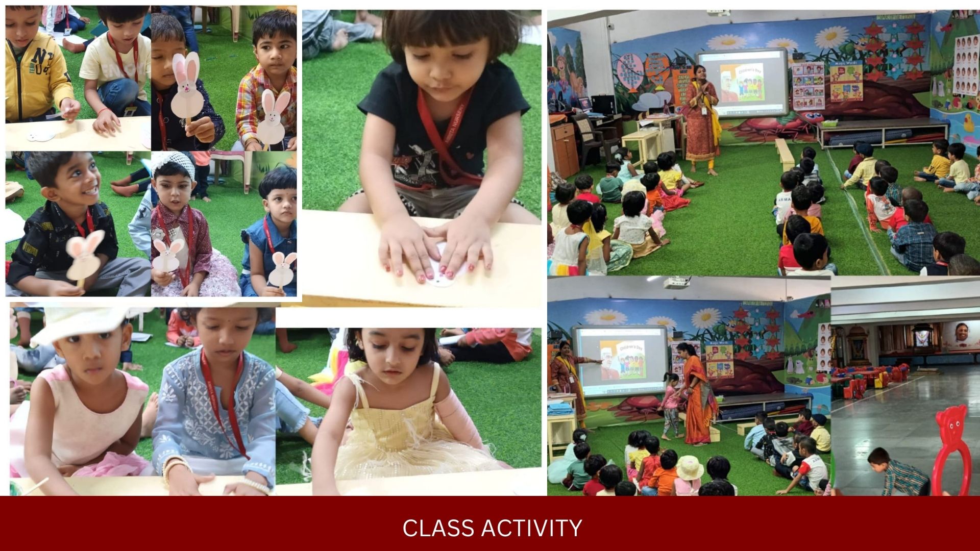 The nursery tots danced and saw the video of Chacha Nehru and importance of celebrating Children’s Day. They also made stick puppet of Bunny using circles. And the day ended with distribution of chocolates.
