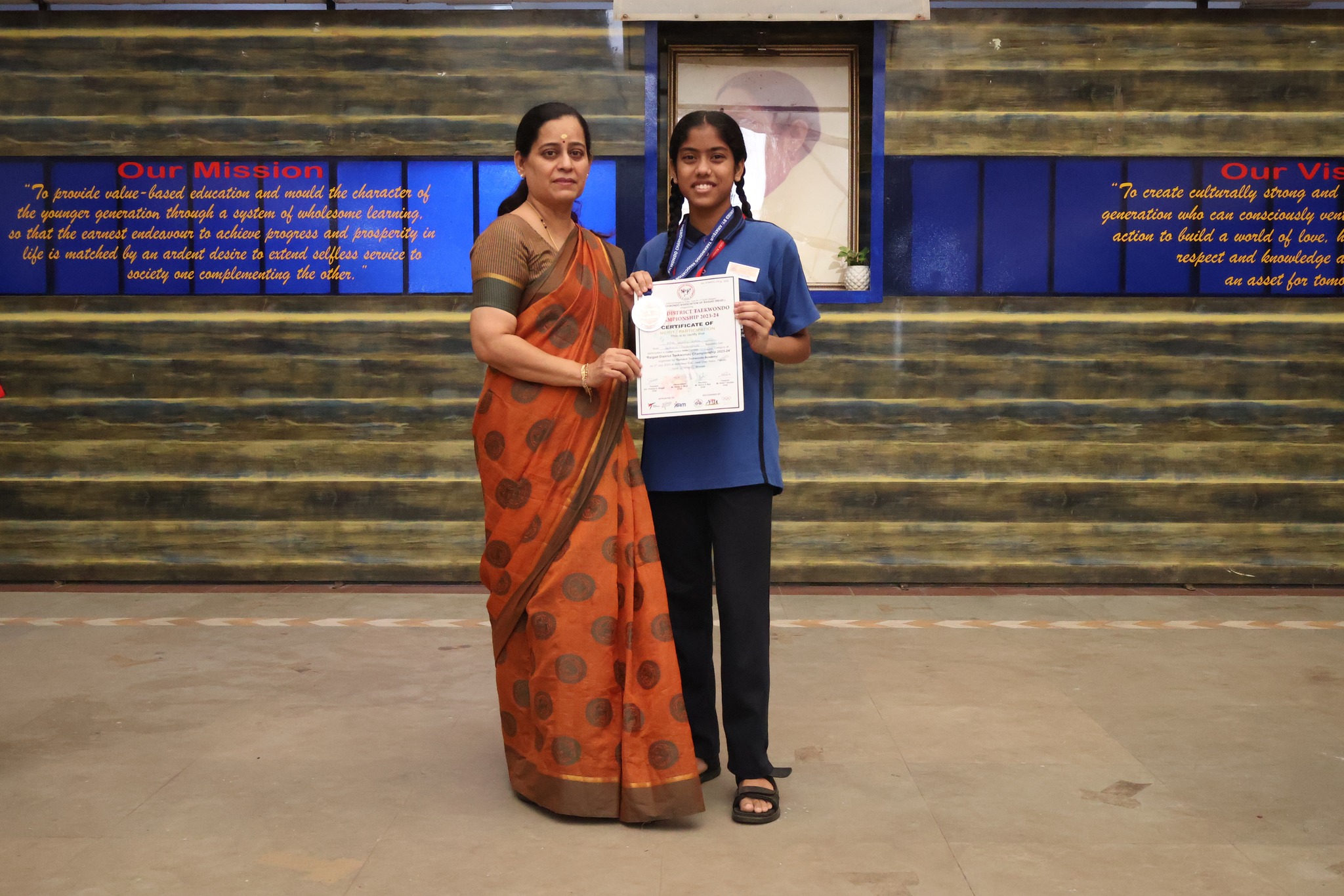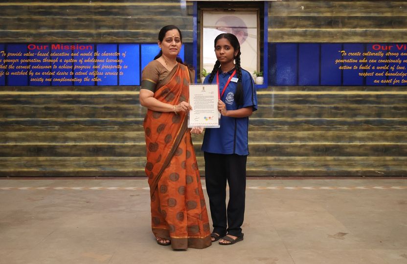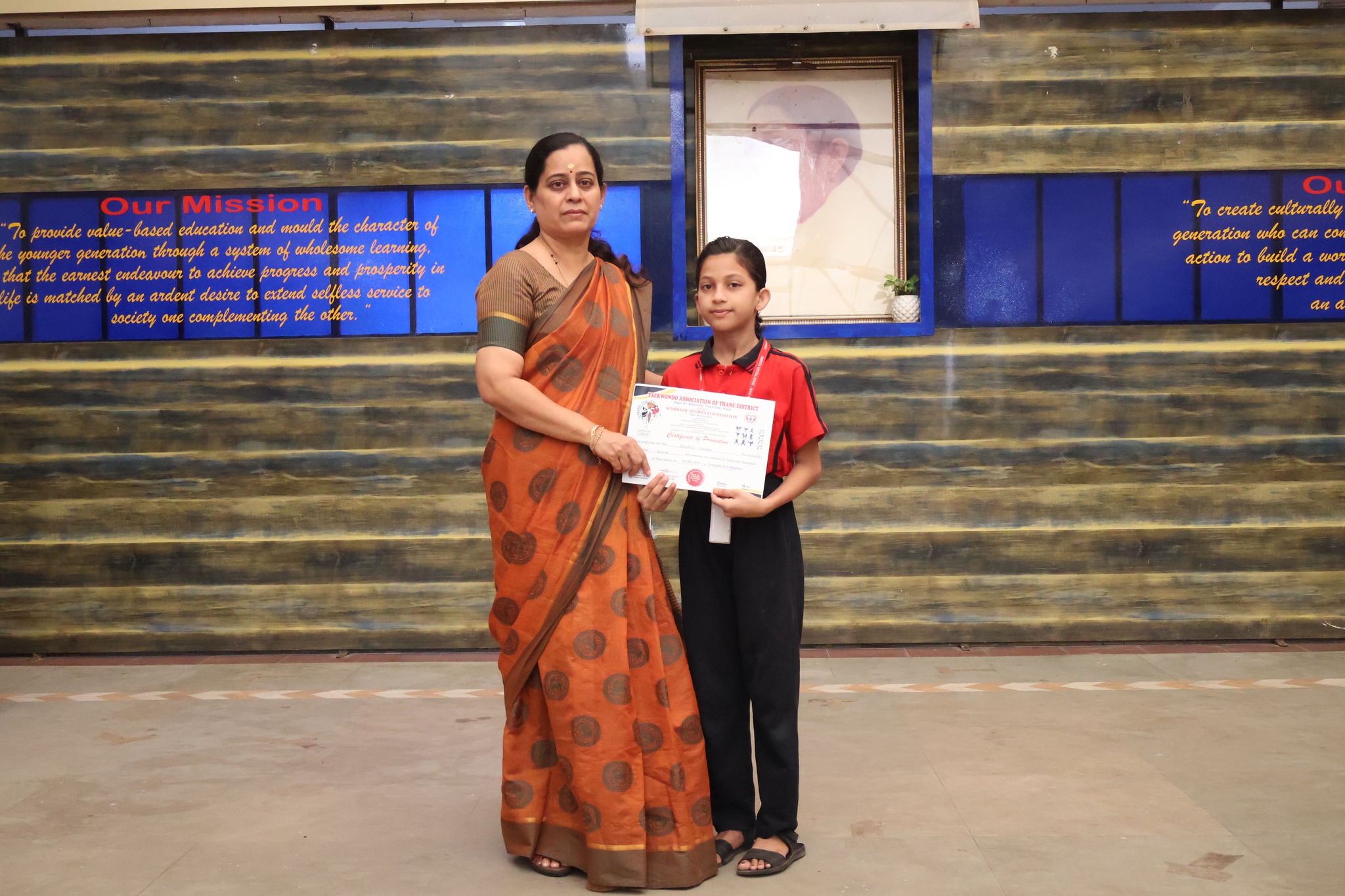 Janhavi Nalage of class VII for successfully completing the Yellow Belt promotion test conducted by Taekwondo Association, Thane District.