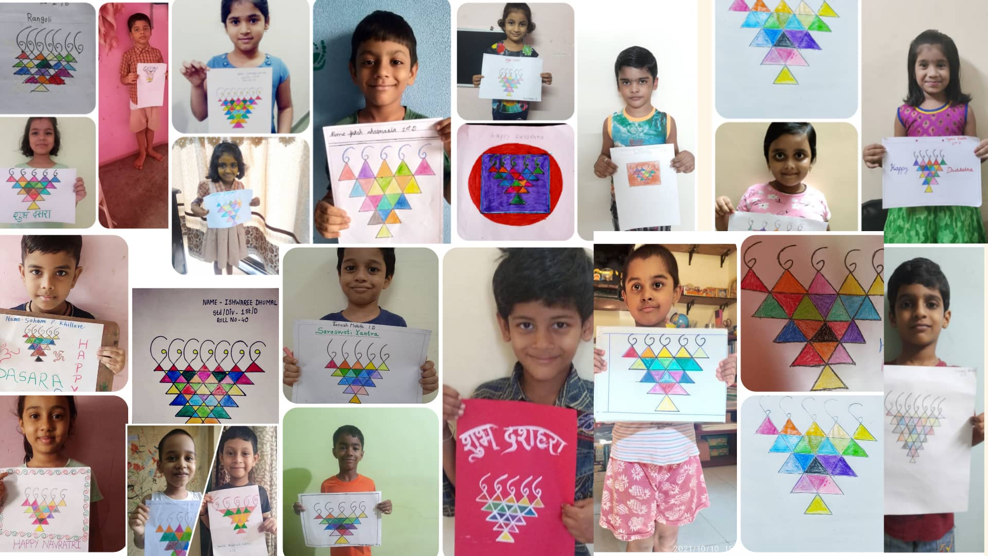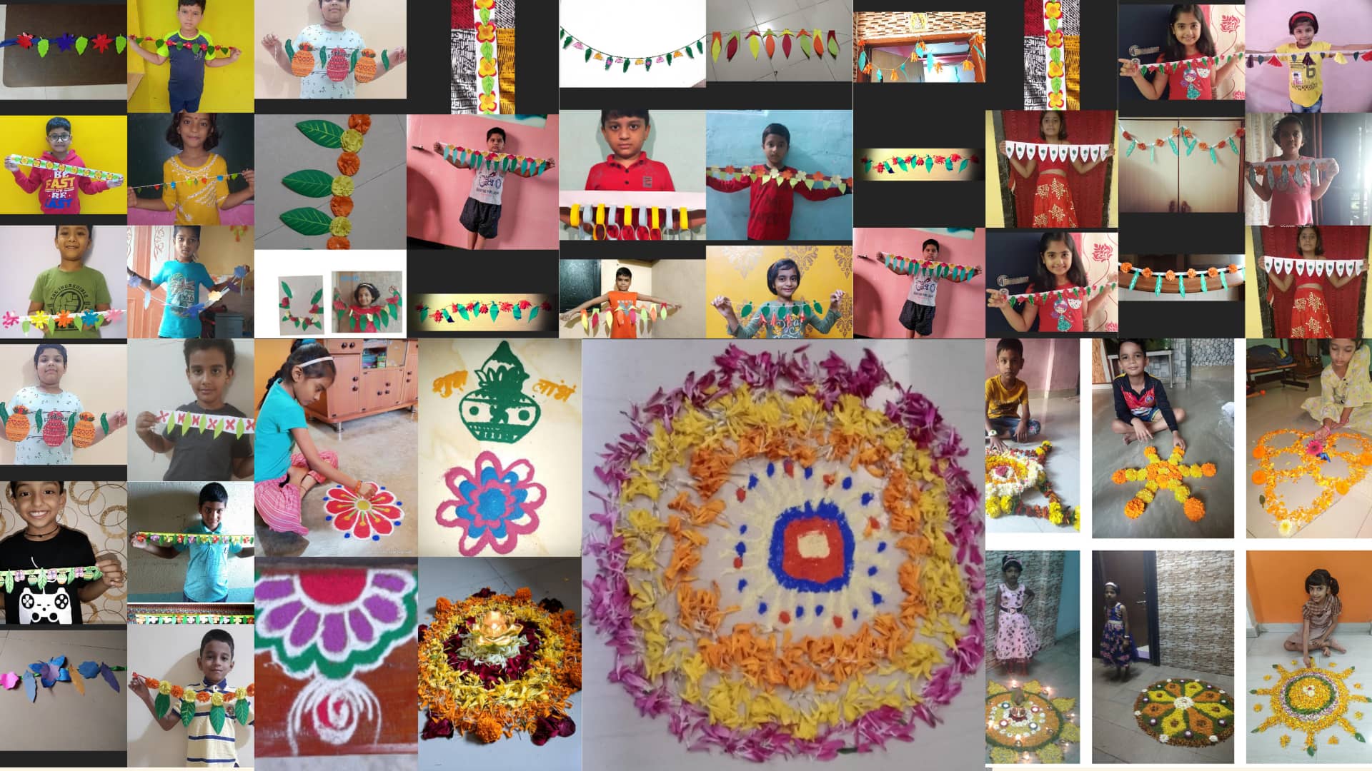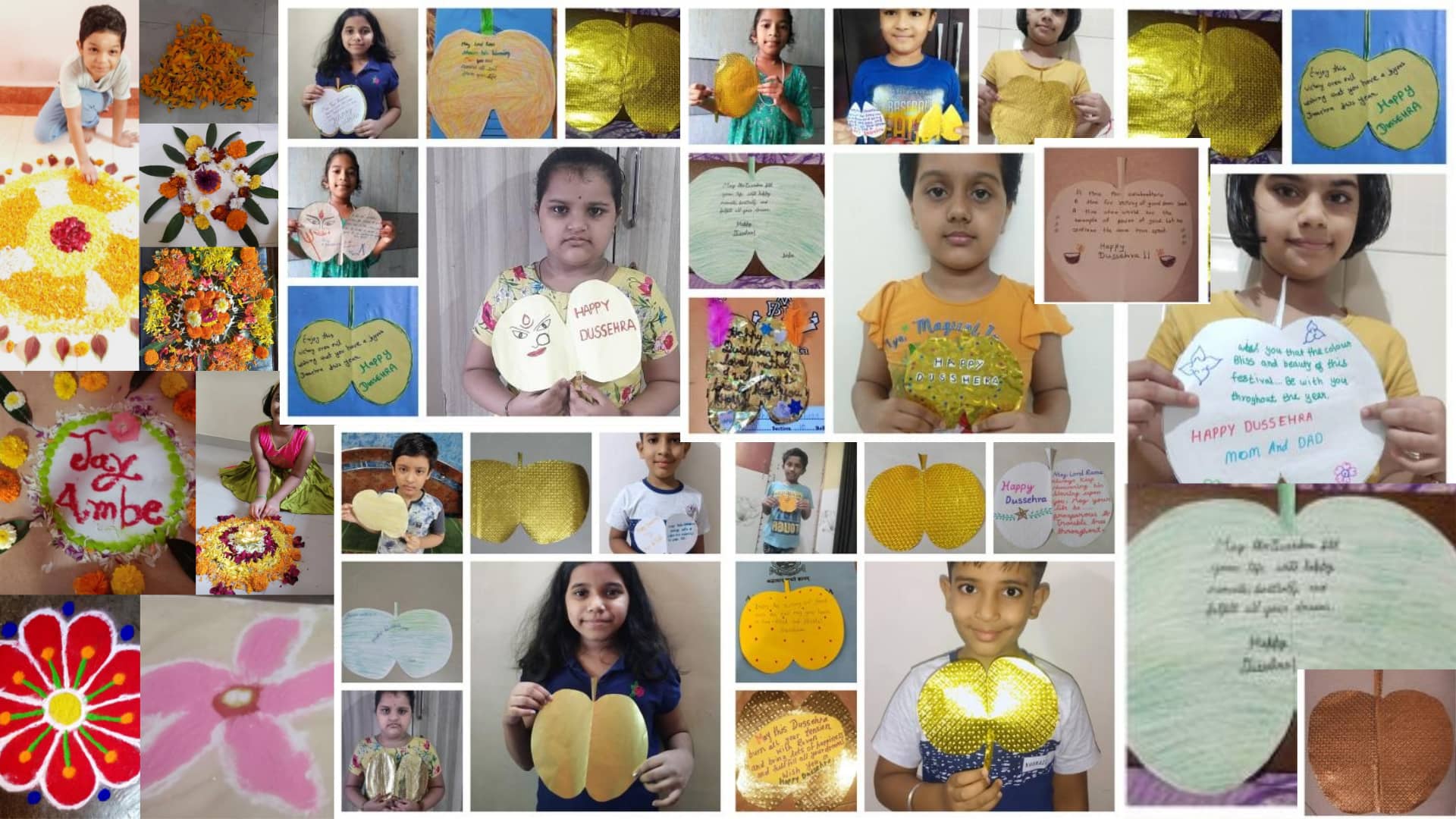 Various class activities like writing their wishes on the ‘Soneri Paan’ to making paper flutes were carried out. Some children decorated their floor with colorful rangoli, while some made the ‘Pookalam’ (ie. flower rangoli). Torans were made to decorate their doors.
