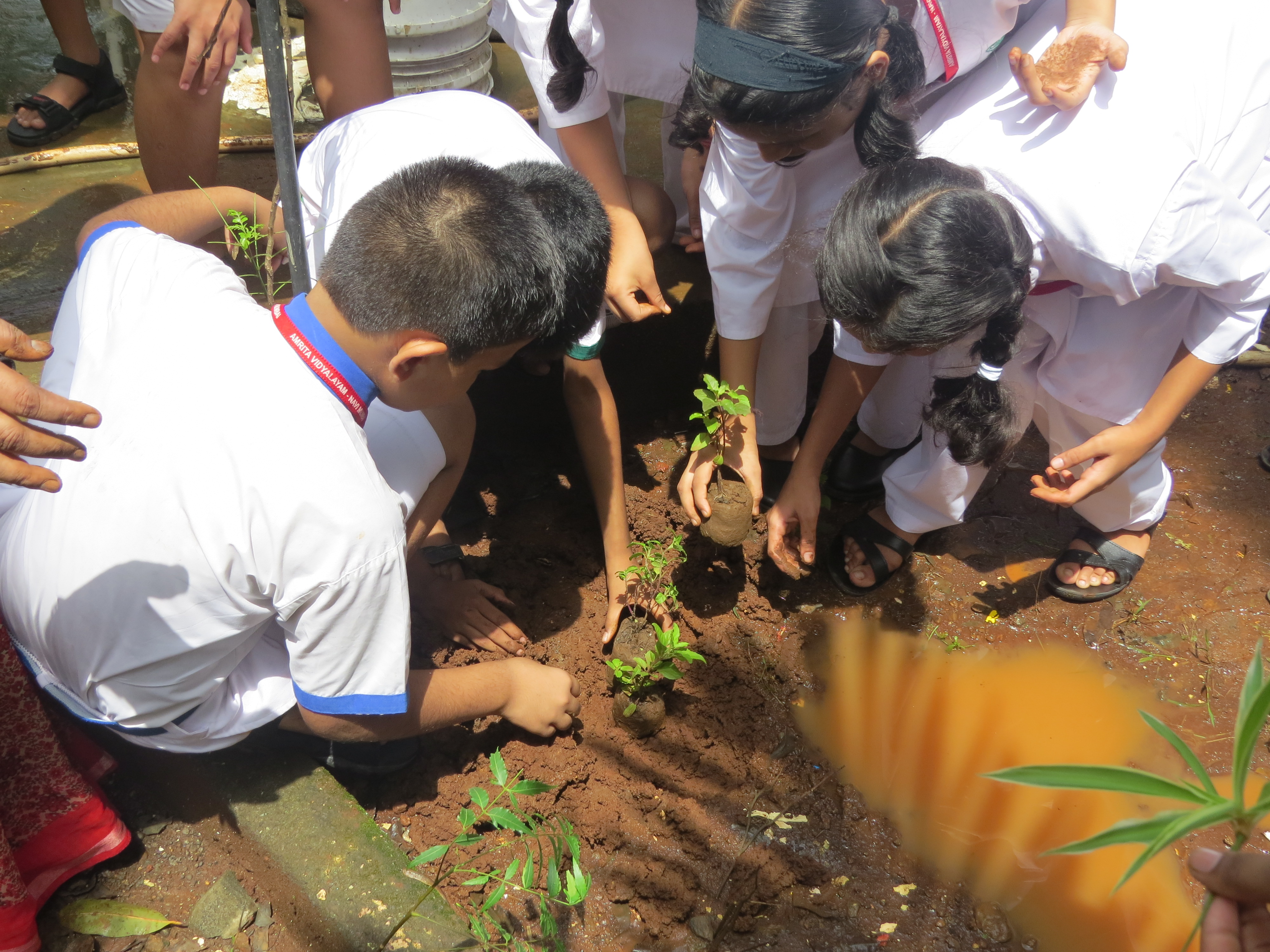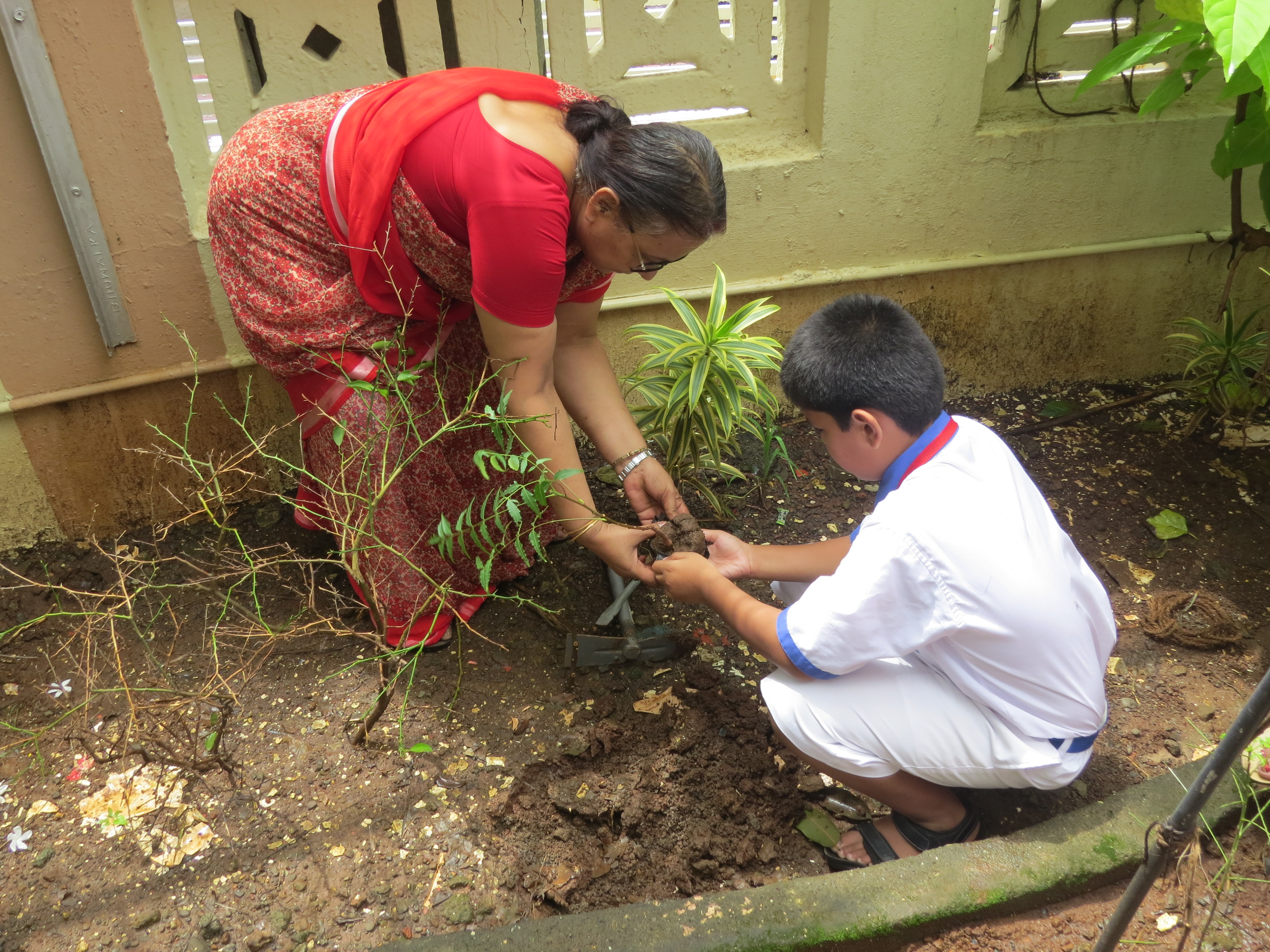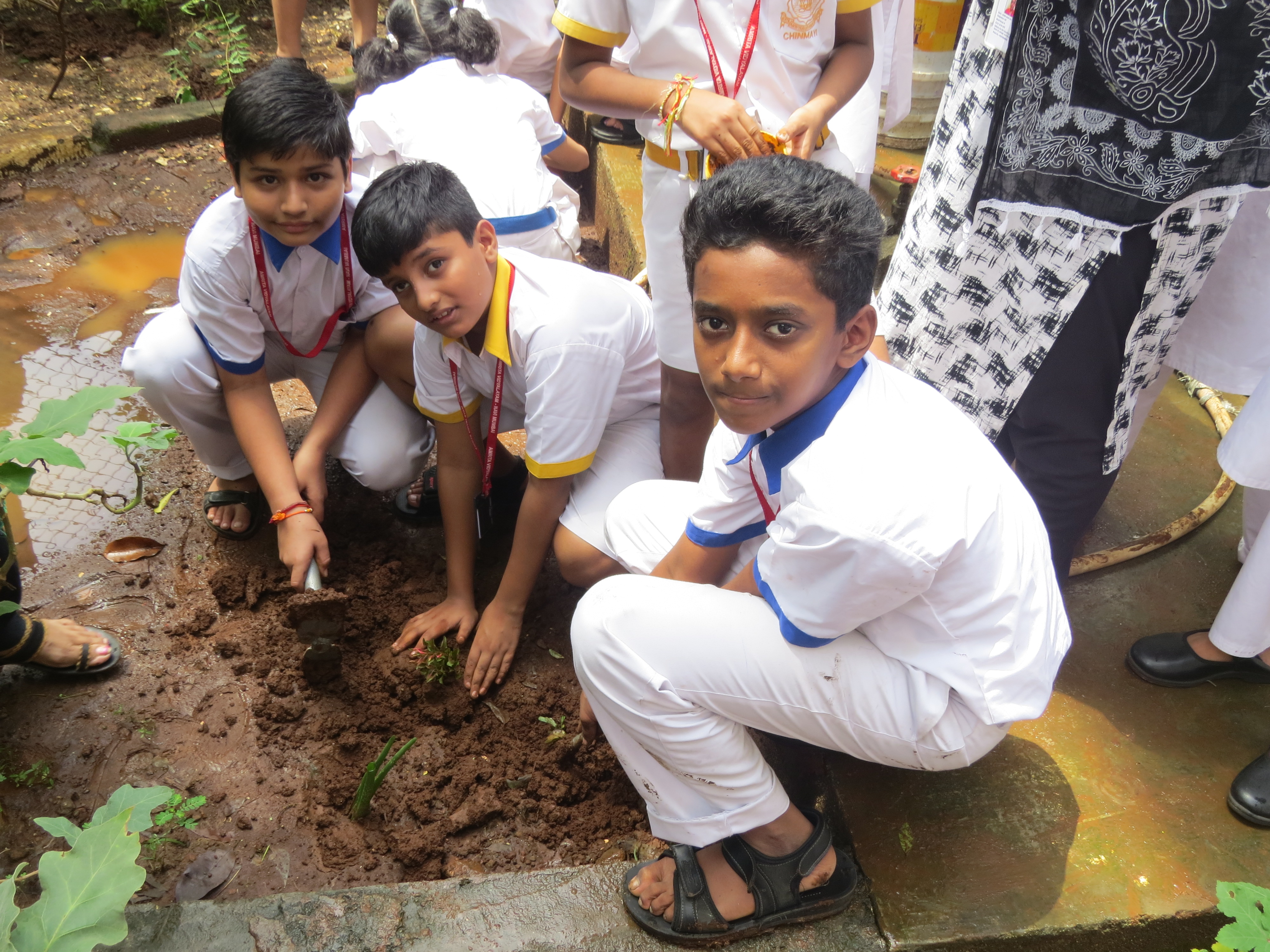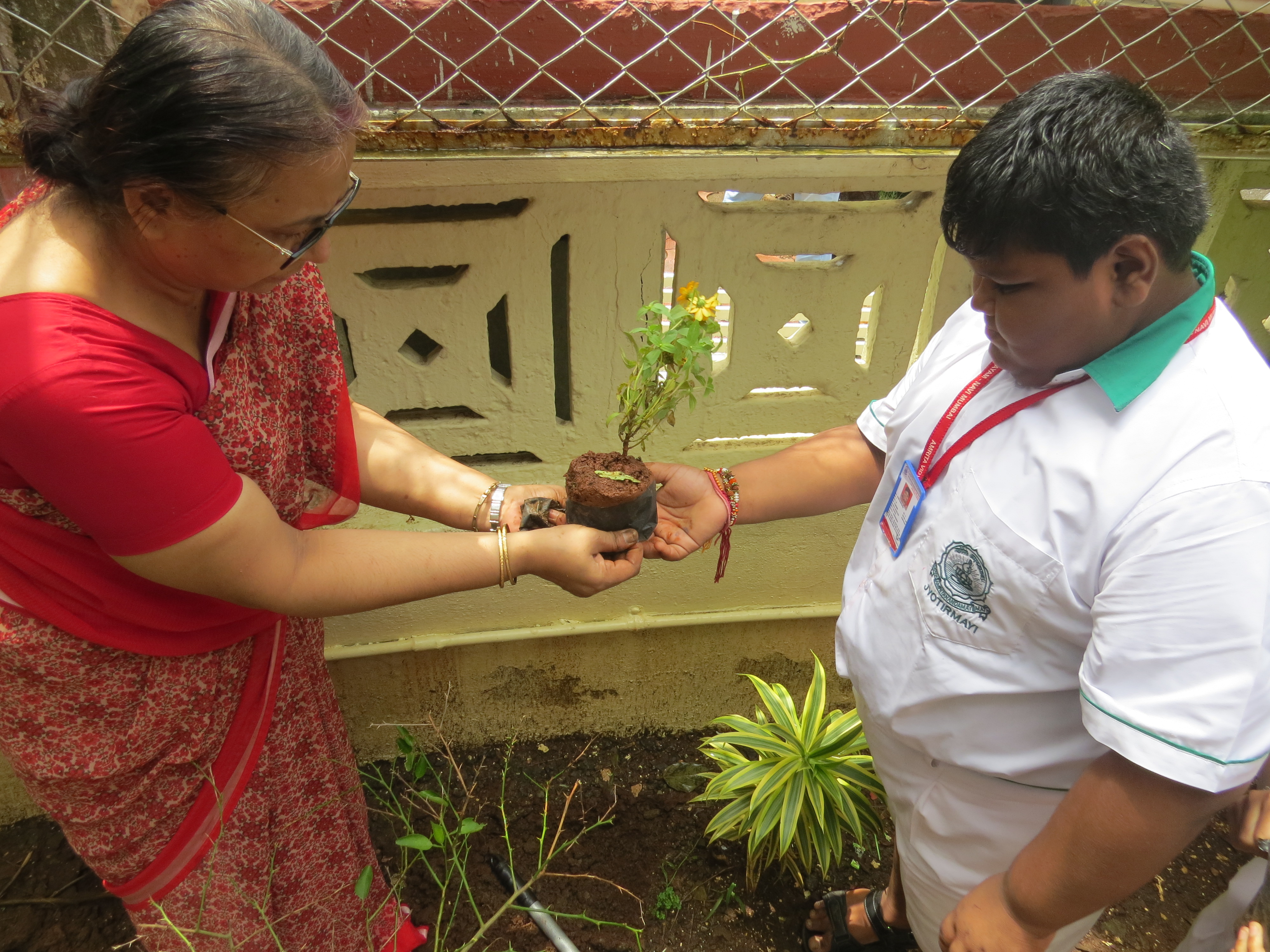 To create individual responsibility, students from classes 3rd to 8th brought plant saplings which included Tulsi, Aloe Vera, Cactus, some flowering varieties and planted it around the school campus. This activity gave the students a sense of responsibility towards nurturing nature and the environment.