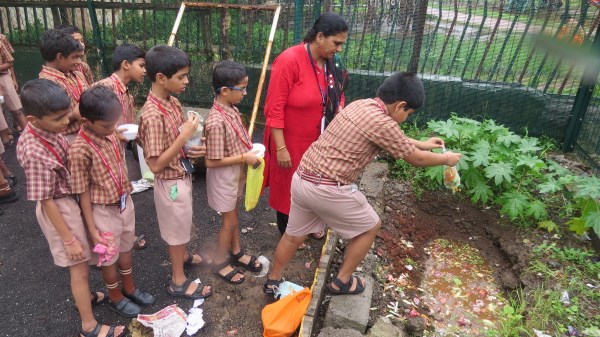 The main aim of Eco and Heritage club was to make students aware of the most important fact : Earth gives us everything needed for us to sustain. How do we utilize these resources and ensure that we leave a clean footprint. The residual parts of fruits, vegetables, flowers and leaves can be used as food for trees. A short video of Compost Pit was shown to students of 3rd and 4th grades. Once they understood the process, they were taken down to the school ground, where a 2 foot pit was dug. The students filled the pit with fruit and vegetable peels, dried grass and flower. Finally, soil was added which will be the last layer. Earthworms present in the soil, which are nature’s ploughing agents will help in the composting process. This practical knowledge will undoubtedly help the students to understand that nothing goes waste in nature.