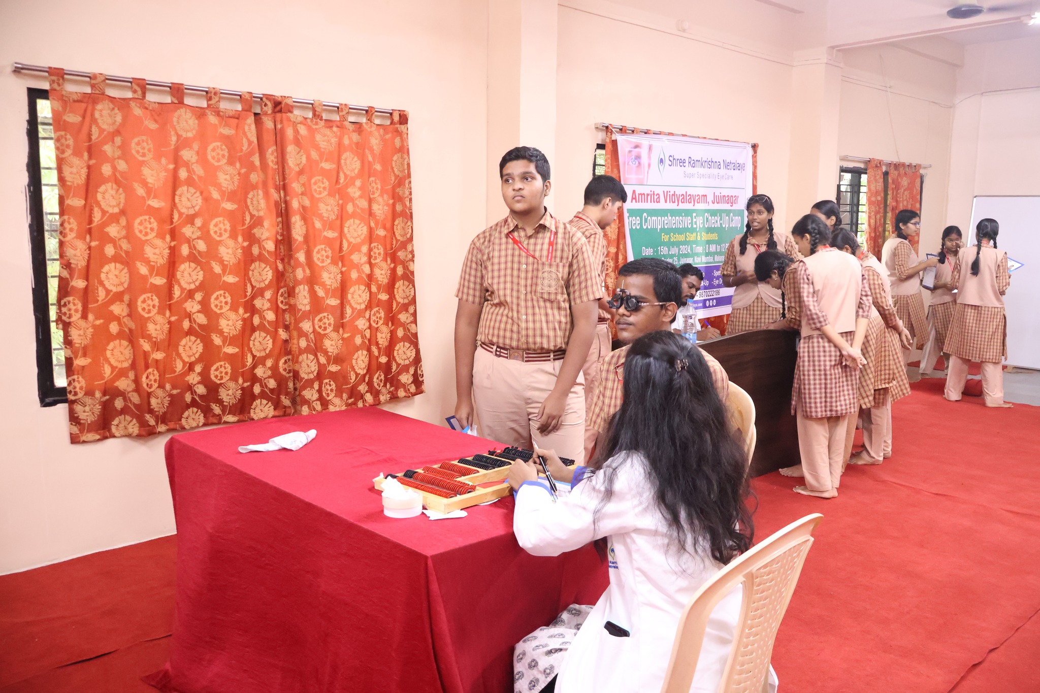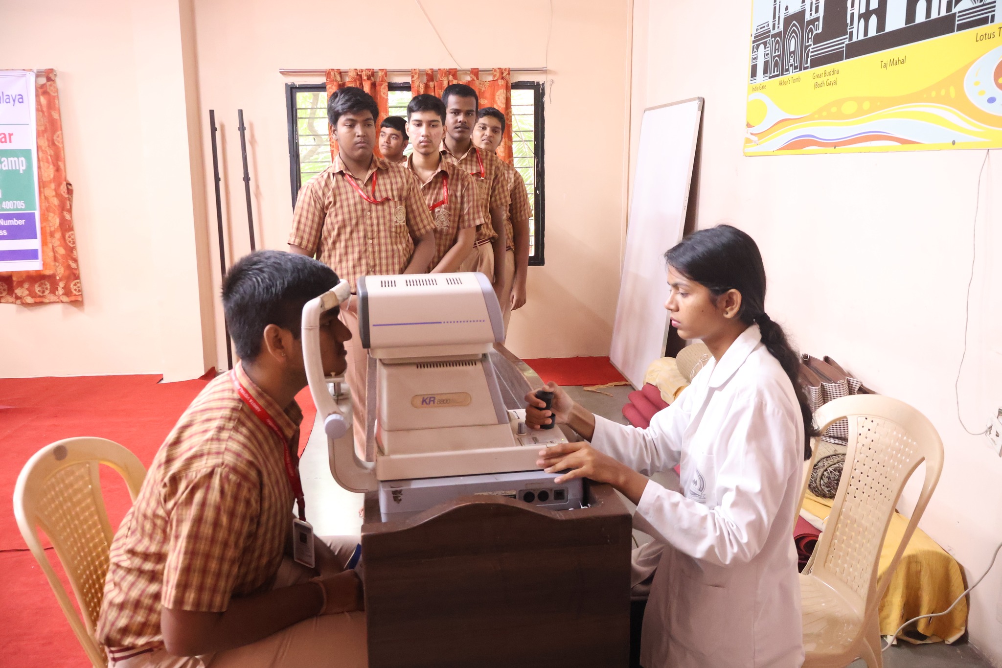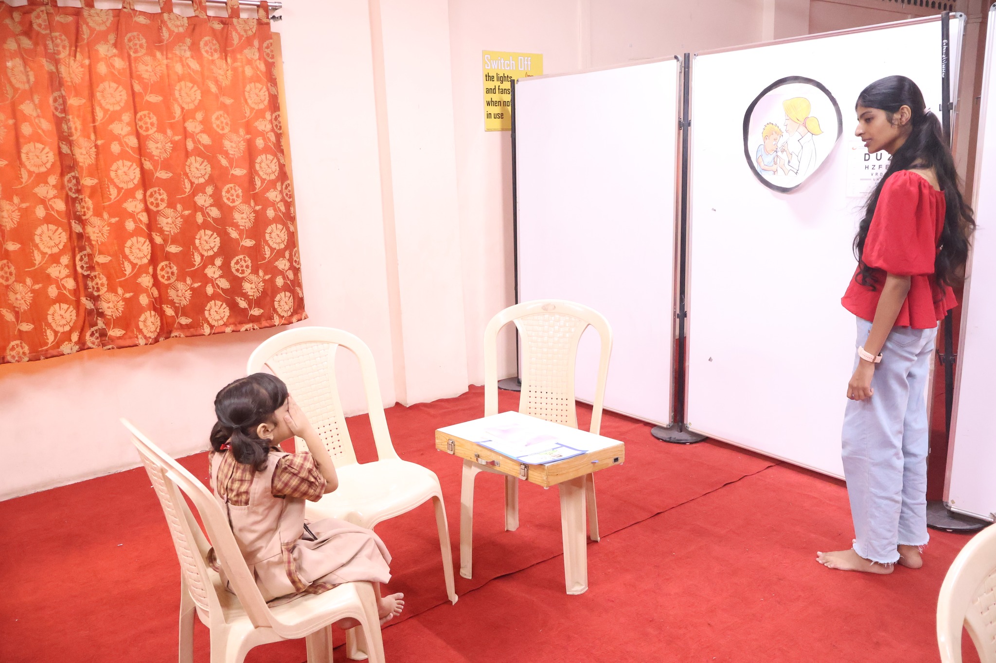 Our school recently hosted a week-long comprehensive eye check-up event for students from Junior KG to 10th standard, conducted by the expert team from Shri Ramakrishna Netralaya. The event included meticulous eye examinations such as visual acuity tests and eye muscle function tests. Students actively participated, understanding the importance of regular eye check-ups for their academic success and overall well-being. Each student received a detailed report of their eye health, and those needing further consultation were identified for follow-up.