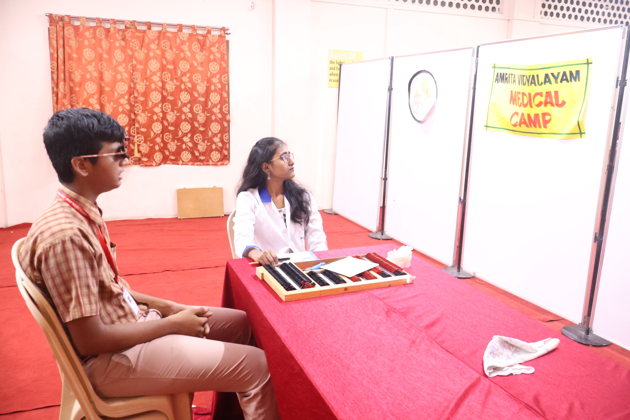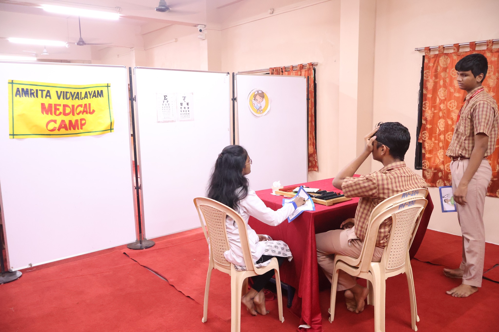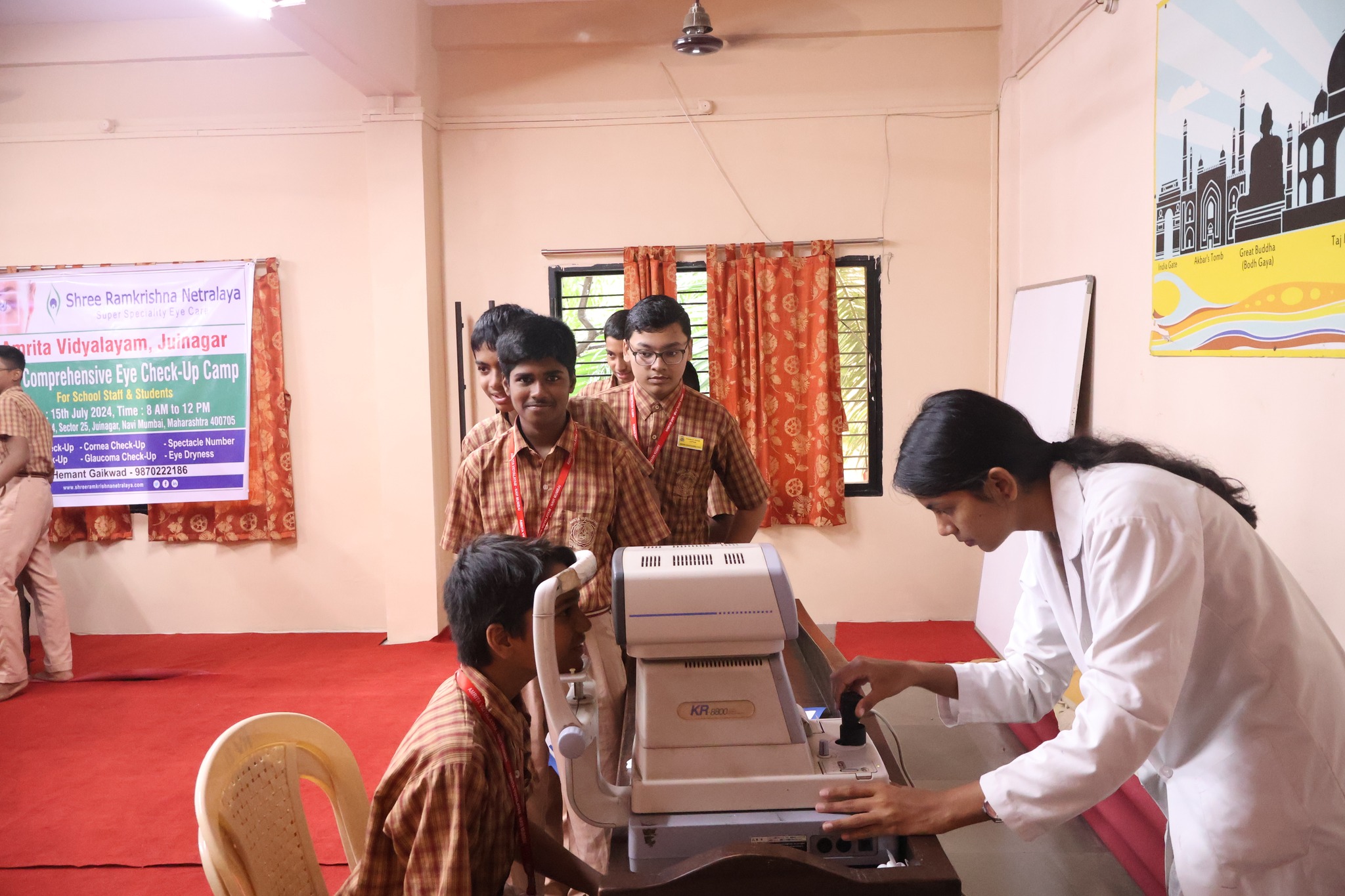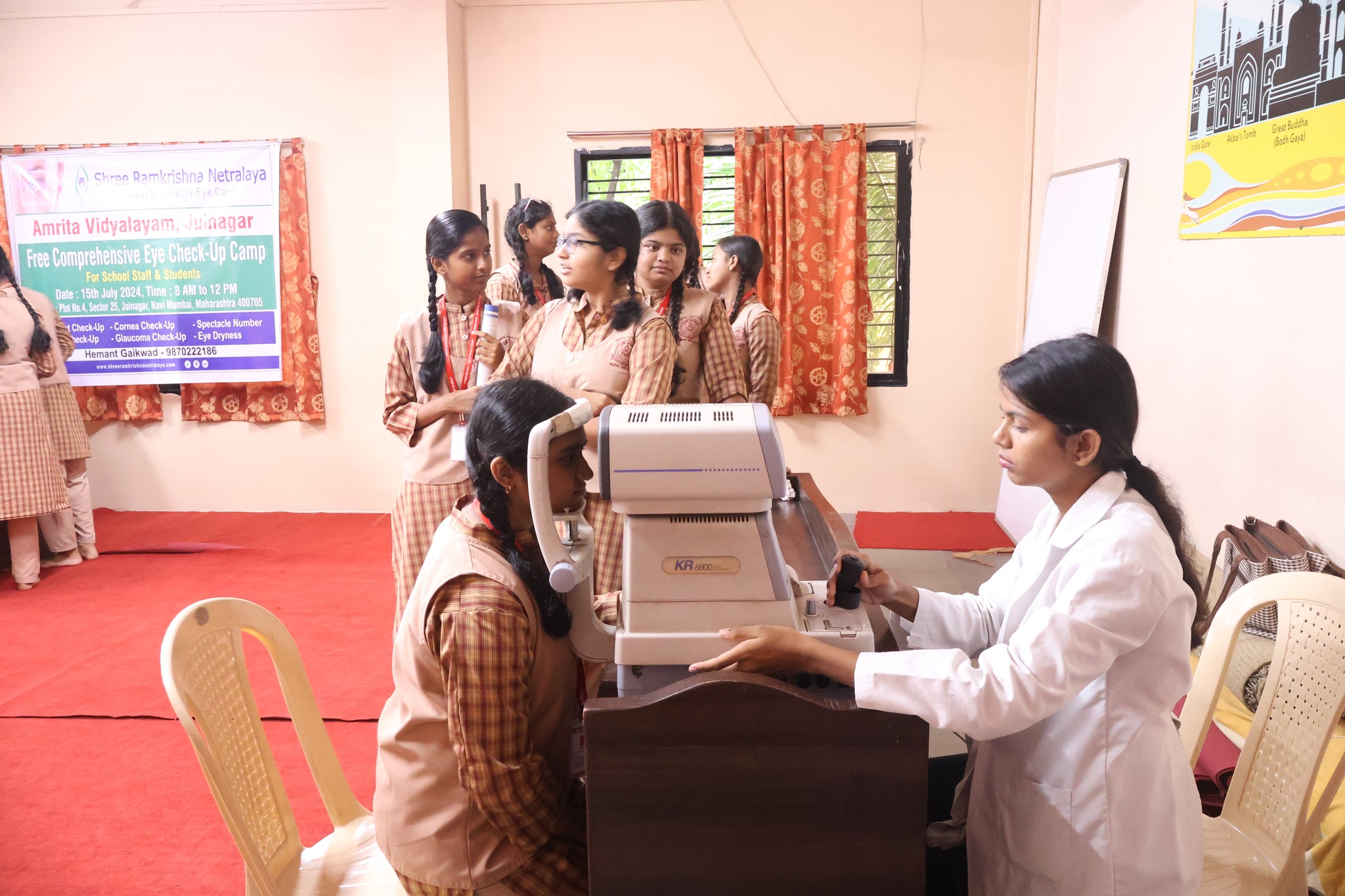 Our school recently hosted a week-long comprehensive eye check-up event for students from Junior KG to 10th standard, conducted by the expert team from Shri Ramakrishna Netralaya. The event included meticulous eye examinations such as visual acuity tests and eye muscle function tests. Students actively participated, understanding the importance of regular eye check-ups for their academic success and overall well-being. Each student received a detailed report of their eye health, and those needing further consultation were identified for follow-up.