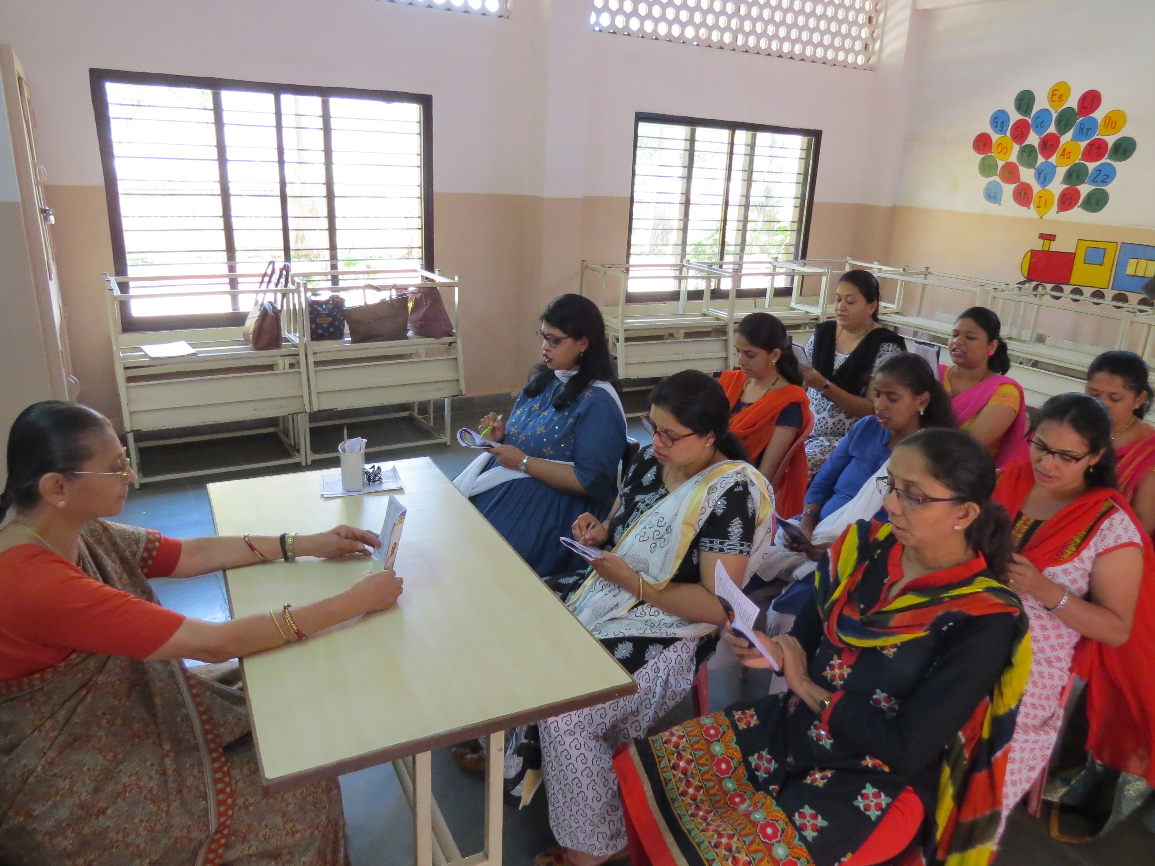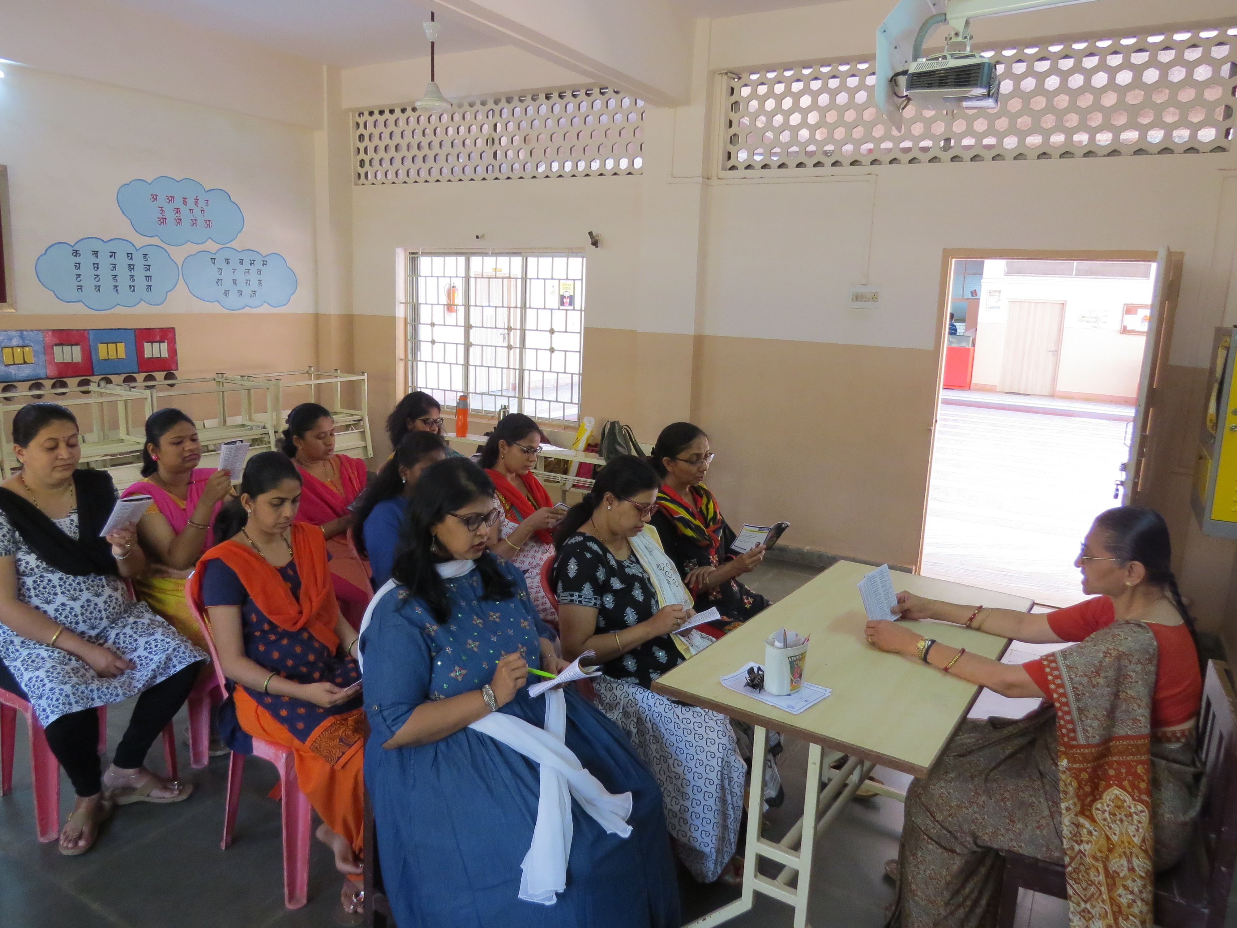 While the children enjoy their summer vacations, teachers of Amrita Vidyalayam have been keeping themselves fit by participating in daily yoga sessions conducted personally by Brni. Rekha and the school’s Yoga Instructor Ms. Suja. Teachers look forward to this 1 hour session daily which ends with Pranayam and meditation. Pre primary teachers have been learning Chapter 18 of the Bhagwad Gita under the guidance of Ms. Thangamani of Chinmaya Mission. Teachers participated in the Gita Chanting Competition conducted by Chinmaya mission last year and 2 teachers won prizes.