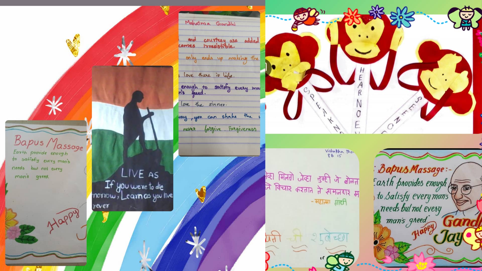 Students from classes VI – X of Amrita Vidyalayam, Juinagar could not restrict themselves from participating and delivering some interesting speeches and bhajans. Some colourful posters were painted to mark his birthday.