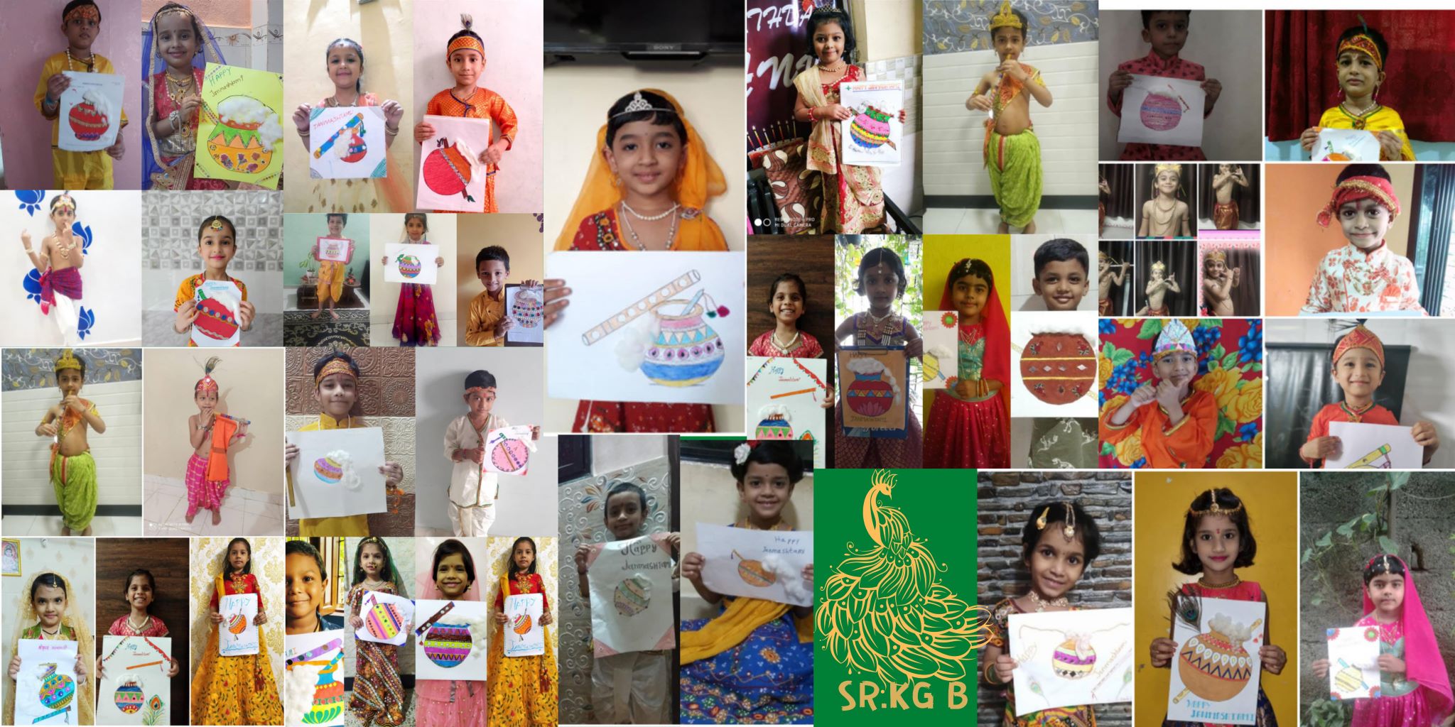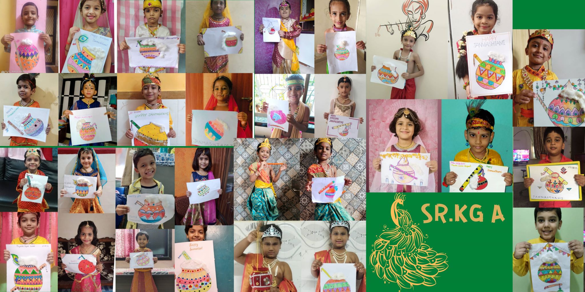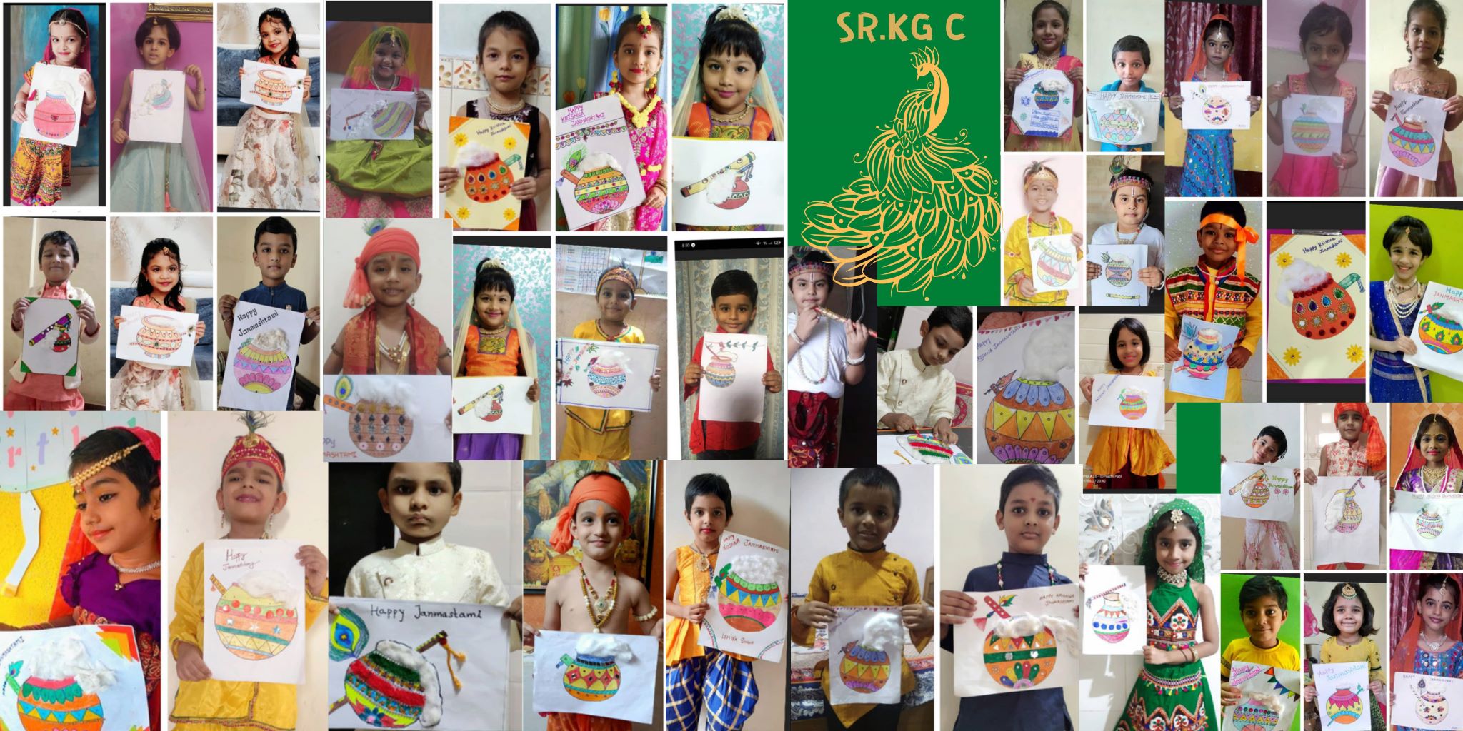 Nursery tots learnt to make Krishna’s MUKUT (Crown) with craft paper. They then decorated it and sang bhajans and recited a few shlokas from the Bhagawad Geeta. ‘DAHI HANDI’ was decorated by our Jr.Kg and Sr.Kg students after they knew the story of Lord Krishna and how important was ‘Makhan’ to him.