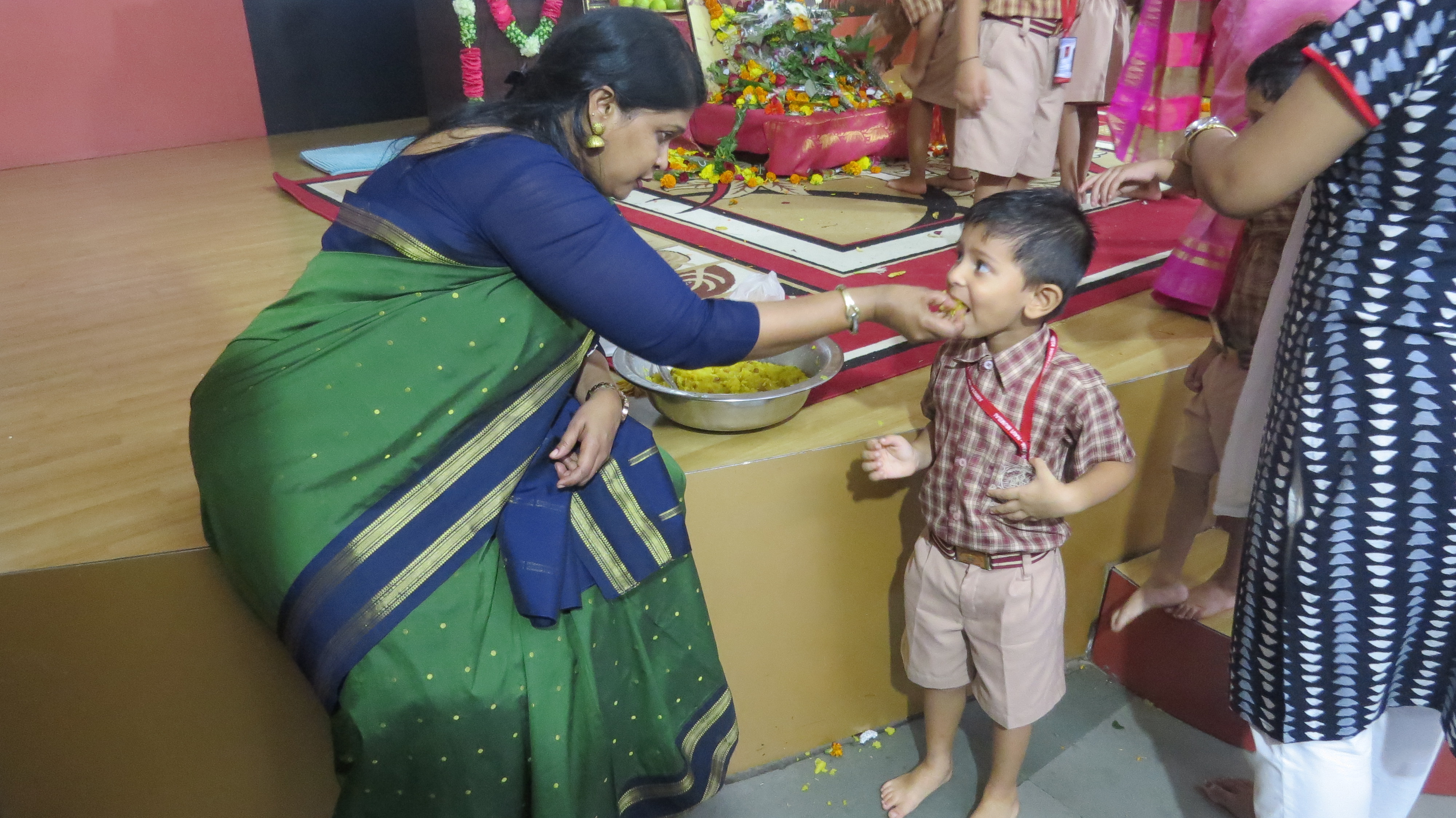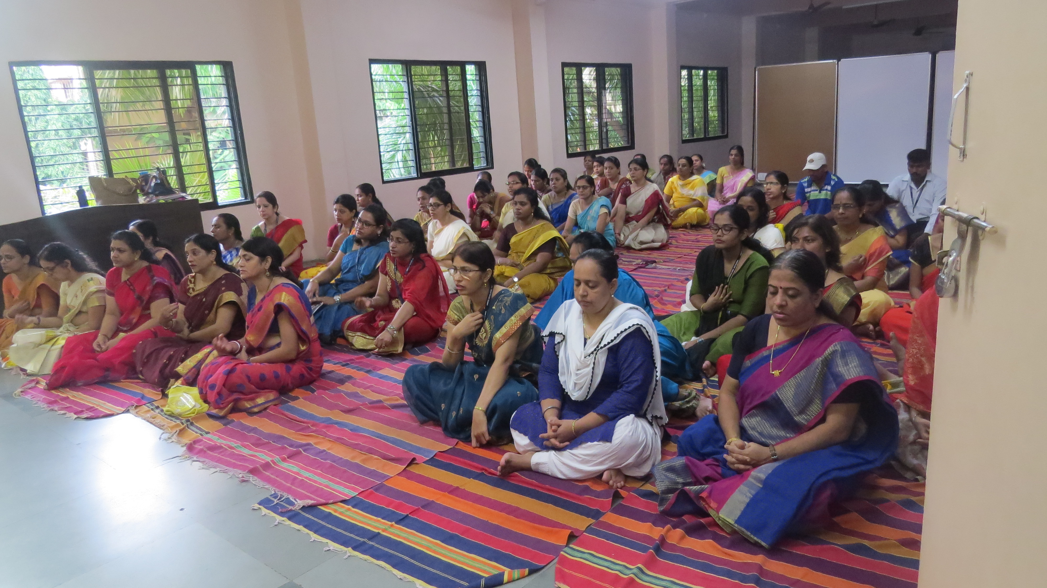 The Principal, in her talk emphasized the importance of learning the innumerable lessons that the life is teaching, which in itself is the greatest contribution to the “Guru”. She also stressed on the need of inner evolution, which slowly leads one to the awakening of the fullness in oneself. Through a short story of Shivaji Maharaj and Samarth Ramdas, she enlightened the teachers on the essence of guru Bhakti and surrender, which leads to the grace of guru to flow into oneself.