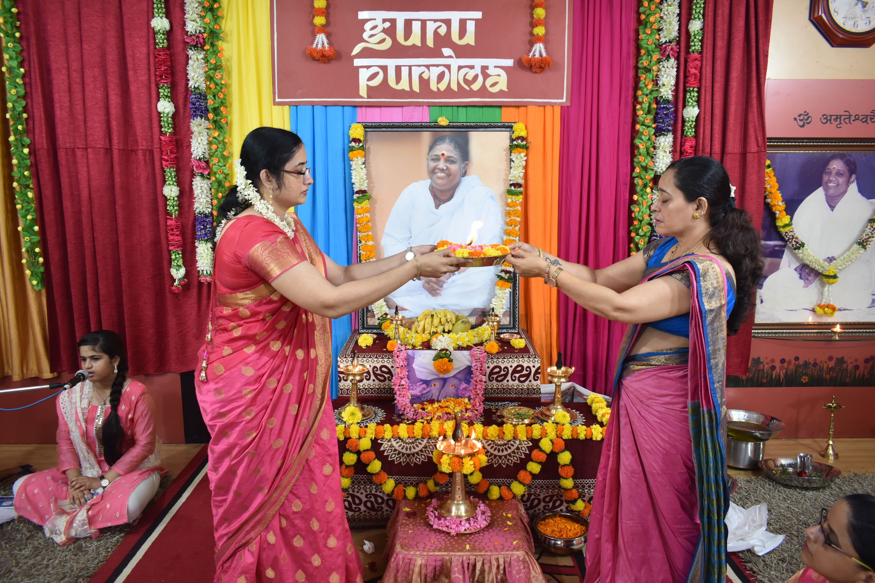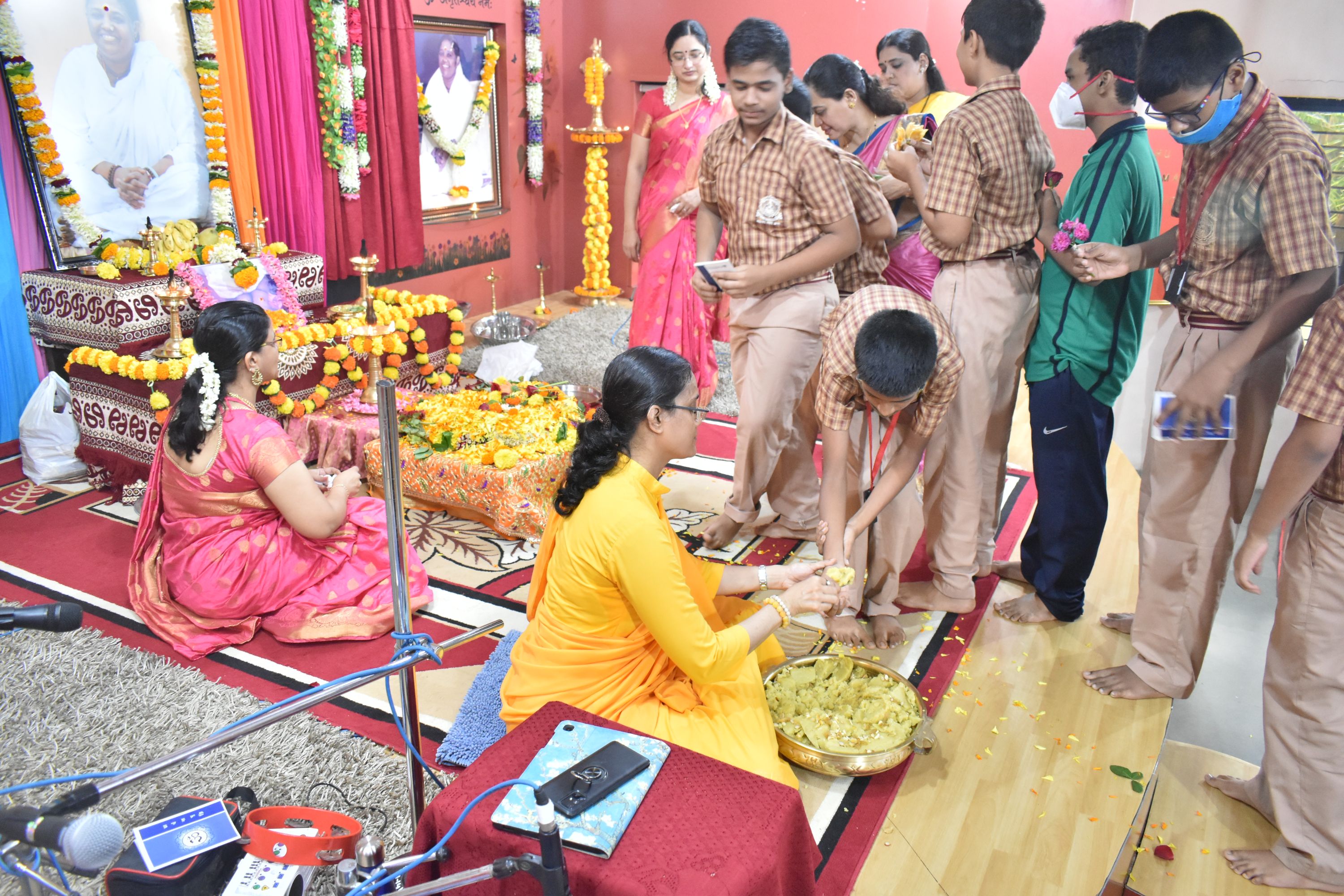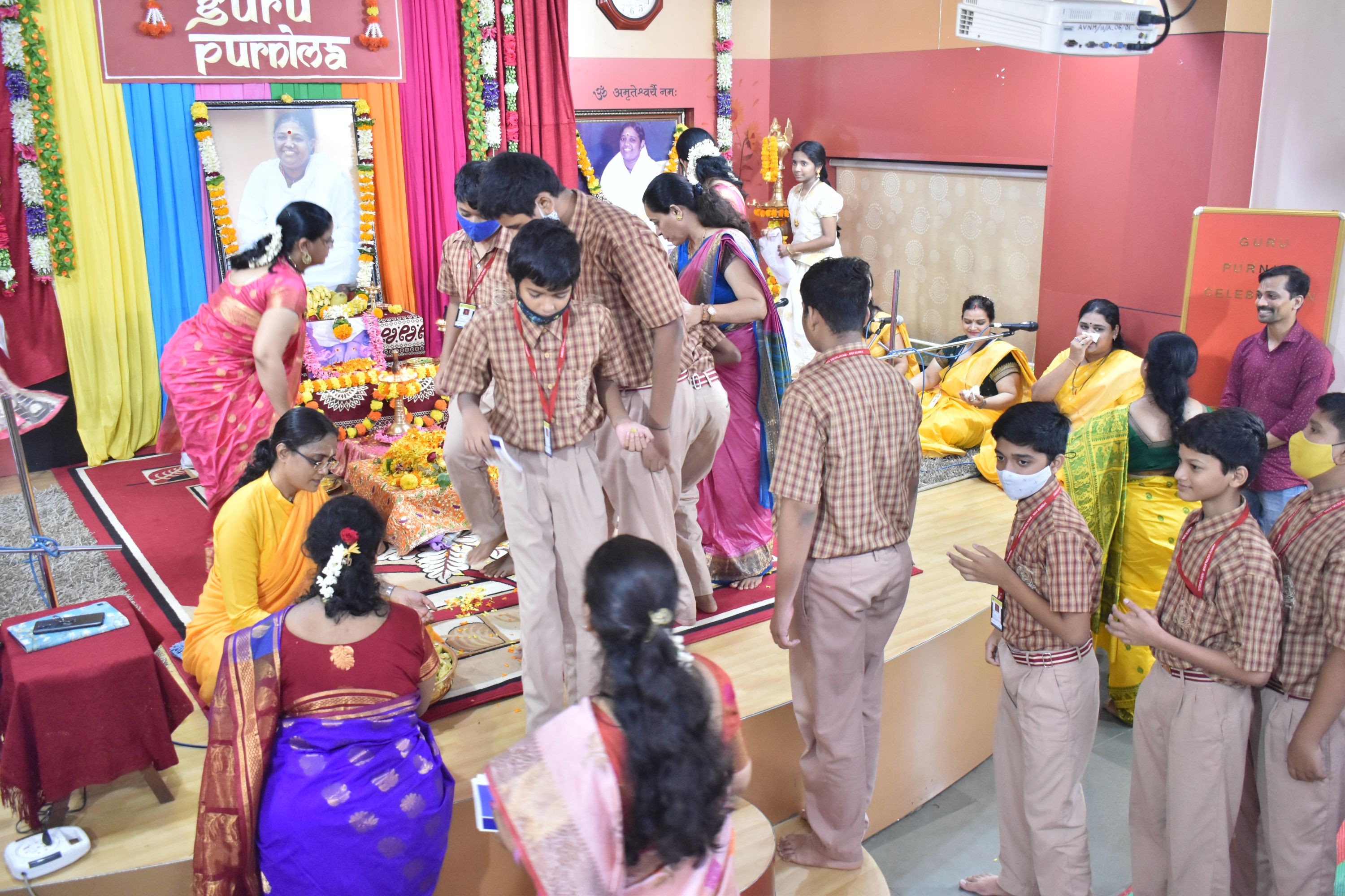 Guru Purnima celebration culminated in Aarti to show steady and profound love to Amma. All the students offered flowers at Amma’s feet and received prasad after the pooja.