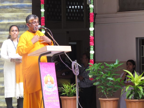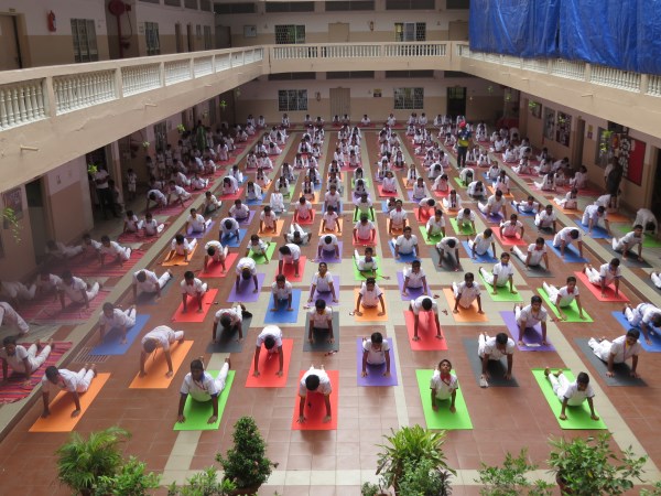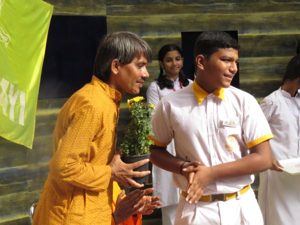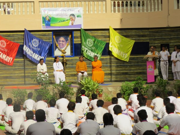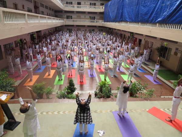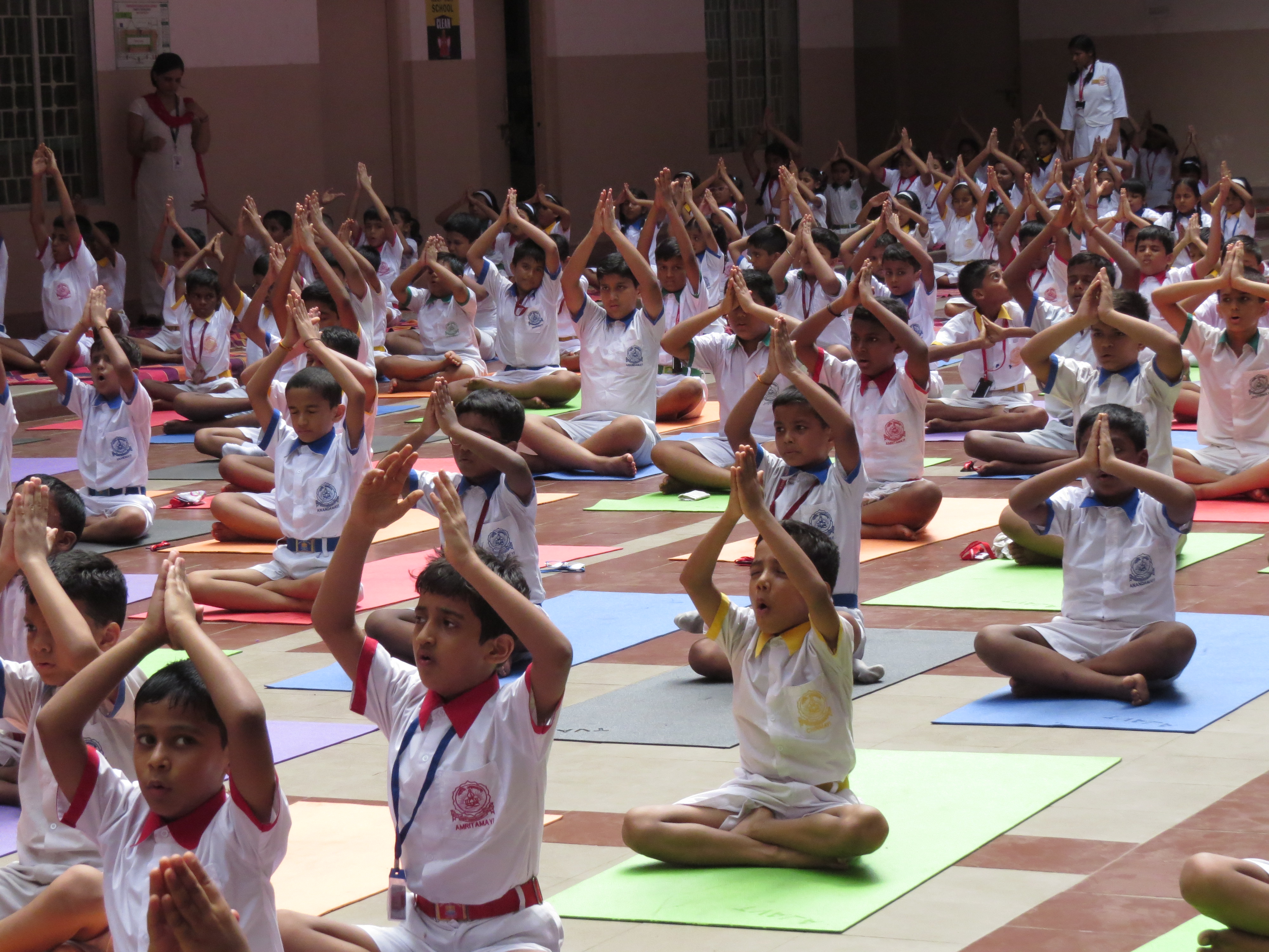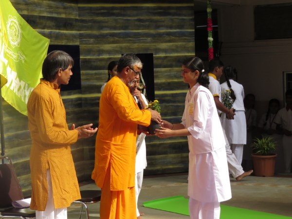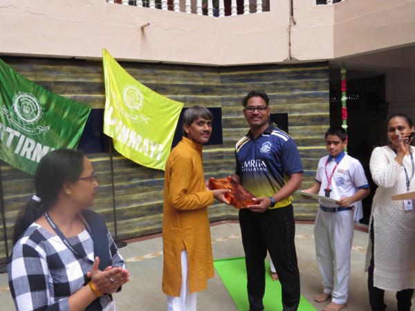 Shri Sahebdin Ramprasad Das, followed the IDY protocol and each class participated in a 25 minute session. The joy on the faces of Amrita Nursery students was a treat to watch as they enjoyed peforming simple asanas. Teachers also actively participated in the yoga asana demonstrations. Das ji was thankful to Amrita Vidyalayam for inviting him this year too and struck an instant connect with the students. He also made a point to mention the enthusiasm he sees in the students motivates him a lot.
