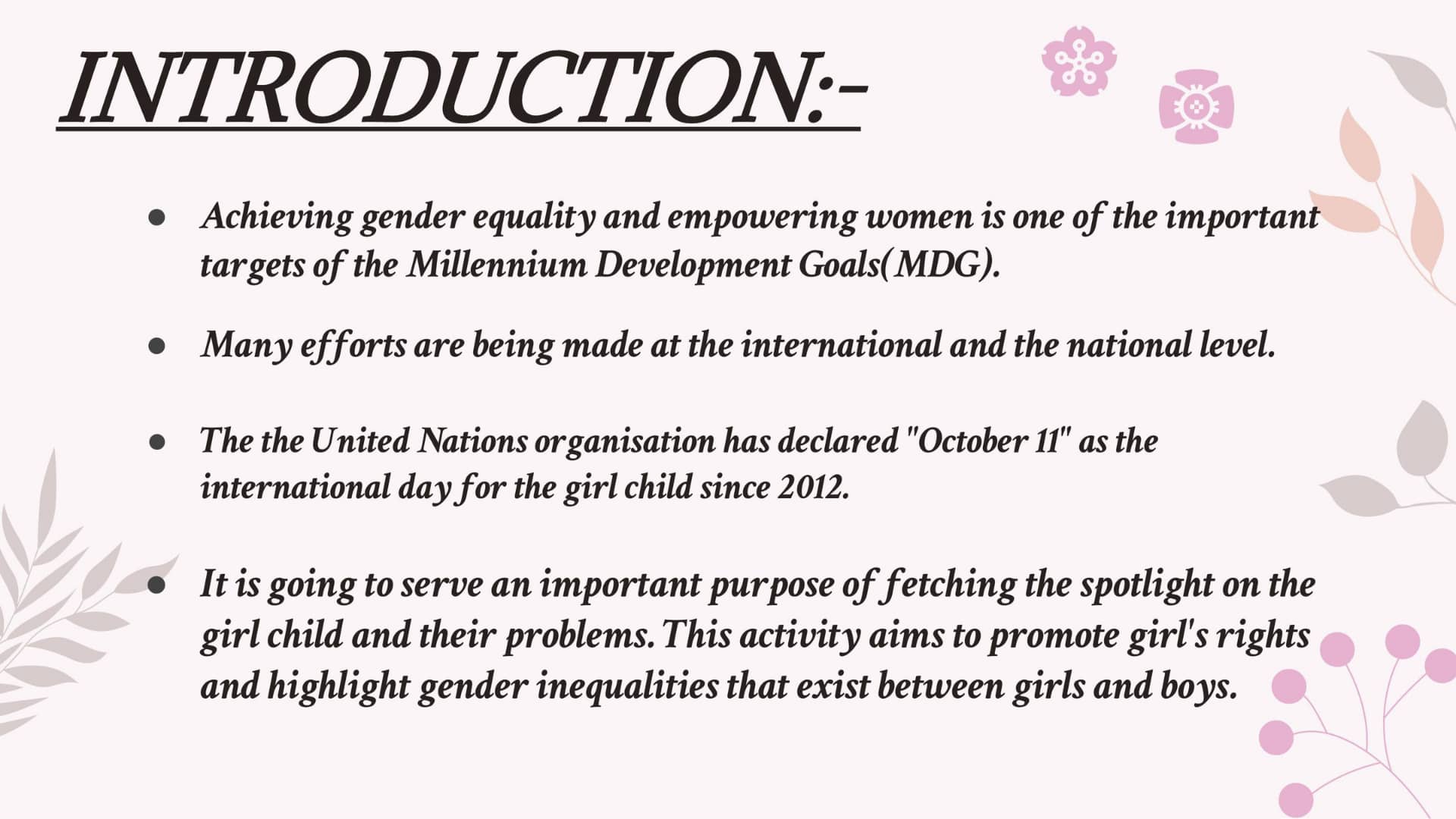 Let us all make the world a safe and a better place for girl child and empower them to fulfil their human rights.