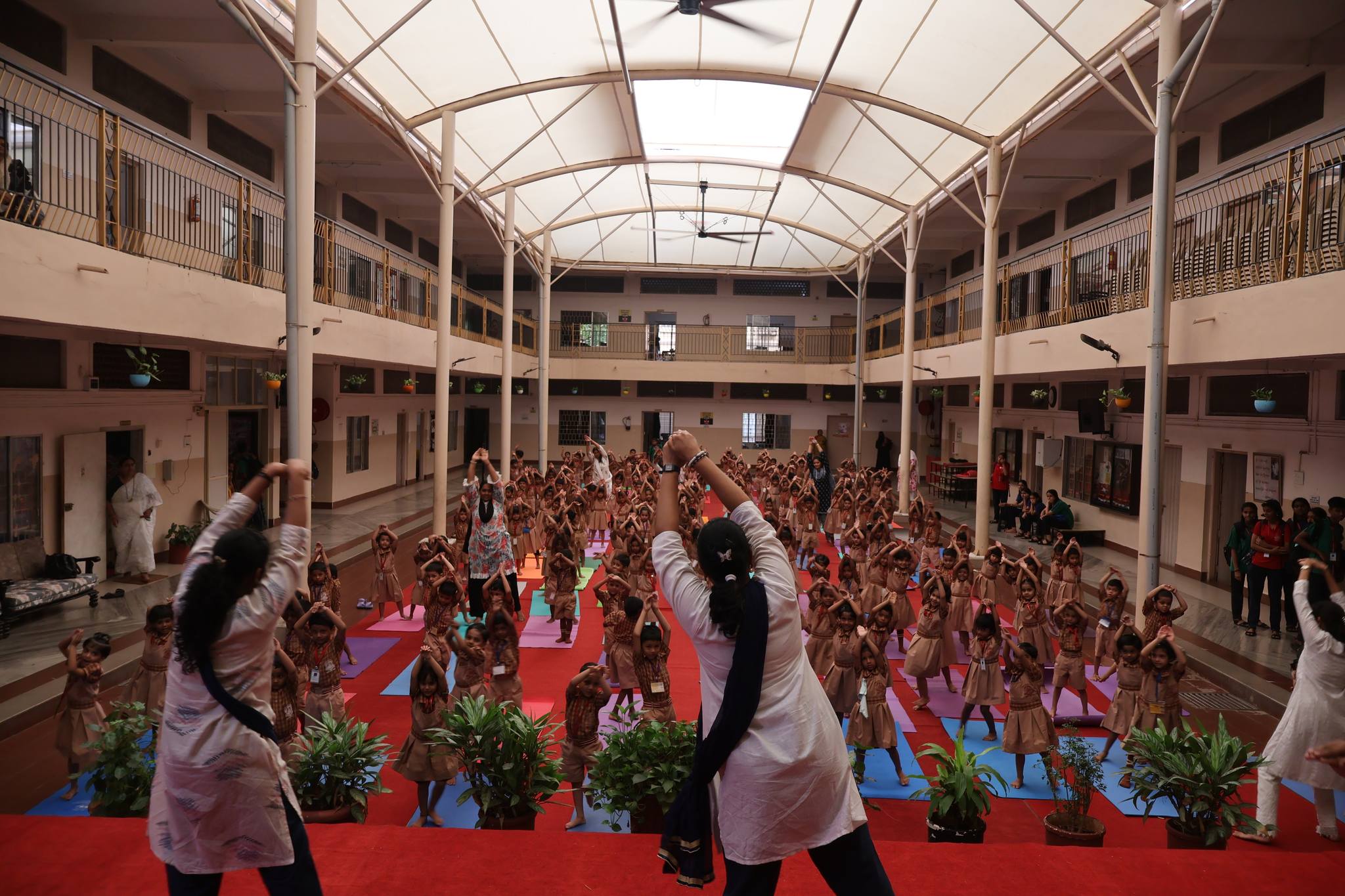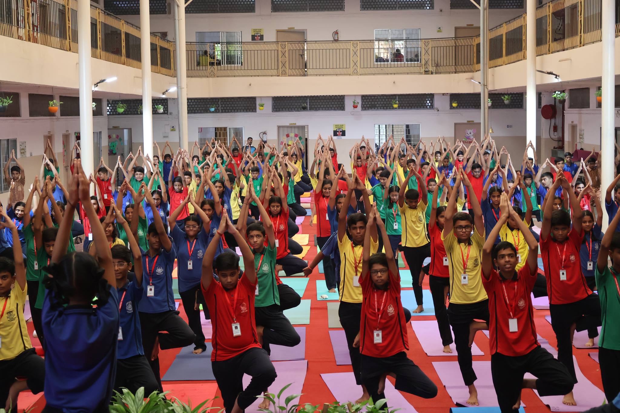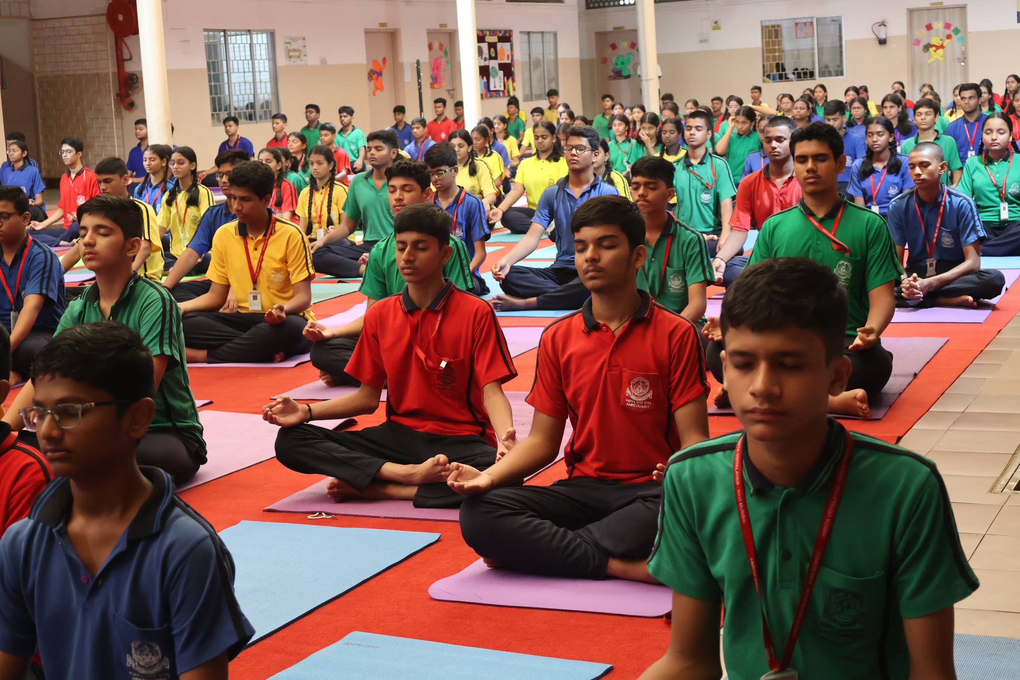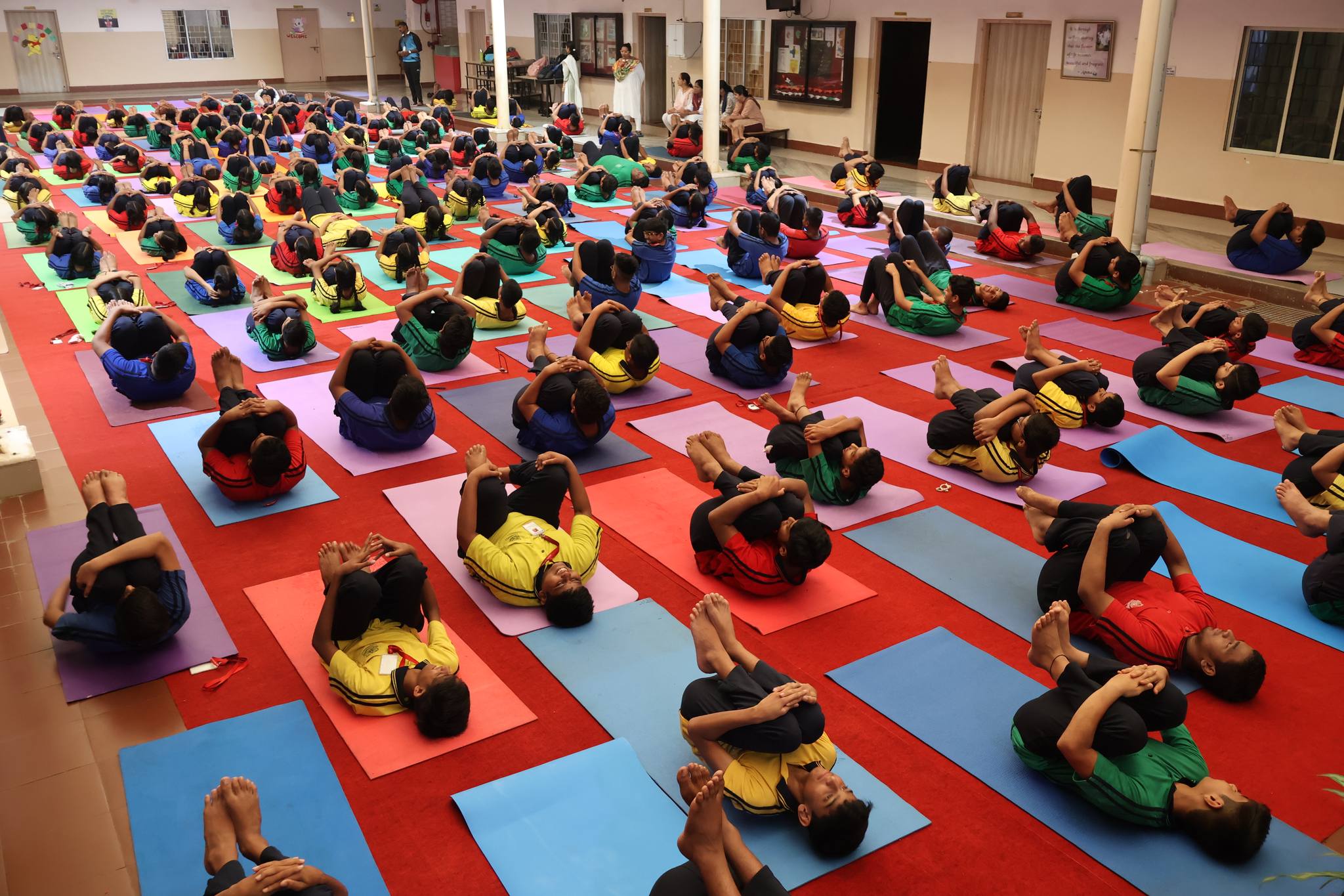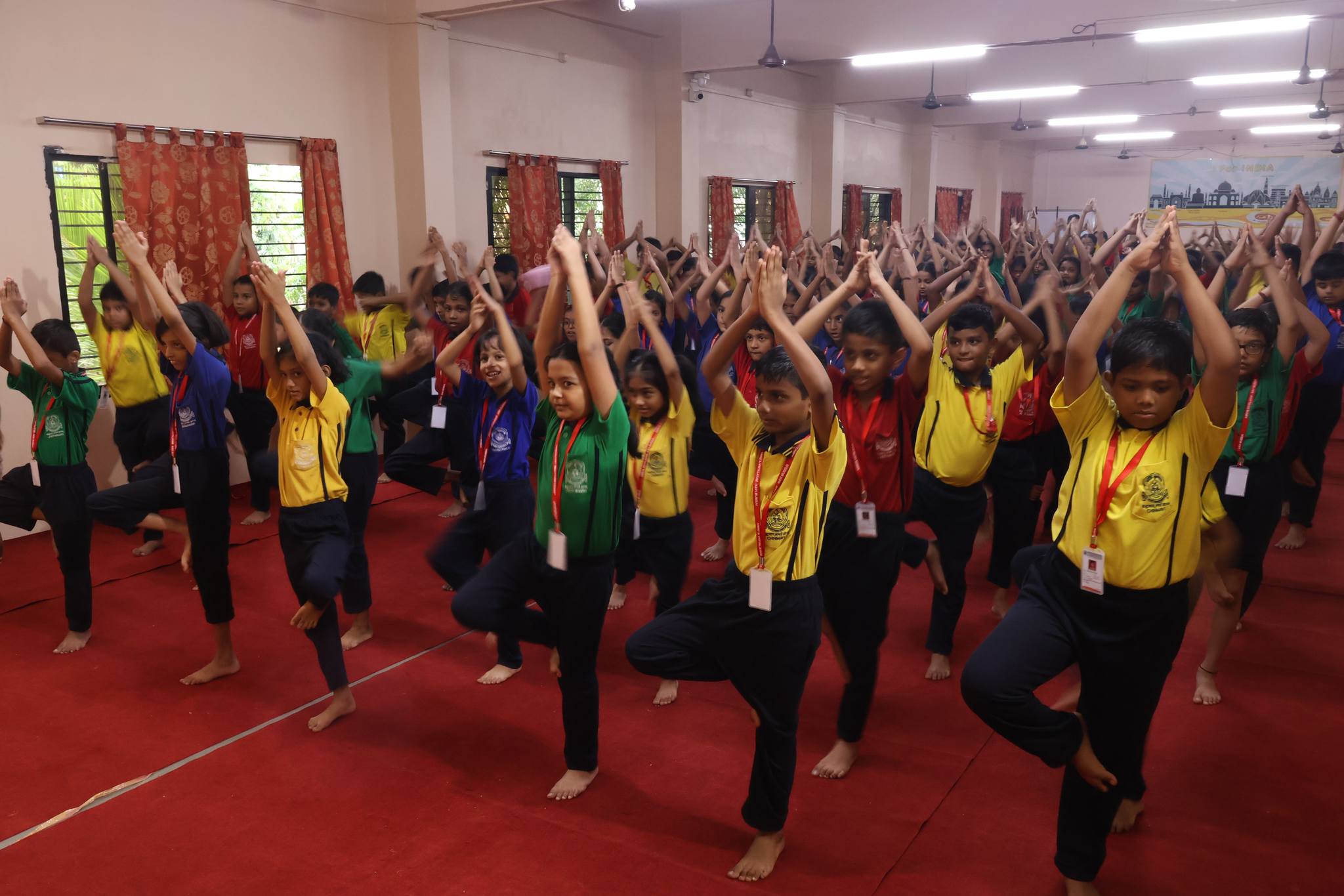 International Day of Yoga is celebrated every year on 21st June since its inception in the year 2015. Yoga itself is a very old practice that is followed in India since time immemorial. Yoga is an invaluable gift of India’s ancient tradition. Yoga’s aim is not only to heal body but to purify all three: Mind, body and soul. As a whole Amrita Vidylayam practiced common IDY protocol on 21st June from 7.30 a.m. onwards led by administrator Brni. Sharanyamrita Chaitanyaji. There was also an interesting session on practicing Swara Yoga, by Swara Yoga expert Dr Trupti Tanawade-Digge, Doctor by profession and practicing dentistry in Navi Mumbai for the last 25 years. She is an ardent devotee of Mata Amritanandamayi Devi. She is also the disciple of Swami Charanashritji, one of the few masters preserving and teaching the sacred science of Swara Yoga. Dr Trupti explained the benefits of Swara yoga and how to use 2 sides of the brain to its optimum capacity through Swara Yoga. Administrator Brni. Sharanyamrita Chaitanyaji conducted the IDY yoga protocol session and talked about various benefits of yoga for students. The IDY protocol included warm up exercises, various sitting and standing asanas and breathing exercises during the session for the students in different batches. 1700 students of class 1 to 12 participated in the yoga session in different slots throughout the day. Teachers also participated enthusiastically in the session organized for them at the end of the day. Pre-primary students performed animal yoga and exhibited the flexibility of their body with different Yoga postures. Overall International Yoga Day was celebrated with great enthusiasm and spirit in the school campus.