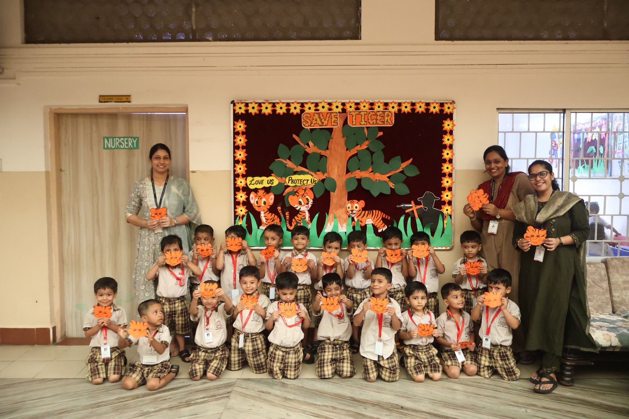 A documentary was shown to all the Amrita Nursery students and class activities were conducted. Nursery students enjoyed making the Tiger’s face mask while Jr,kg made the Tiger’s Bookmark. Sr,kg took home their self-curated Paper folding face mask. A student from Sr.Kg spoke few lines in the school assembly on saving Tigers.