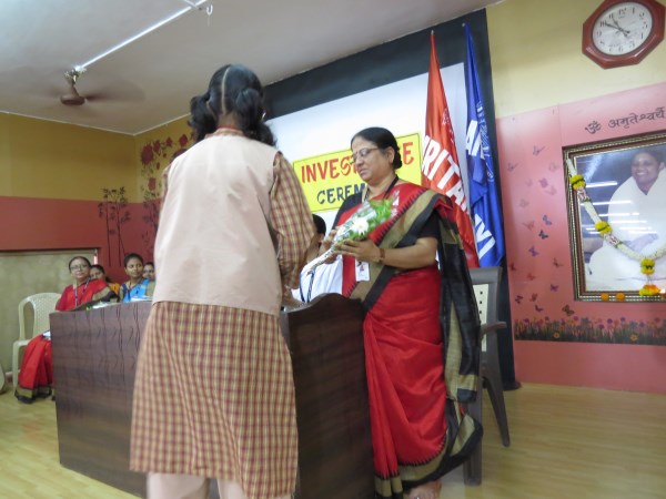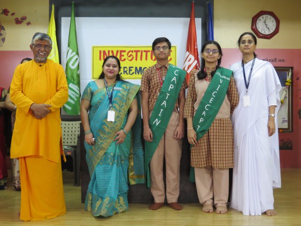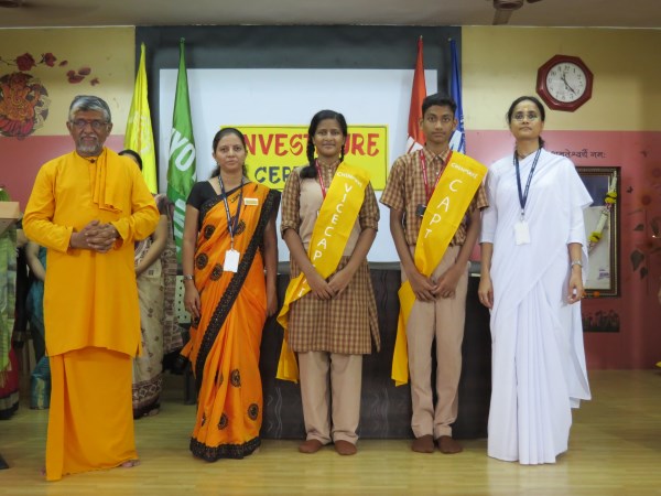 It was time to confer the prestigious titles and Swamiji and Principal Brni. Rekha adorned the elected representatives with sashes and badges. The House Mothers’ came up on stage along with the respective Captains and Vice Captains