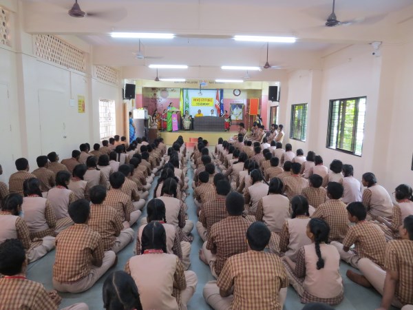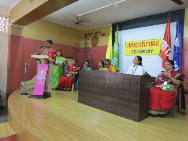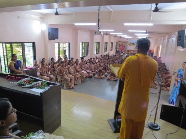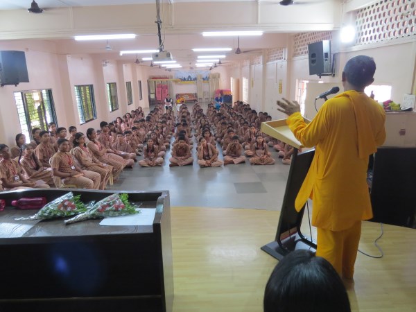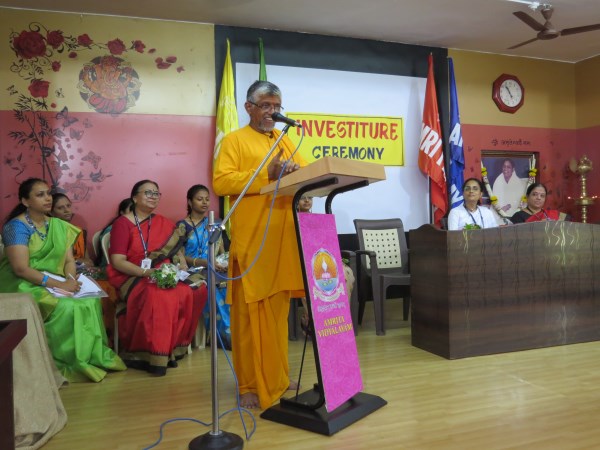 Swamiji addressed the students first and with the help of a short story explained the merits of the timeless virtue “simple living and high thinking”. Principal Brni. Rekha, in her address implored the leaders to work as a team and with the help of a meaningful story, drove home the point of how leaders should stay humble and not take undue advantage of the powers bestowed upon them She also told the students the extraordinary qualities she spotted in students that made them stand out above the rest.
