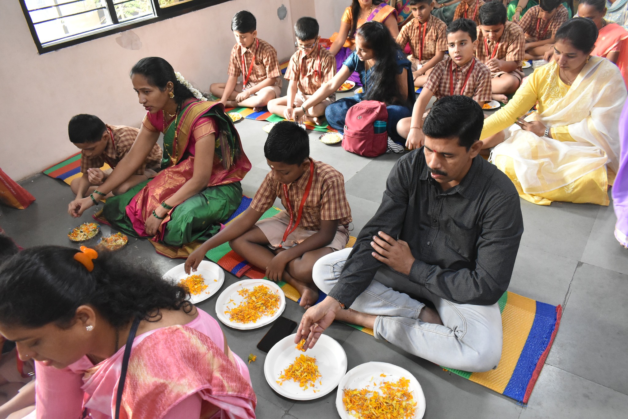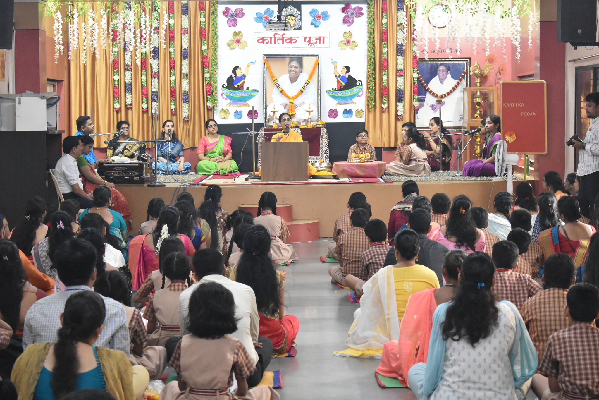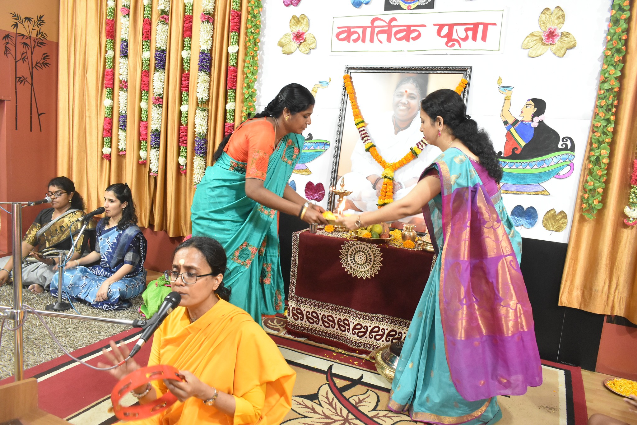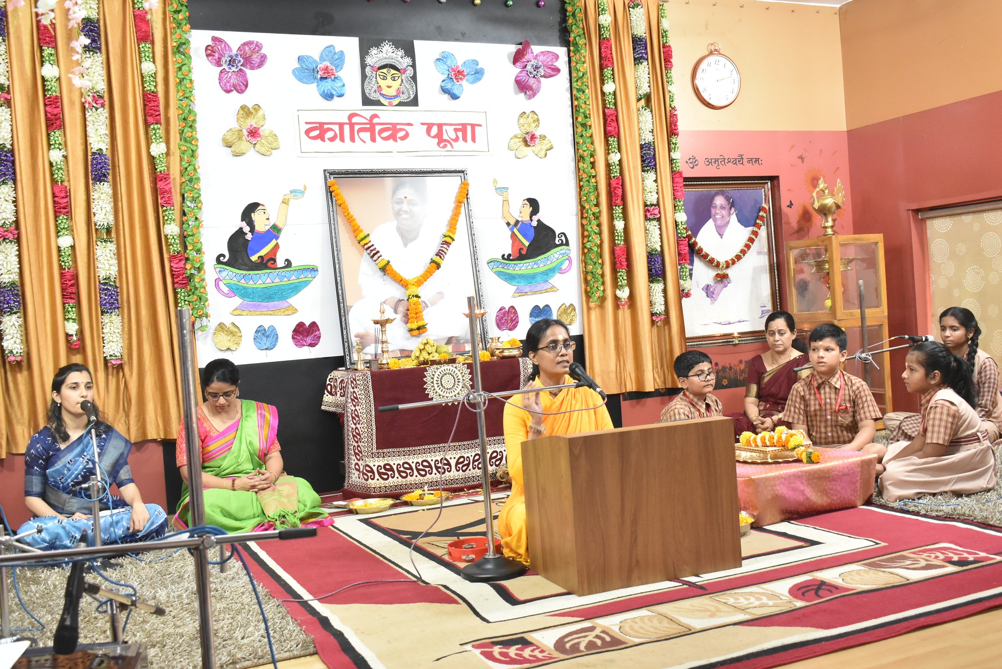 Kartika Puja is done every month at school to inculcate cultural values in children in which parents also participate with great enthusiasm. Kartika puja was performed on 26th October 2023 under the guidance of Brni. Sharanyamrita Chaitanyaji. The program was attended by the parents and students of Class 4 and had a wonderful opportunity of being a part of this auspicious puja along with the teachers. The event started with the opening prayers by Brni. Sharanyamrita Chaitanyaji followed by the chanting of Ganpati stotra and Durga suktam.