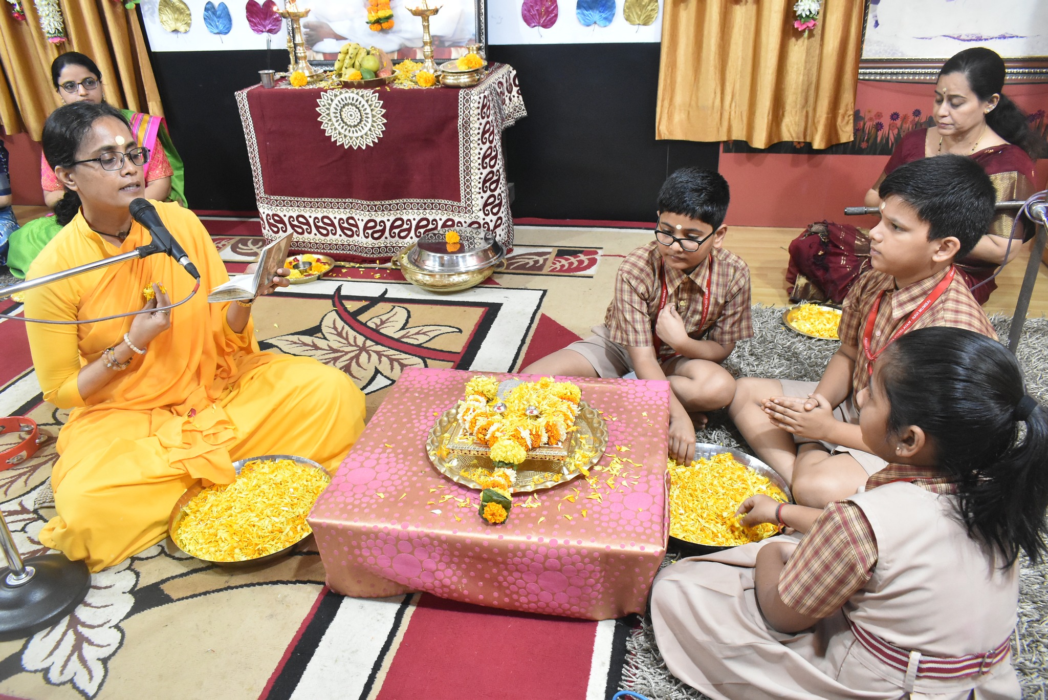 She also addressed the students and parents and spoke about the importance of following daily rituals and making the students aware about the importance & significance of celebrating different festivals. She told that “Spirituality begins where Science ends”.