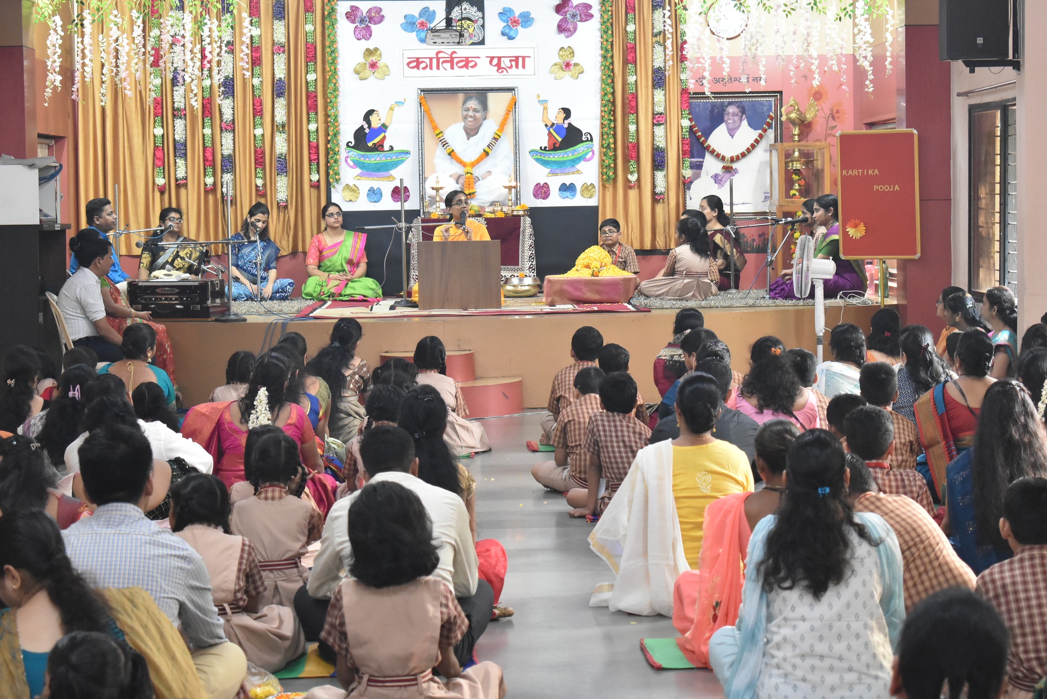 Parents and students whole heartedly performed the puja by offering flower petals at Amma’s holy lotus feet during Amma’s ashtottara. Eveyone sang bhajans and did meditation under the guidance of Brni. Sharanyamrita Chaitanyaji.