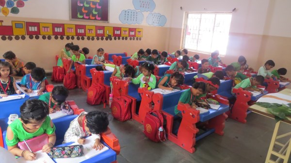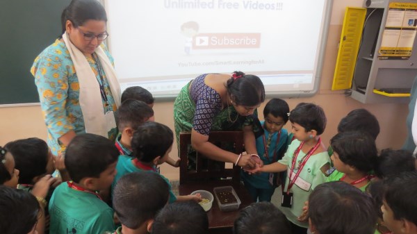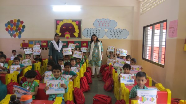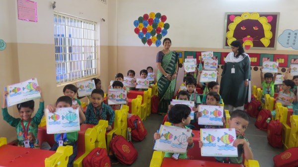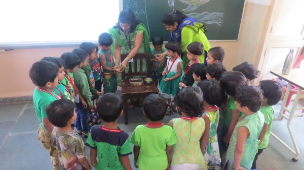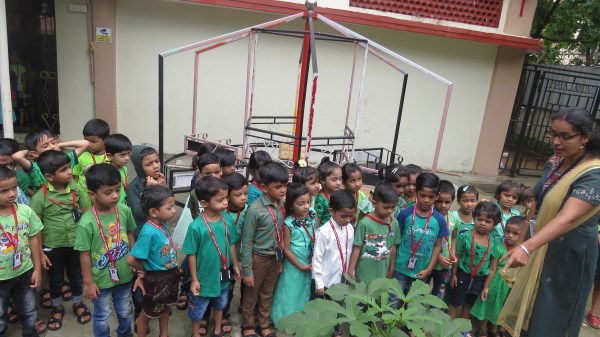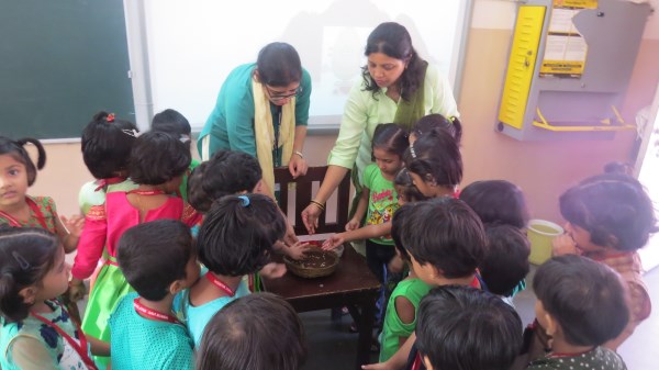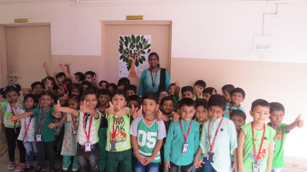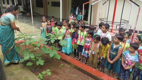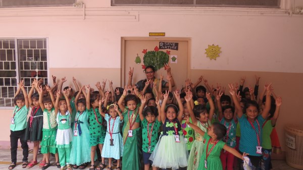 Dressed in green, the tiny tots of Amrita Nursery were all excited to take a nature walk in the school’s plant nursery and learnt about different vegetables like Brinjal, Ladies Finger and others that are tenderly taken care of in the school premises. “Save trees, Save Environment”, was the theme for the celebrations and teachers took this opportunity to demonstrate to the students, the concepts of seed germination also. It was then time for the students to engage in “Leaf Art “activity. The look on the face of the students was worth seeing when they saw their creation bloom into a tree that adorned the doors of their classes.