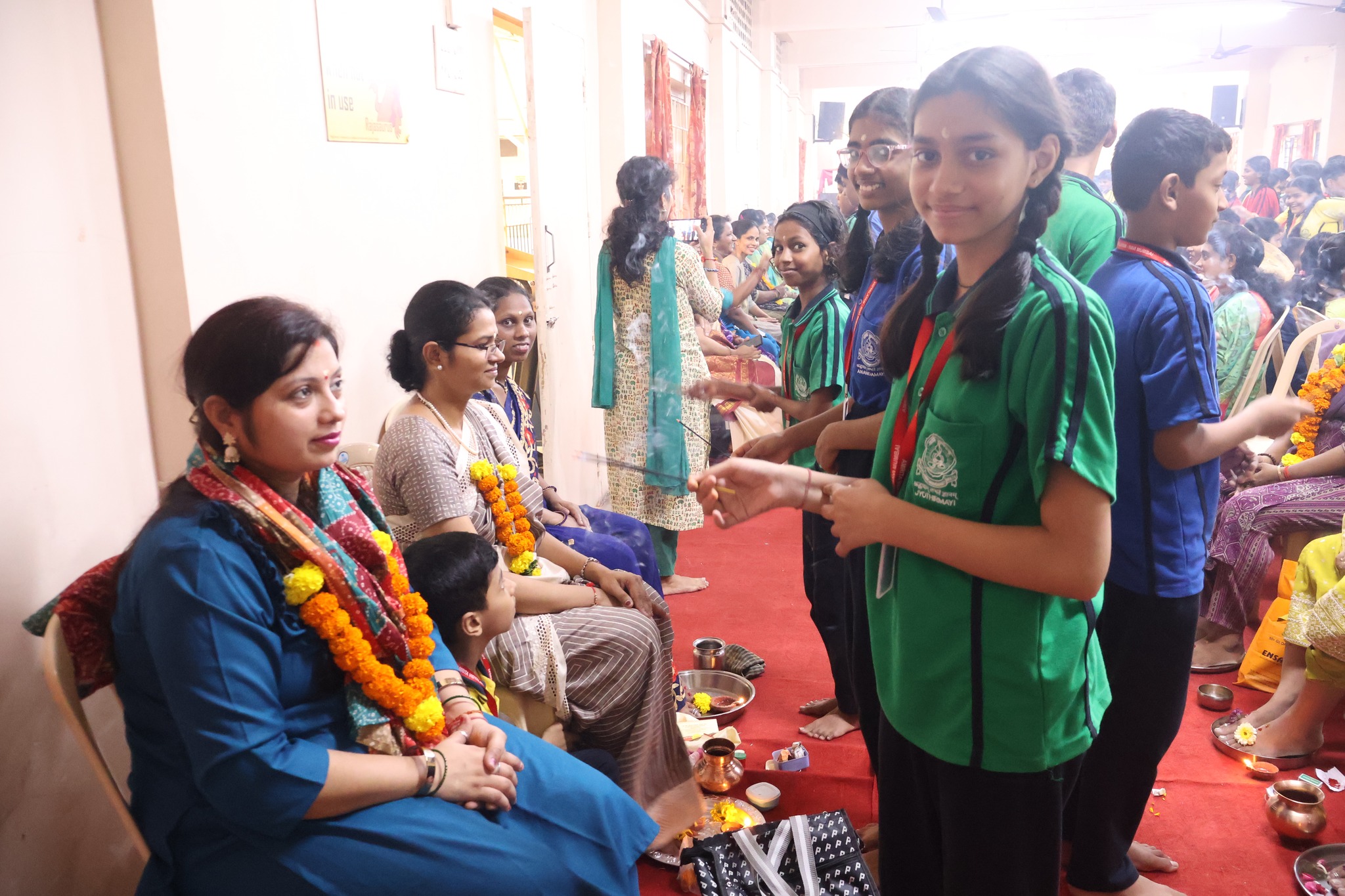 On 23rd August 2024 , a heartwarming Matru Puja ceremony was organized, especially for the students of Class 7. The event took place in the afternoon, with all the mothers arriving at 12:45 pm. The ceremony began with a prayer, invoking blessings and creating a peaceful atmosphere.