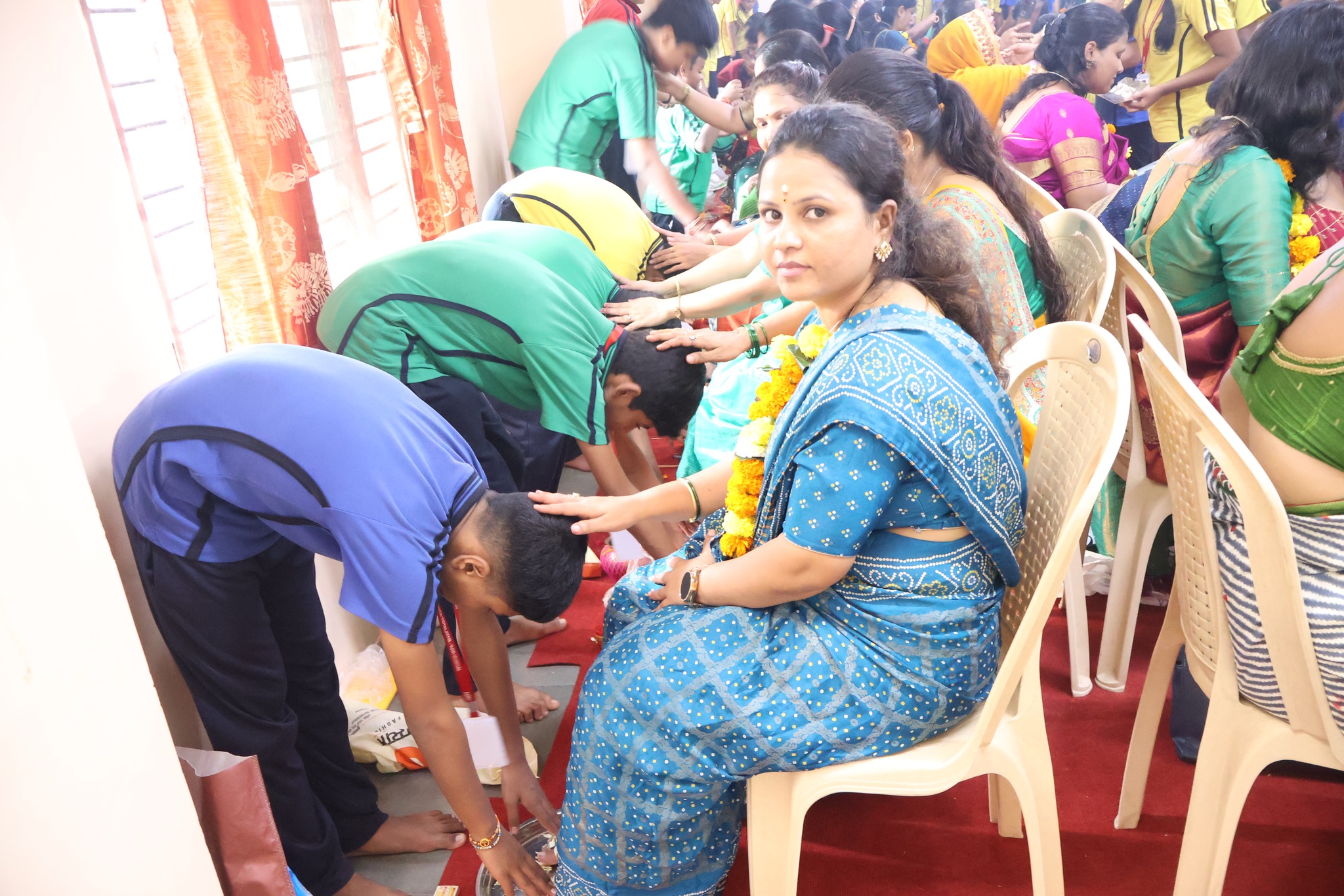 The key moment of the event was the ‘Padha Puja,’ where students honored their mothers by washing their feet, expressing deep respect and gratitude. This ritual allowed students to understand the invaluable role their mothers play in their lives. An emotional highlight was when children embraced their mothers, symbolizing love and respect.