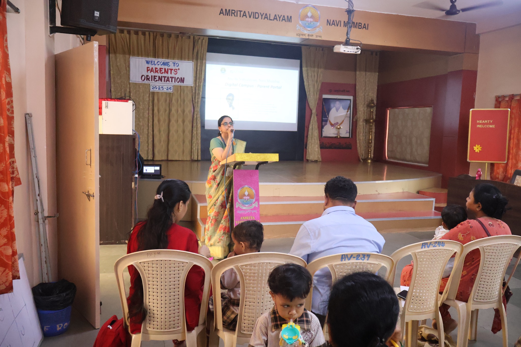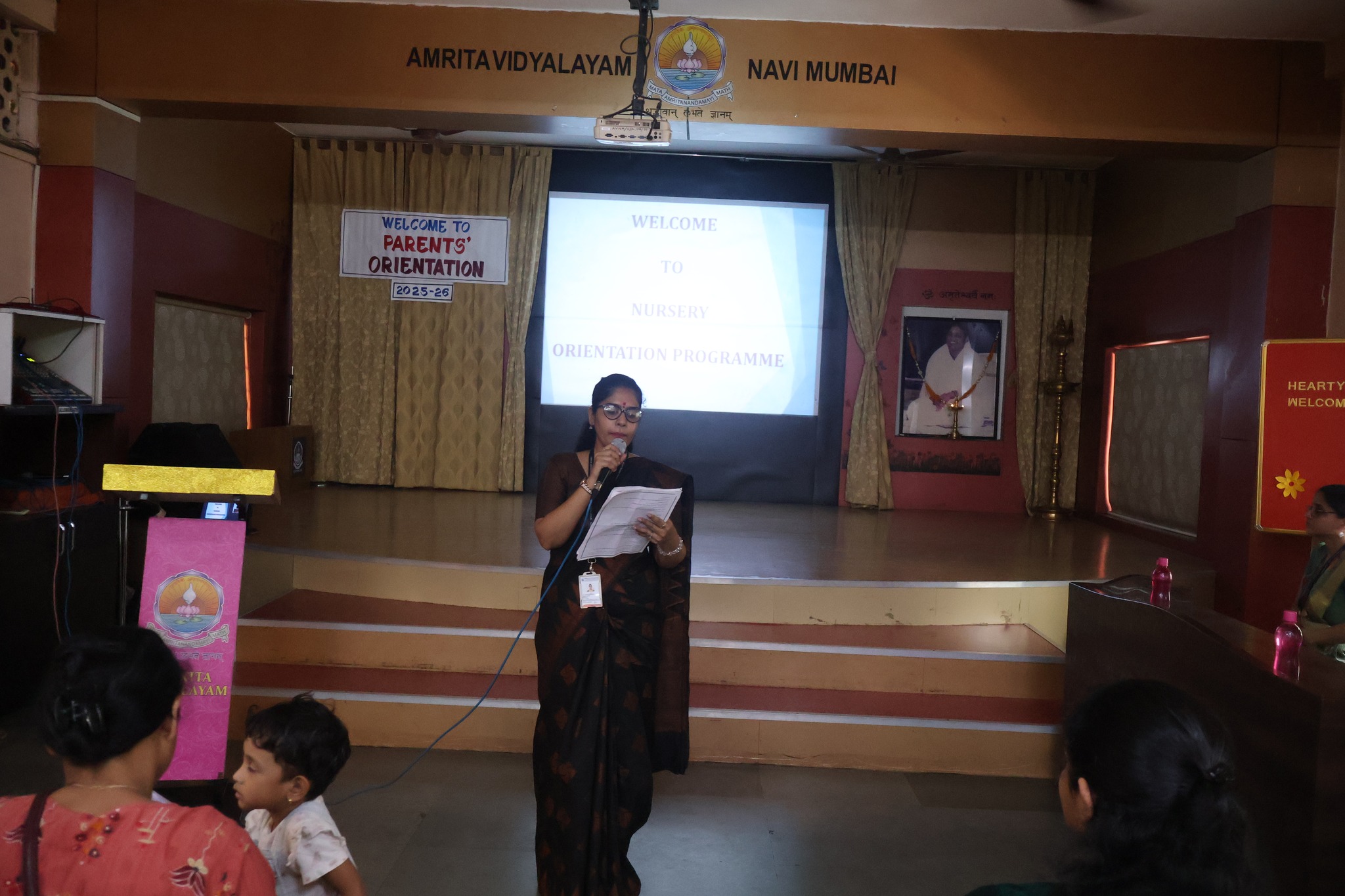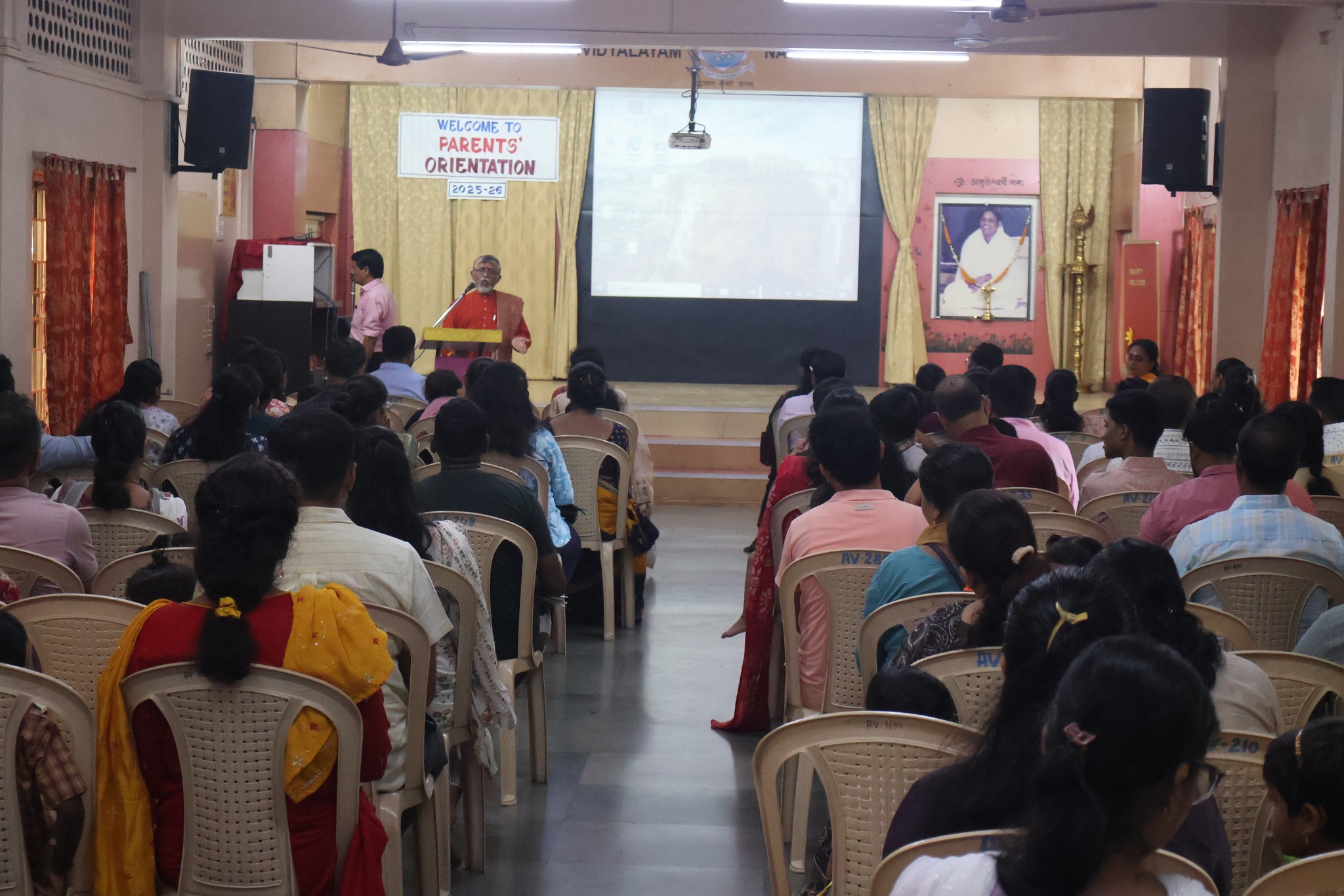 Nursery Reopening Orientation Programme was held at Amrita Vidyalayam on 9th June 2025. Parents and students were warmly welcomed for the Nursery Orientation Programme . The session began with the auspicious lighting of the lamp, followed by a soulful prayer. Swamiji and Principal Madam Bri. Sharanyamrita Chaitanya were cordially welcomed. Swamiji addressed the gathering with inspiring words, comparing young minds to wet cement – ready to be shaped with care and values. Through a heartfelt story, he emphasized the importance of instilling strong values in children from an early age. Principal Bri. Sharanyamrita Chaitanyaji spoke about the mutual efforts required by both parents and school to nurture students effectively. She introduced the concept of Pancha Sadhana as a foundation for holistic growth. Highlighting the importance of mindful technology use, she urged parents to avoid giving mobile phones to children and instead, spend quality time with them. She stressed that the first ten years of a child’s life leave a lasting impact and offered valuable tips on positive parenting, acceptance, and traditional practices like lighting a lamp and praying together at home. The session continued with a presentation by the HM of the Primary Section Ms. Monika on the DC Parent App, explaining its features and usage. Class teacher Mrs. Vidya then shared important class rules and guidelines with the parents. The programme concluded with the chanting of the Shanti Mantra, leaving everyone with a sense of peace and purpose.