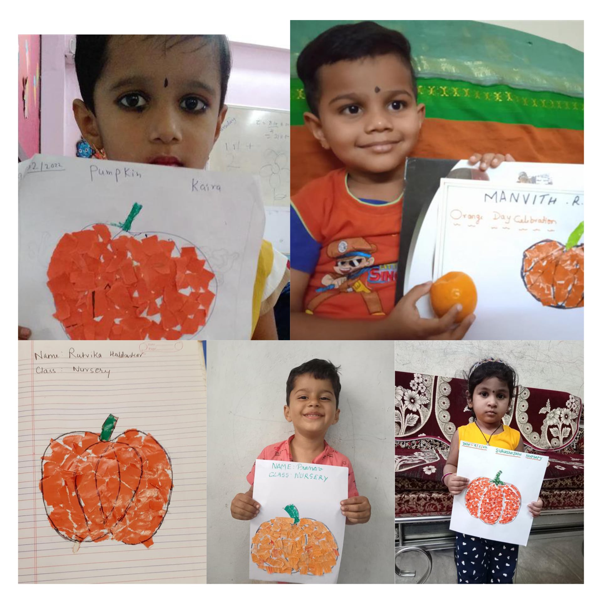 Activity taken :- Paper Tearing (Pumpkin)
