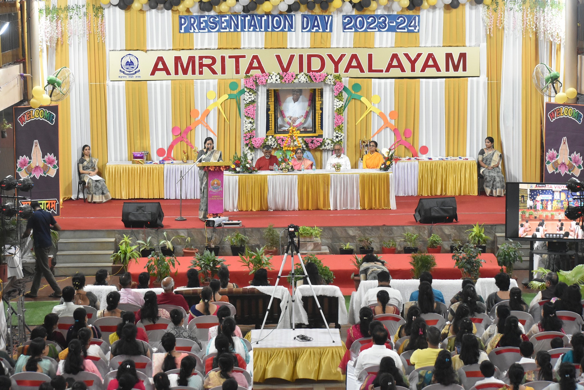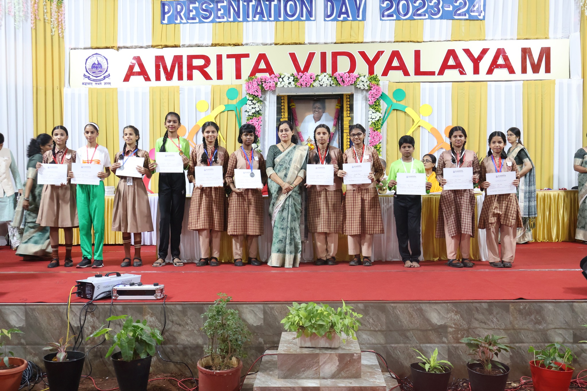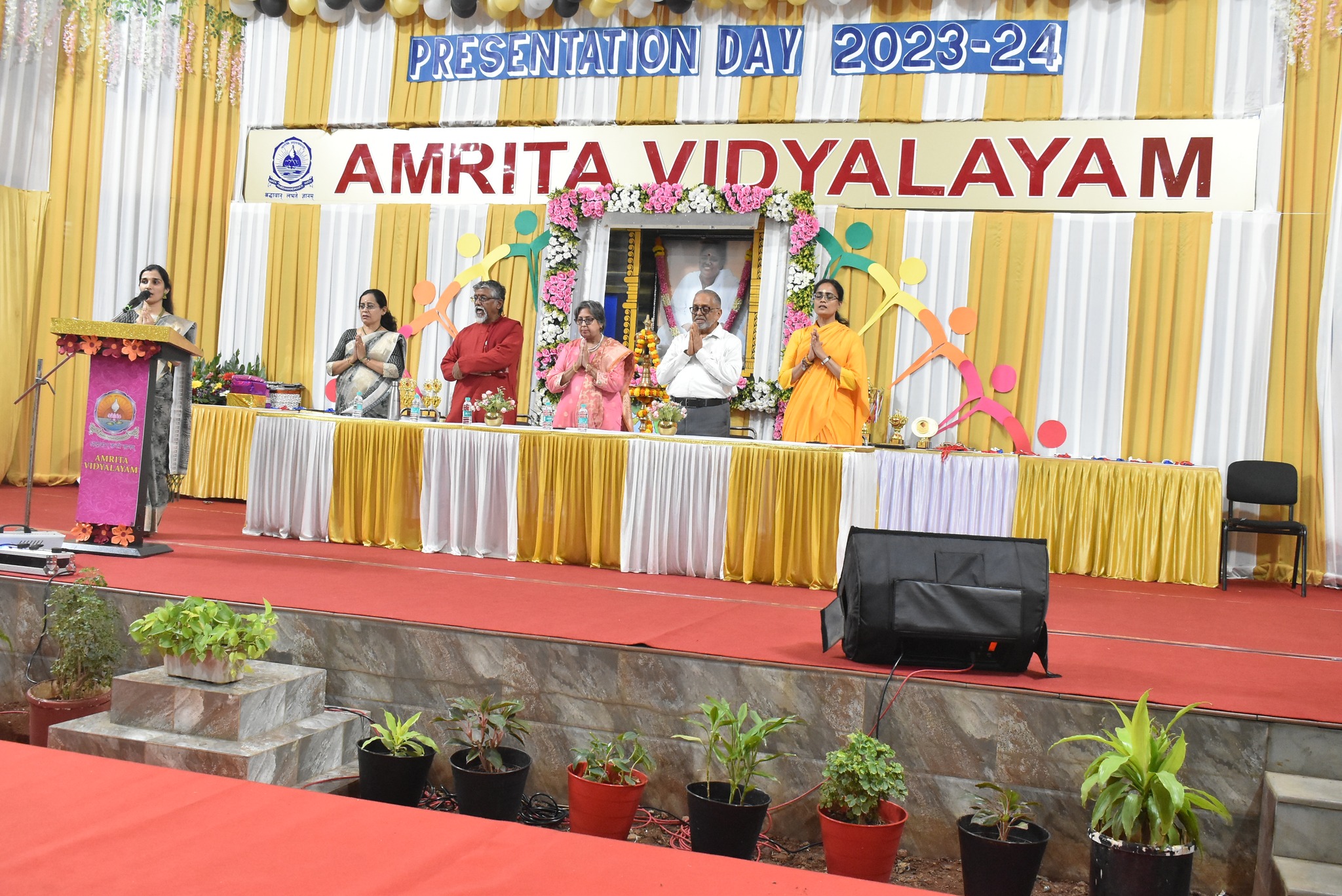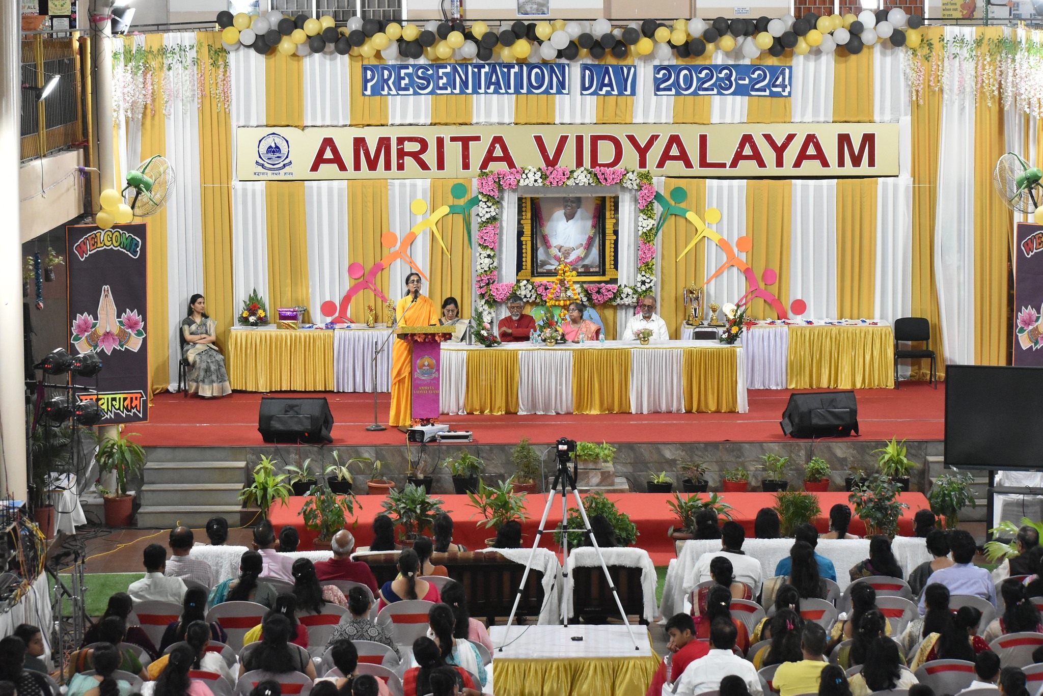 The Annual Presentation Day celebration was celebrated at Amrita Vidyalayam on the 6th of January 2024. A renowned figure in education, Dr.Rashmi Sharma was the Chief Guest. Mr. K N Pillai, an esteemed member of the Management Committee and Swami Avyayamritananda Puri, Incharge of Mata Amritanandmayi Math, Nerul consented to be the Guest of Honour. The presence of our School Administrator Brni. Sharanyamrita Chaitanyaji enhanced the significance of the day.