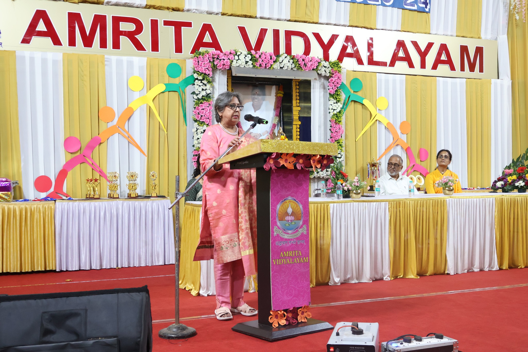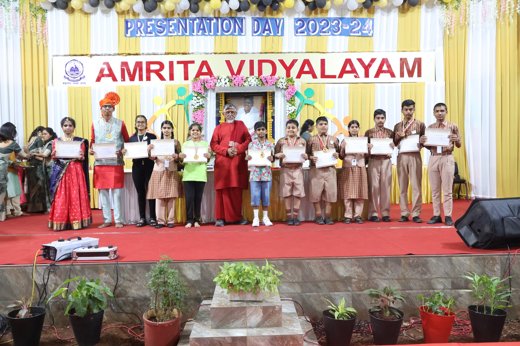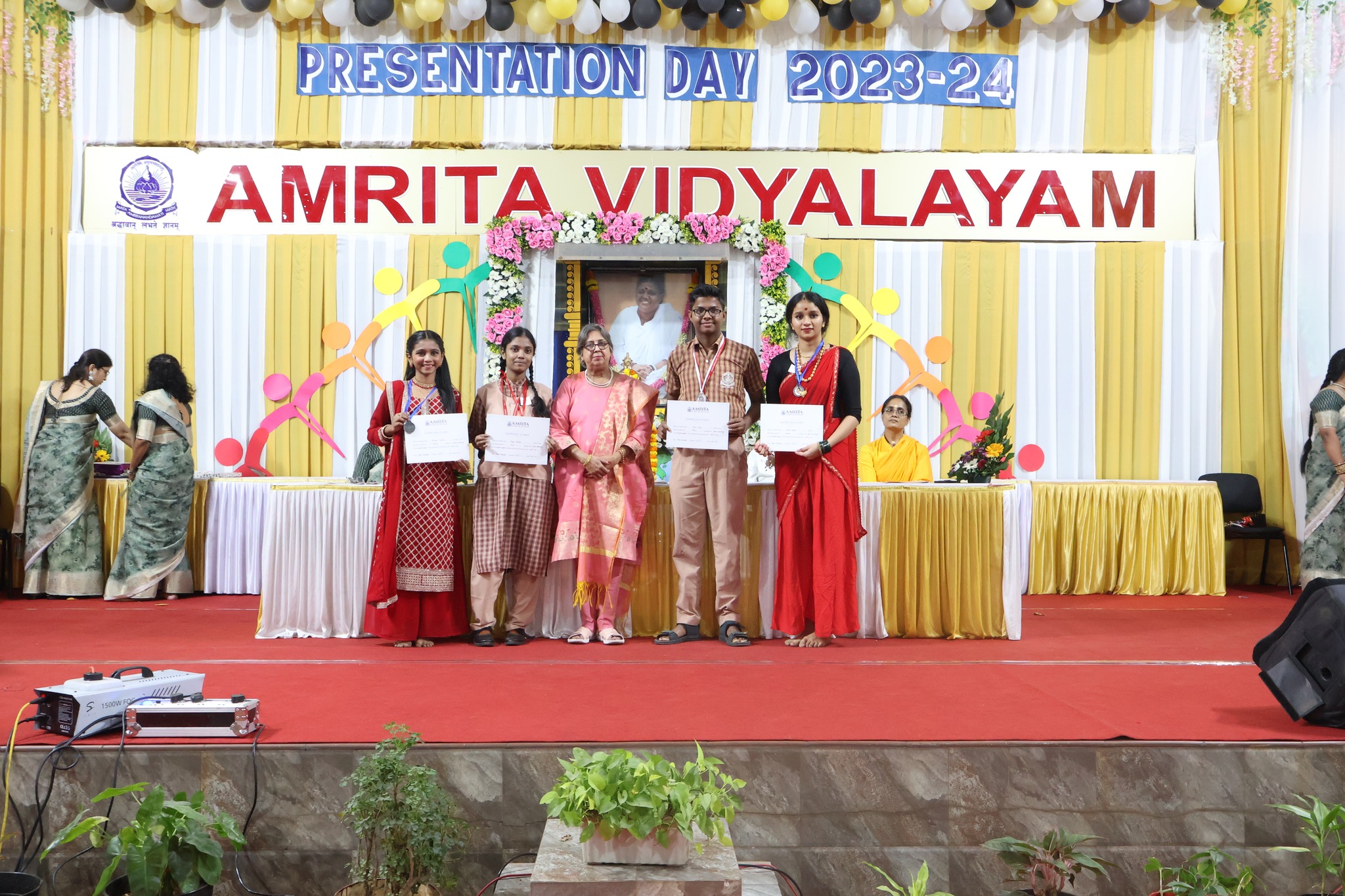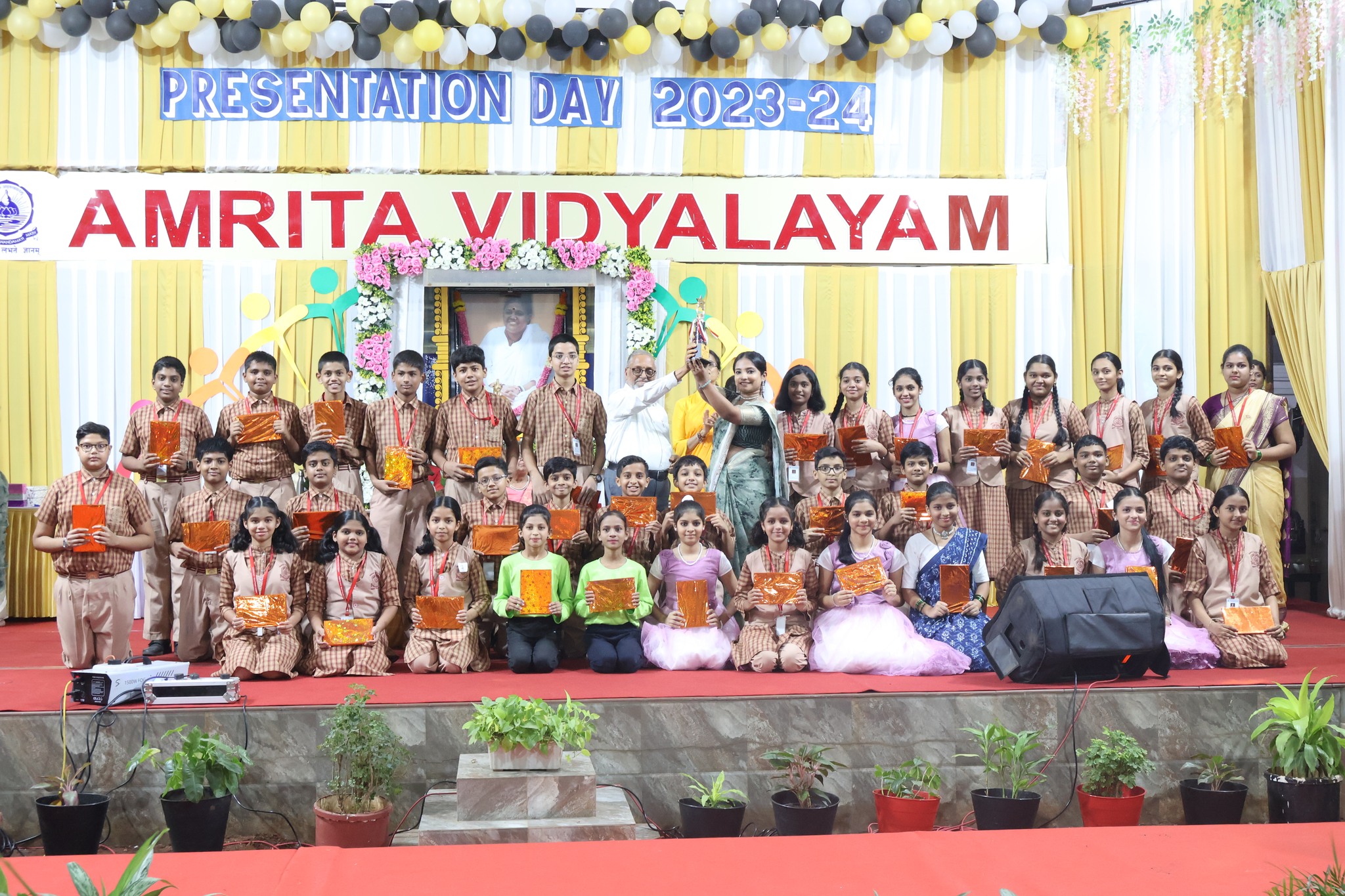 The Annual Presentation Day celebration was celebrated at Amrita Vidyalayam on the 6th of January 2024. A renowned figure in education, Dr.Rashmi Sharma was the Chief Guest. Mr. K N Pillai, an esteemed member of the Management Committee and Swami Avyayamritananda Puri, Incharge of Mata Amritanandmayi Math, Nerul consented to be the Guest of Honour. The presence of our School Administrator Brni. Sharanyamrita Chaitanyaji enhanced the significance of the day.