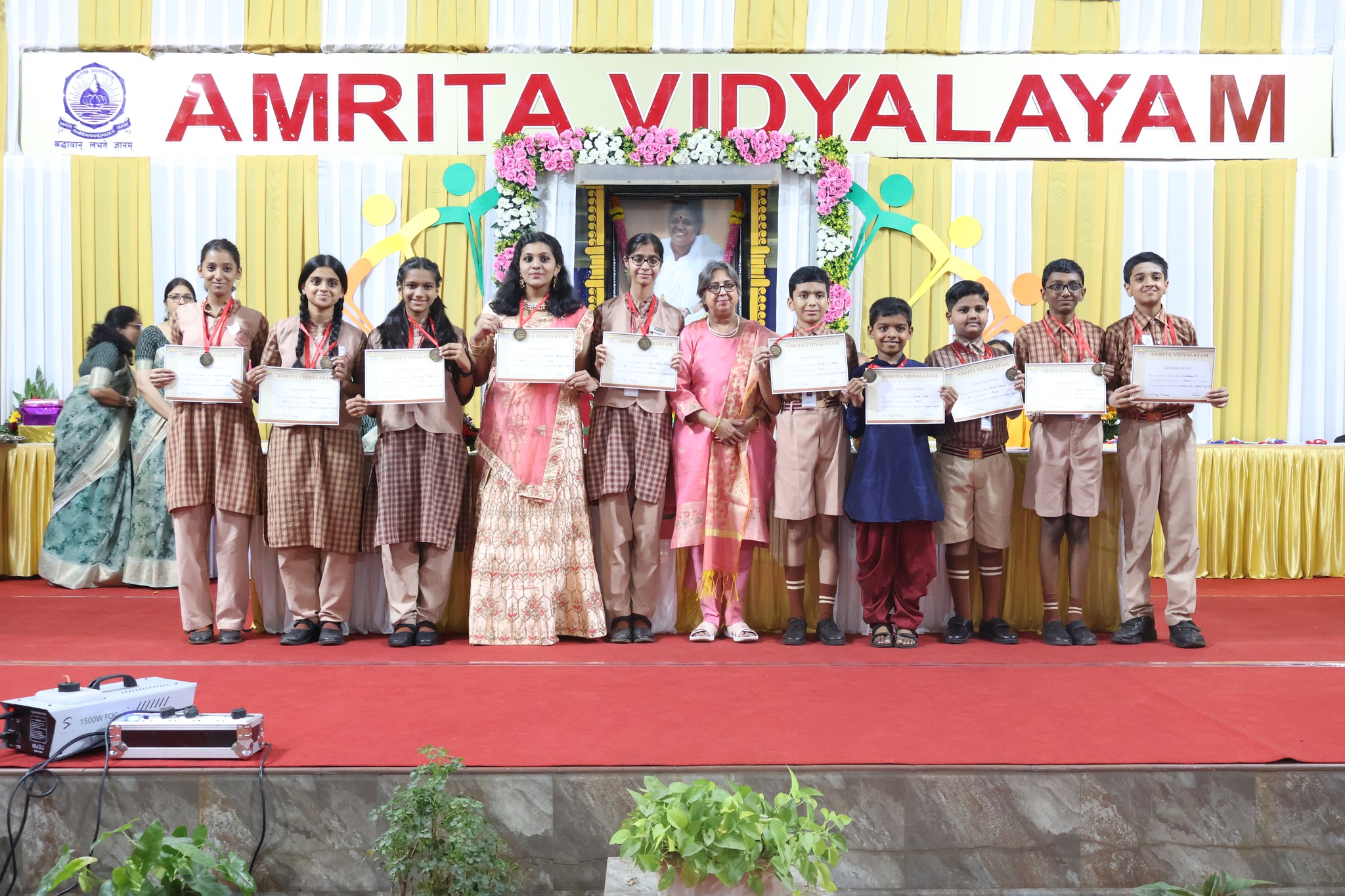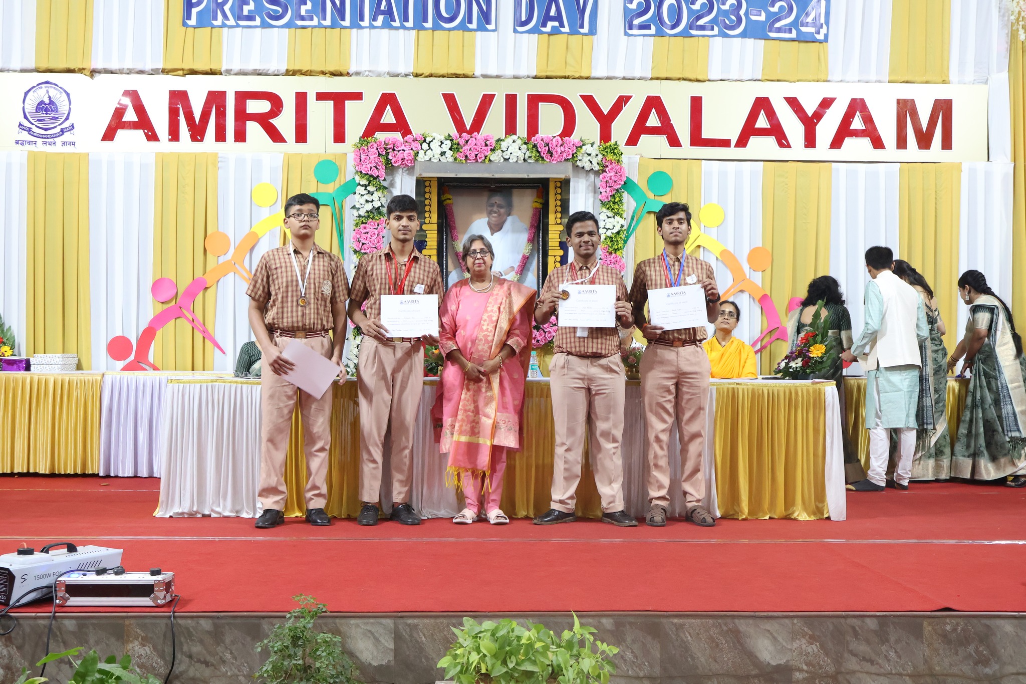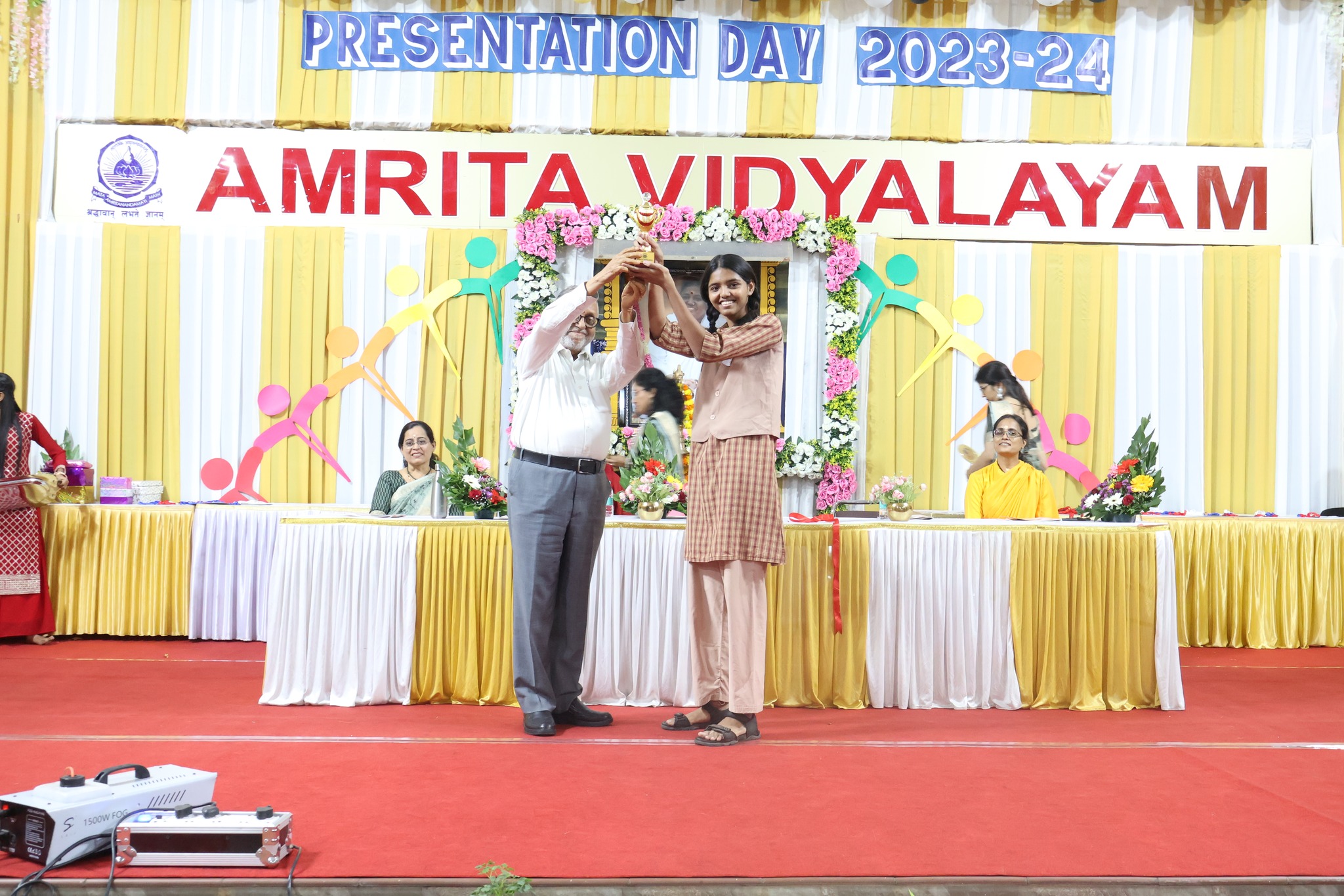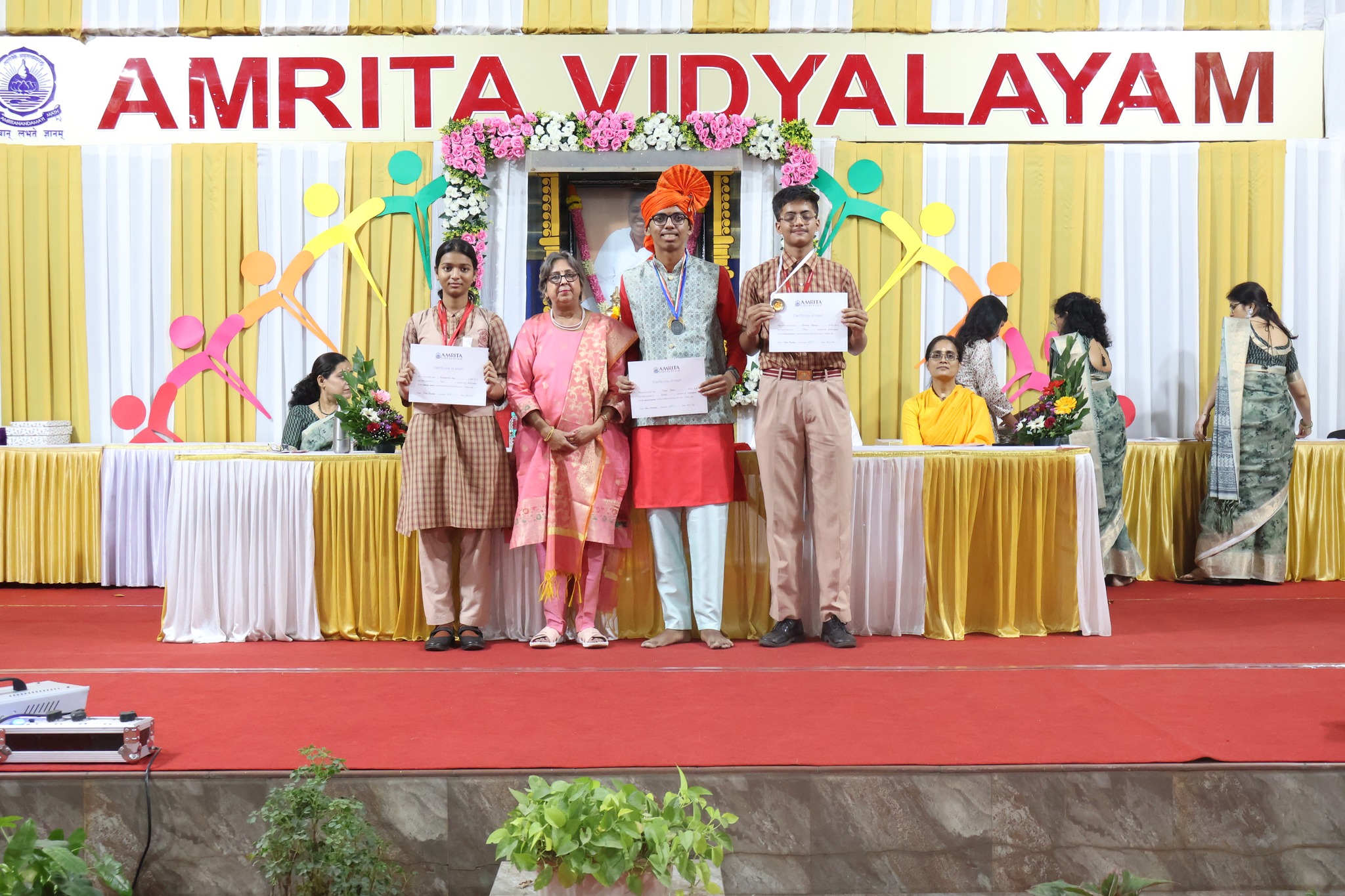 The Annual Presentation Day celebration was celebrated at Amrita Vidyalayam on the 6th of January 2024. A renowned figure in education, Dr.Rashmi Sharma was the Chief Guest. Mr. K N Pillai, an esteemed member of the Management Committee and Swami Avyayamritananda Puri, Incharge of Mata Amritanandmayi Math, Nerul consented to be the Guest of Honour. The presence of our School Administrator Brni. Sharanyamrita Chaitanyaji enhanced the significance of the day.