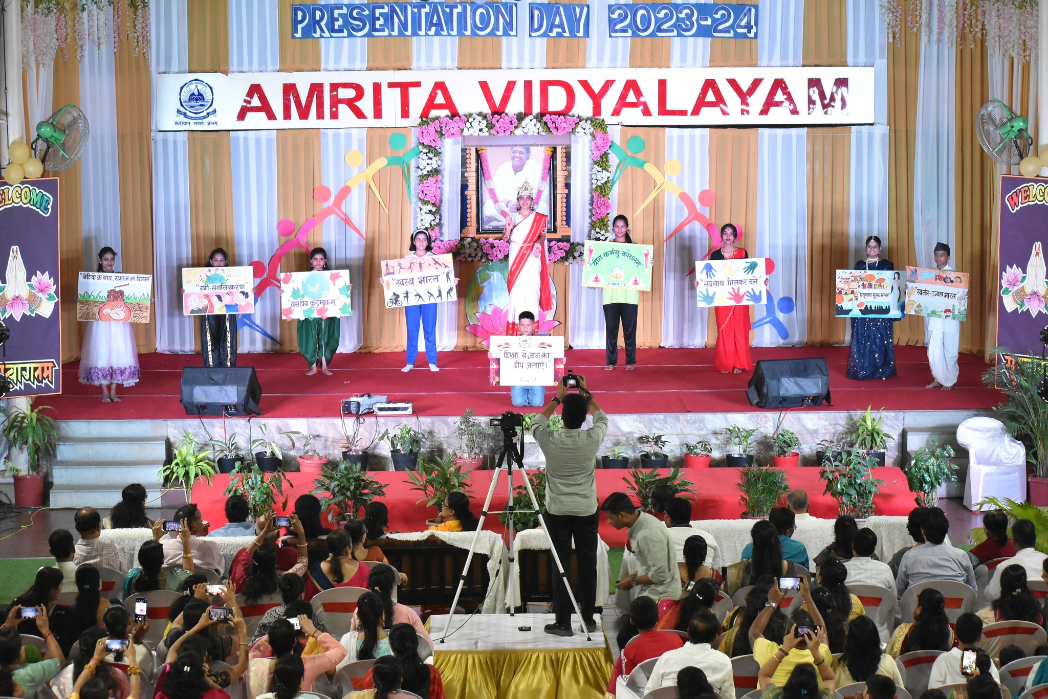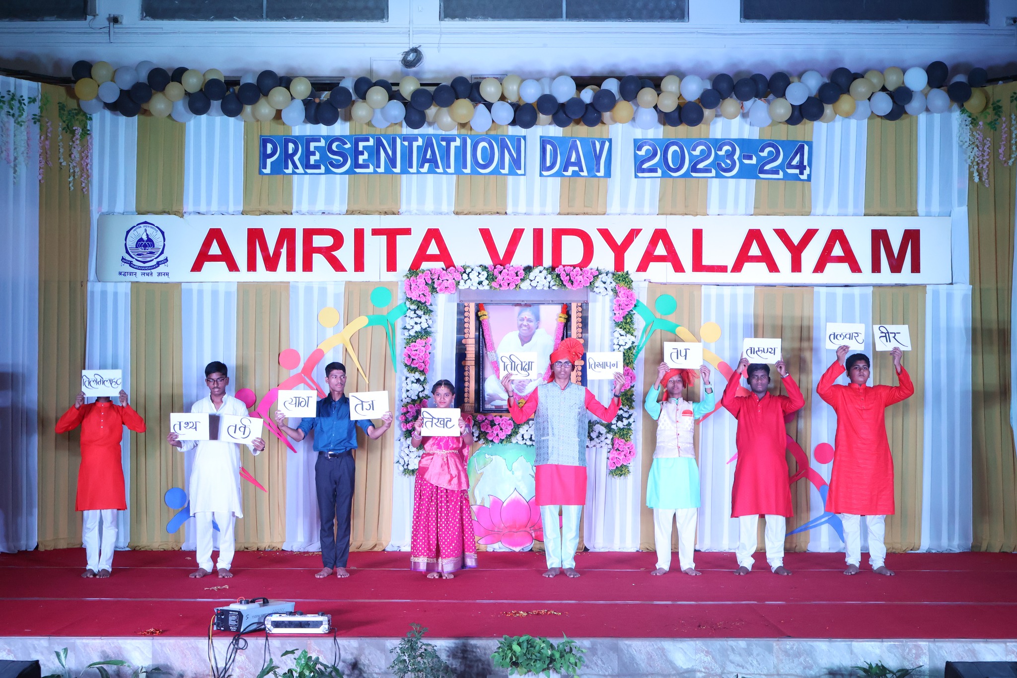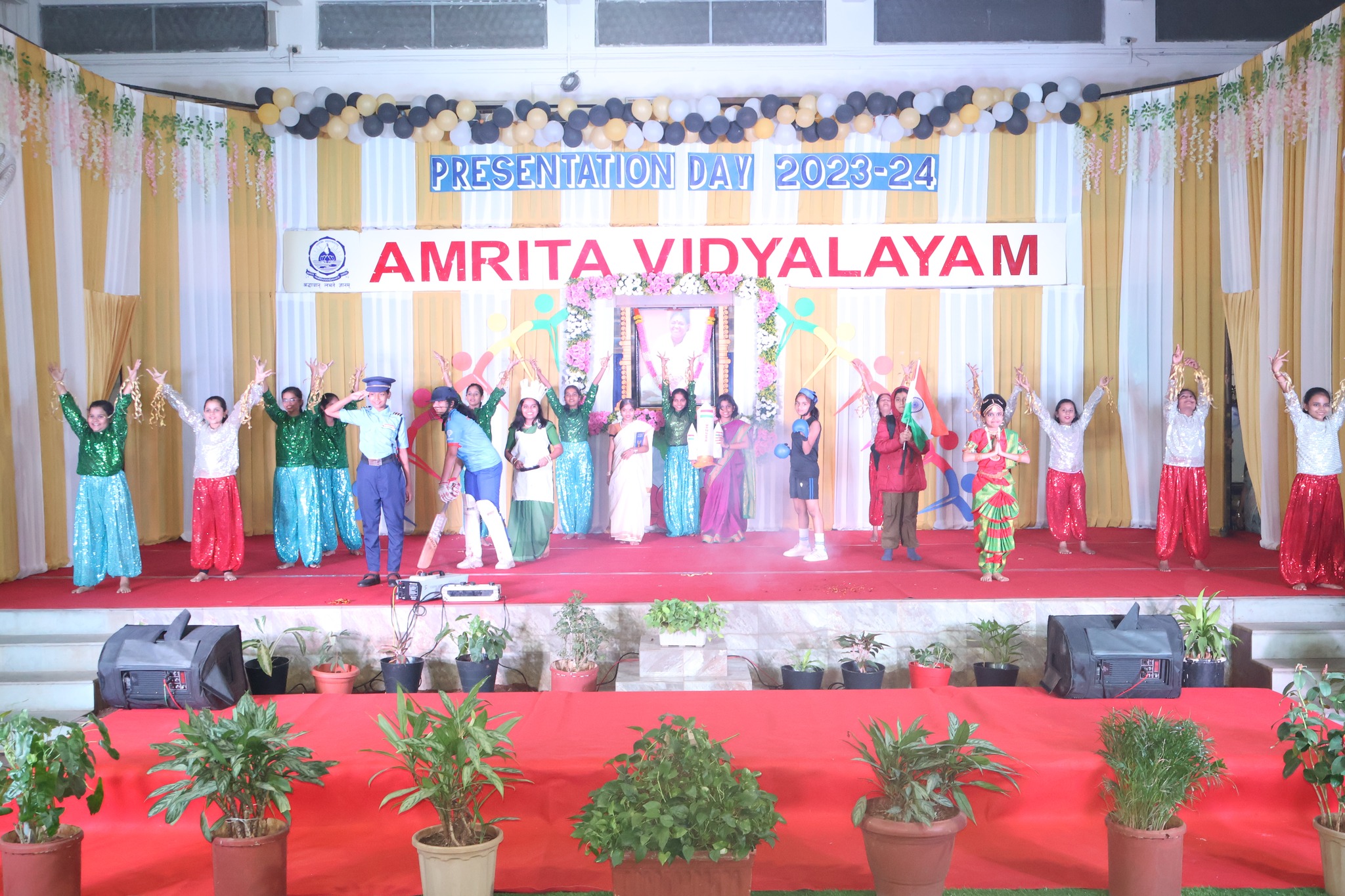 The Annual Presentation Day celebration was celebrated at Amrita Vidyalayam on the 6th of January 2024. A renowned figure in education, Dr.Rashmi Sharma was the Chief Guest. Mr. K N Pillai, an esteemed member of the Management Committee and Swami Avyayamritananda Puri, Incharge of Mata Amritanandmayi Math, Nerul consented to be the Guest of Honour. The presence of our School Administrator Brni. Sharanyamrita Chaitanyaji enhanced the significance of the day. The program started with lighting of the lamp and prayer which was continued by the presentation of the School Annual Report by the Principal Mrs. Anupama Rao. Administrator Brni. Sharanyamrita Chaitanyaji in her Benedictory address enhanced the importance of compassion in today’s life, fostering a sense of collaboration in nurturing the students’ growth and highlighting the importance of spirituality in students’ lives. The chief shared her views and experiences in the field of learning. “Amrita Nidhi,” the School Annual Magazine for the academic year 2023-24 was released on this auspicious occasion. The yearlong achievements of the students was recognized by felicitating them with prizes, medals and certificates to motivate them to keeping shining. The Cultural Program, themed “Vision of Our Bharat – Towards becoming a Nation of Highest thinking and Strength, with empowered women and educated people living together with compassion filled hearts,” mesmerized the audience. Students showcased their talents, portraying the envisioned greatness of our nation through dance, music, and drama. The Annual Presentation Day celebration was a harmonious blend of intellectual stimulation, recognition, and cultural enrichment. The presence of distinguished guests and the captivating performances left an enduring impression, inspiring the school community to continue their pursuit of excellence in the years ahead. Program ended with National Anthem and prayer.