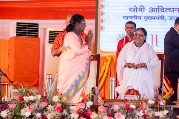 President of India, Draupadi Murmu greets Amma – Sri Rama Yantra pratishta samaroh, Ayodhya, 19 Mar 2026