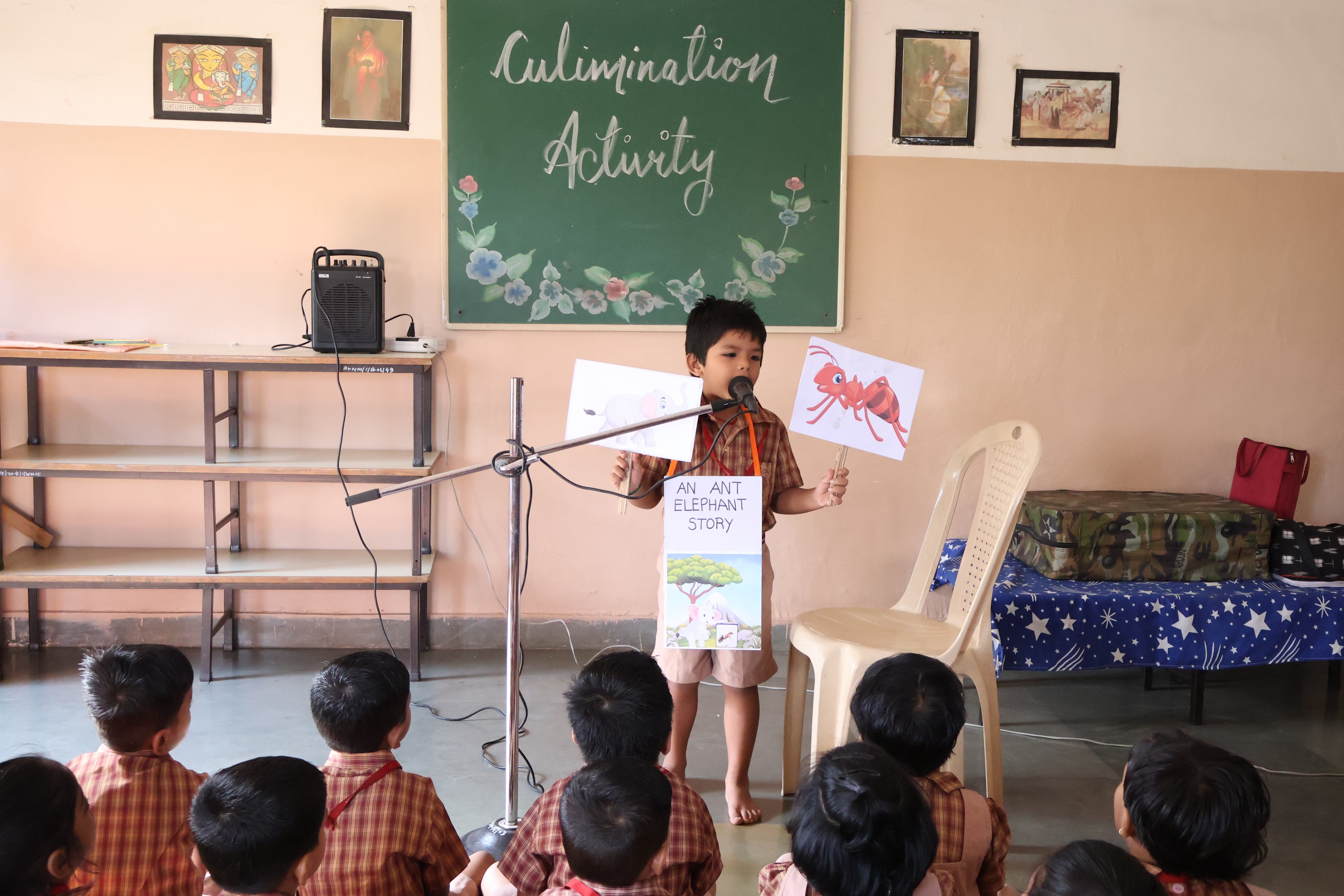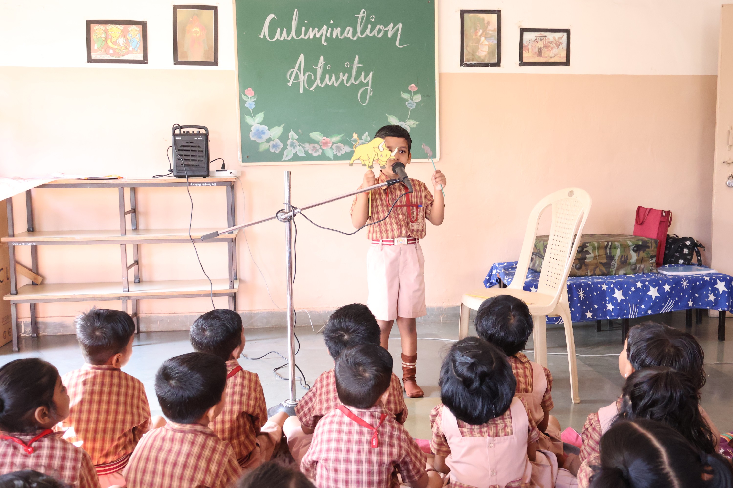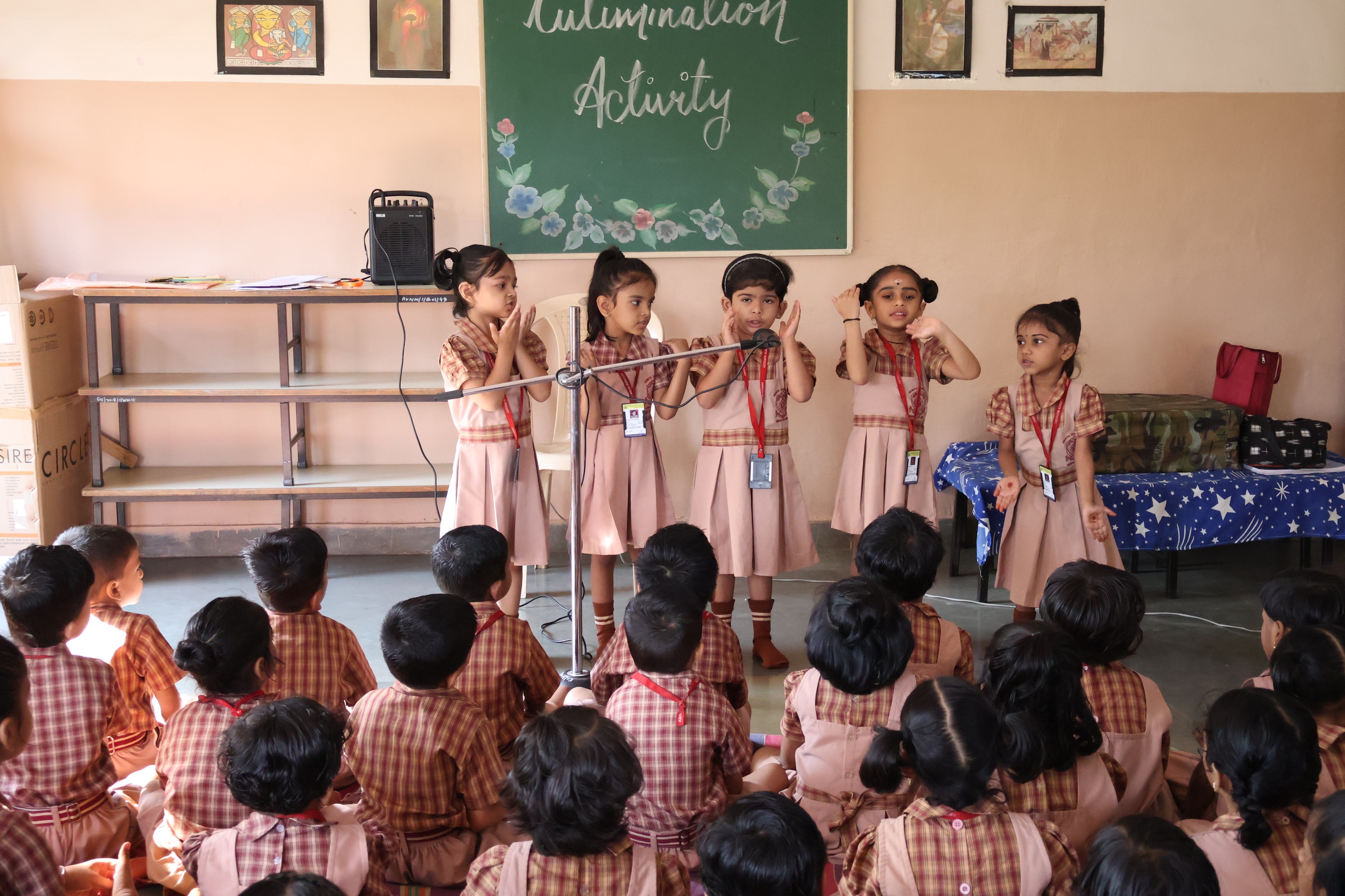 Culmination is an important aspect of any educational program, especially in foundational stage, where children are introduced to the world of learning through stories, rhymes, shloka, story enactment and paragraph narration. A culmination program is an opportunity for children to showcase their learning, creativity, talent and boost their confidence. Its an opportunity to assess the progress of the child. On 3rd April, 2023 Amrita Nursery students demonstrated their linguistic learning by their confident performances using props.