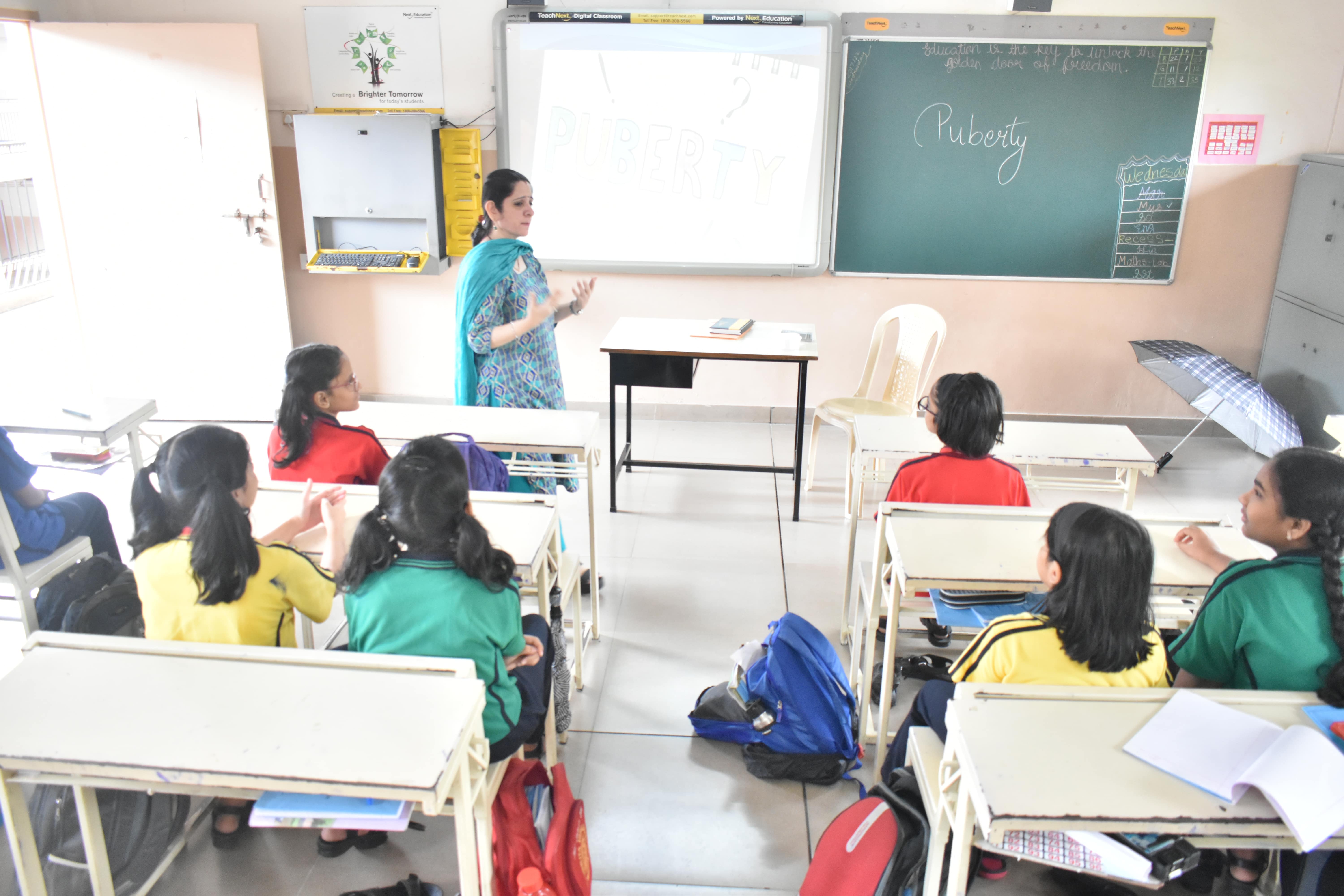 The school counsellor Ms Gayatri Nathani P conducted a session on puberty with the girls of the 5th grade explaining about the importance of menstruation, the hygiene one needs to maintain, the number of times we need to change and also wash our genitals properly, the diet one needs to follow, how do we take care of ourselves if we have a patch on our panties, what to do in school?whom do we report?