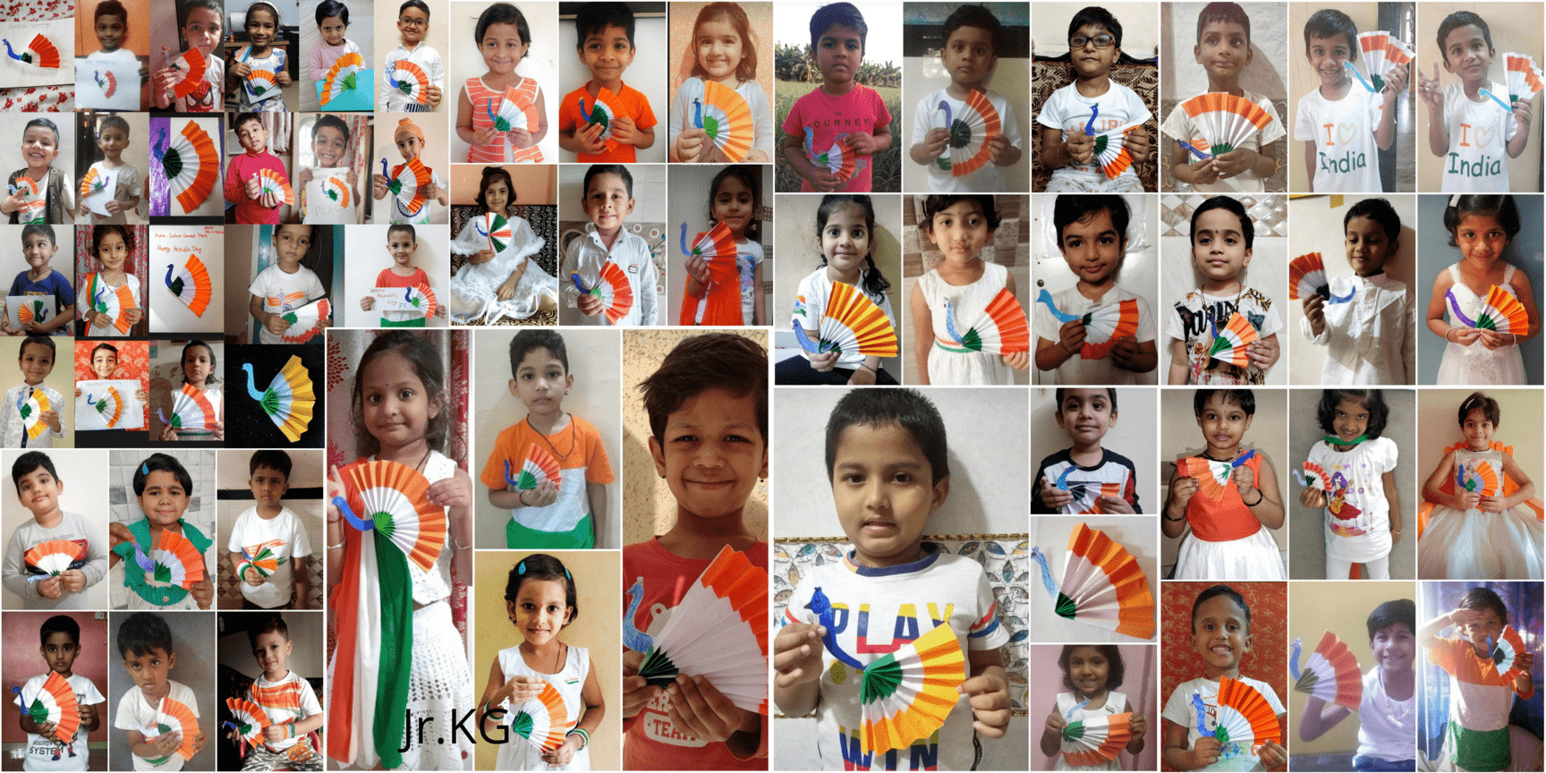 Jr.Kg students celebrated the day by making Tricolour Peacock.