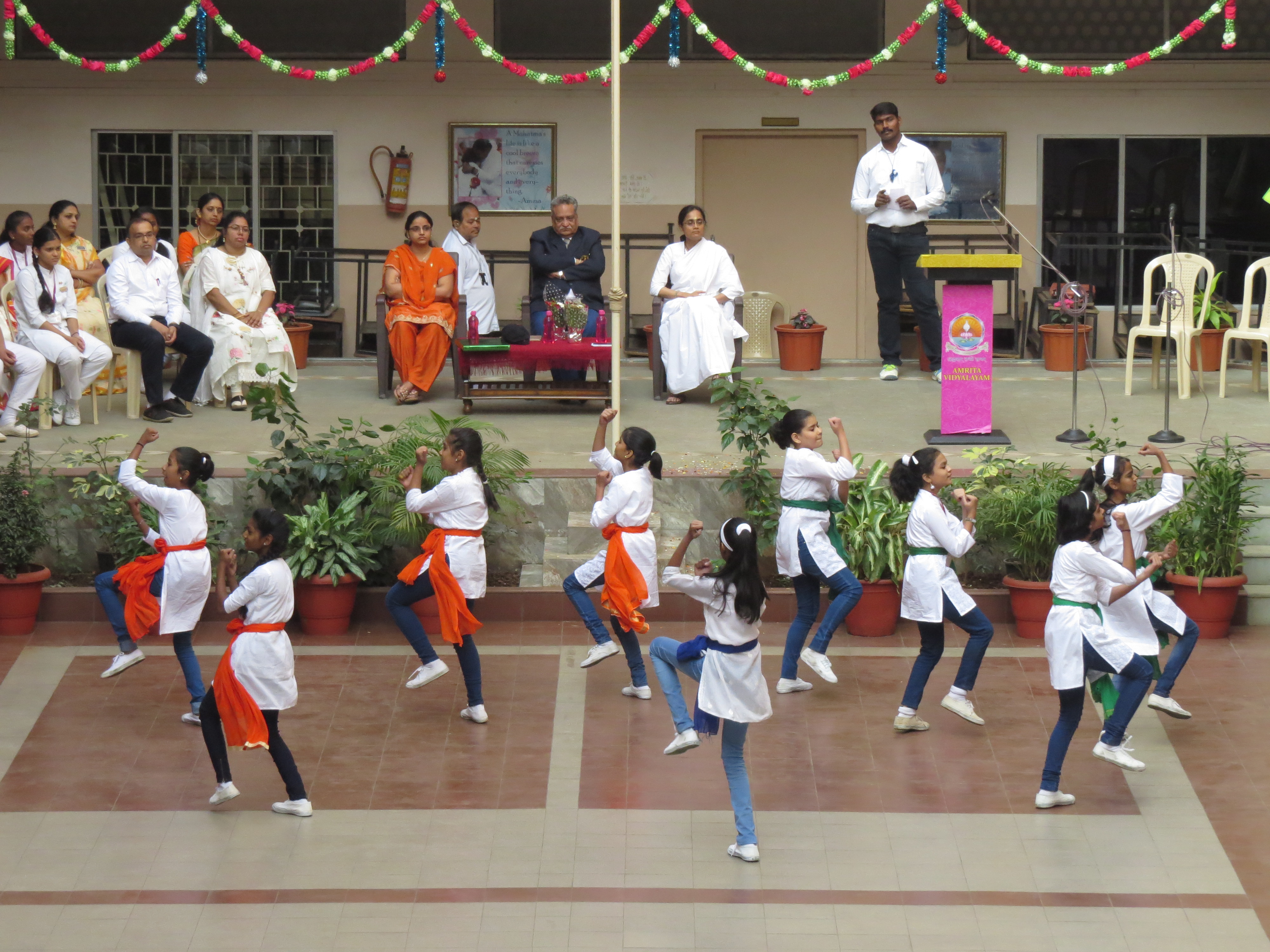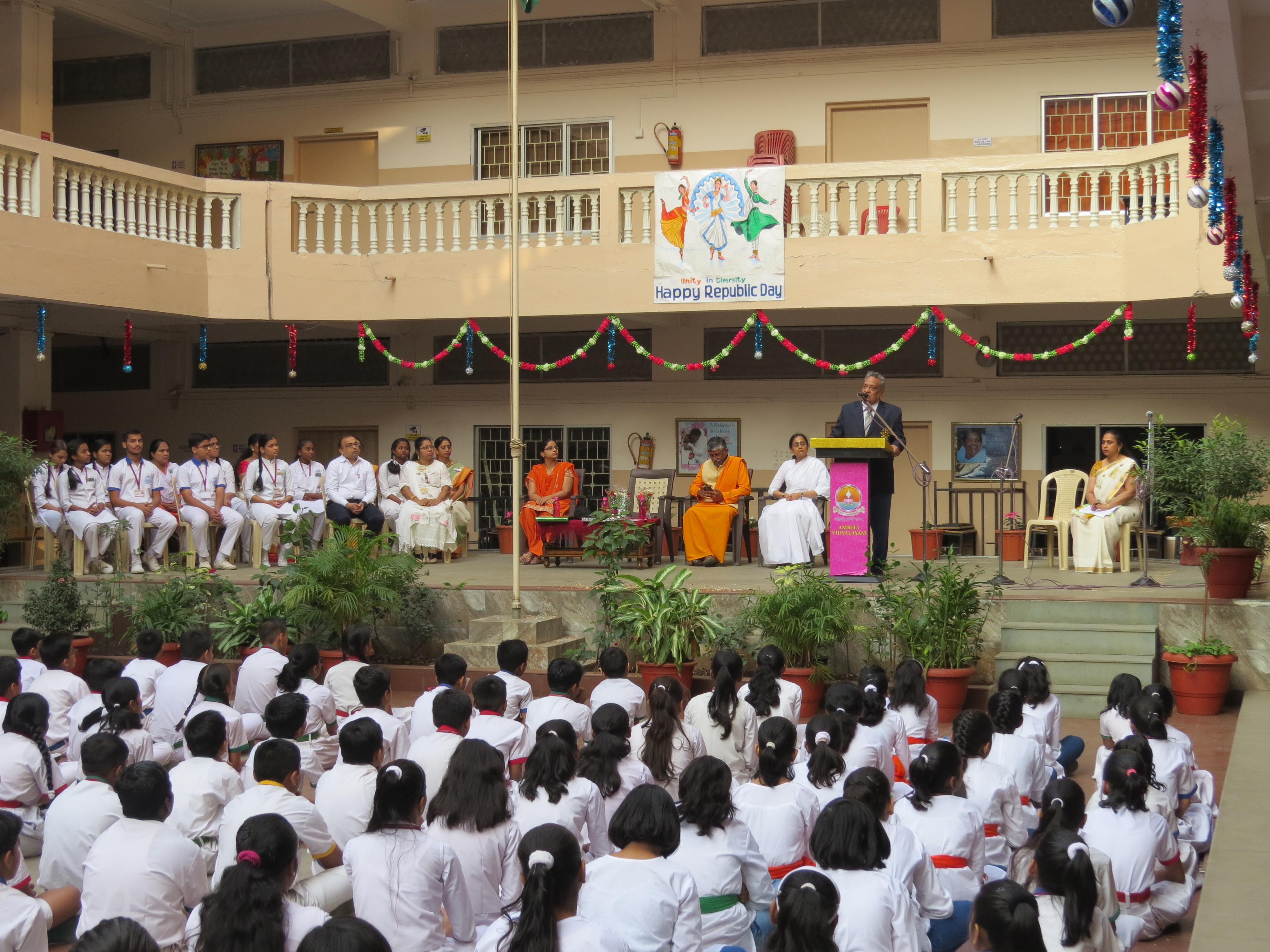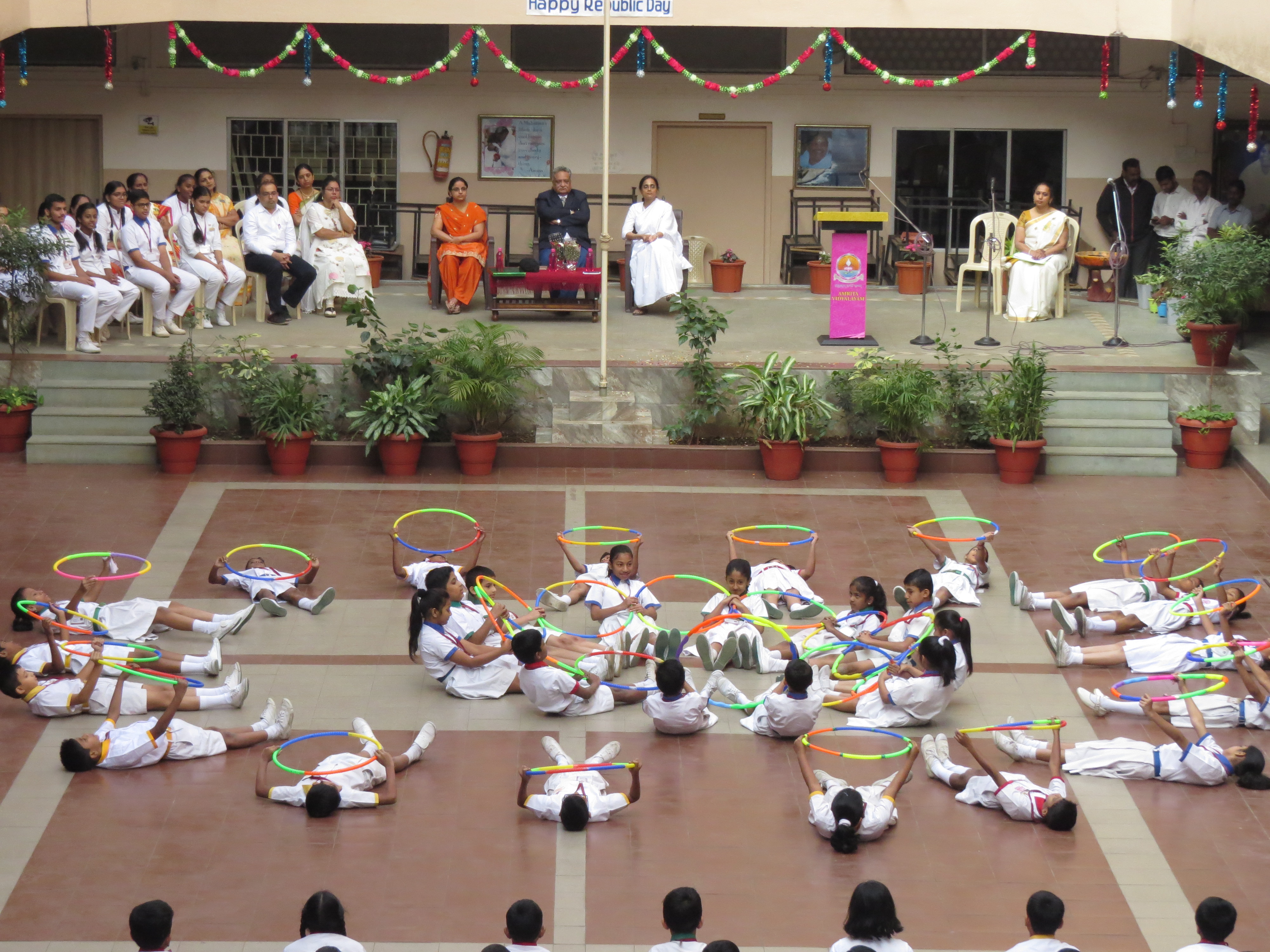 An assemblage of physical activities was presented by the students of Amrita Vidyalayam to mark the Republic day celebrations. The distinguished guest for the morning was Lt. Commander Avinash Chandra, who has served the Armed Forces for 30 years.